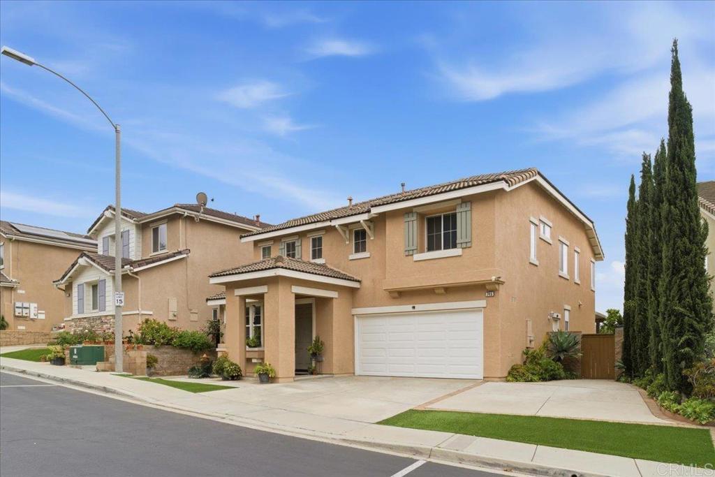 Welcome to this gorgeous 4 bedroom, 3 bathroom, 2,580 sq ft hillside gem tucked inside San Marcos’ Vallecitos Ridge gated community! From the moment you arrive, the Mediterranean style exterior, wide driveway, and two car garage make a lasting first impression. Come inside and feel right at home! The main level flows beautifully from a formal dining room with hardwood flooring to a bright living room anchored by a cozy fireplace, and into a well appointed kitchen featuring granite countertops, ample cabinetry, gas cooktop, double wall oven, and a center island with bar top seating. A sunny eat in nook with sliding glass doors brings the outdoors in with direct access to the backyard and those jaw dropping mountain views! A main level bedroom and full bathroom add ideal flexibility for guests or multigenerational living. Upstairs offers even more to love with a spacious bonus loft, an oversized primary suite complete with a walk-in closet and a private en suite with dual vanities, soaking tub, and separate shower. Two additional bedrooms, a shared full bathroom, and a conveniently placed upstairs laundry room round out the upper level perfectly. Out back, a covered patio with ceiling fans sets the stage for year round entertaining, opening to a generous concrete space with sweeping mountain and valley views. Other highlights include: upgraded HVAC system, dual pane windows, newer exterior paint, custom backyard patio cover, and drought-tolerant landscape design at front yard and backyard. The gated community and neighborhood tot lot makes this the perfect place for your family to enjoy and put down roots! LOCATION! LOCATION! LOCATION! Conveniently located near San Marcos District’s top rated schools, parks, grocery, restaurants, shopping, easy access to freeways, and more. This one checks every box!