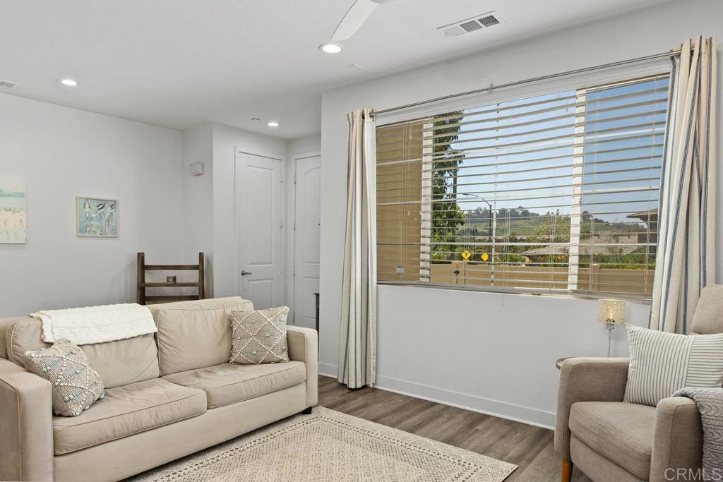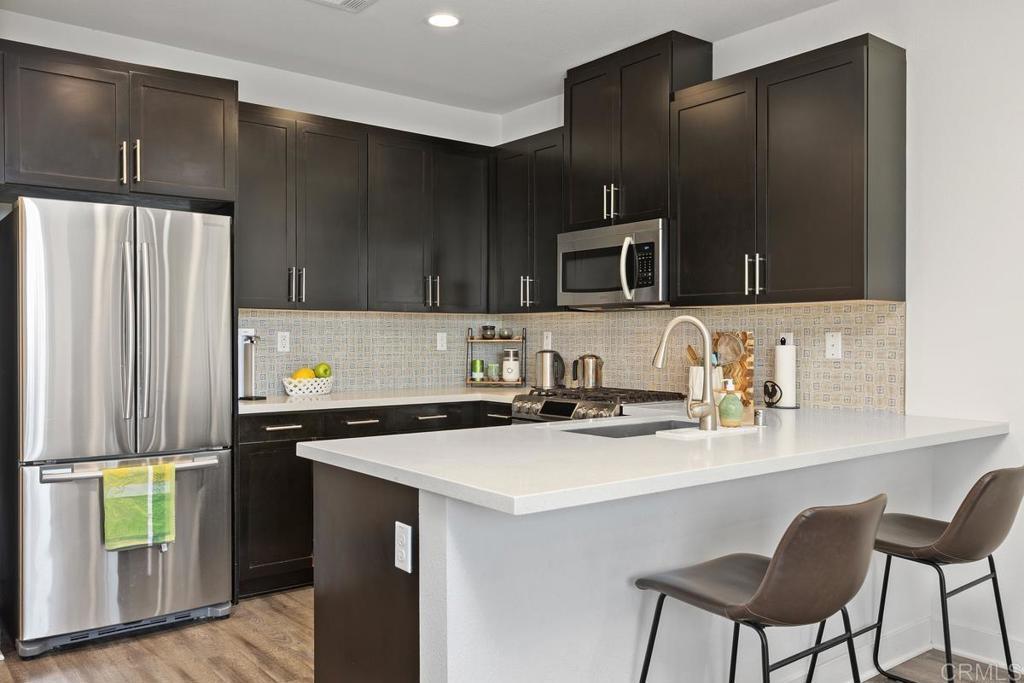 Welcome to Agave at The Preserve, Carlsbad Living at Its Finest. Rare opportunity to own a stunning modern townhome in one of Carlsbad's most sought-after communities. This beautifully maintained home offers a thoughtfully designed living space where style, comfort, and nature come together seamlessly. The open-concept main level features luxury vinyl plank flooring, soaring ceilings, and a gourmet kitchen with quartz countertops, designer tile backsplash, stainless steel appliances, and center island, perfect for everyday living and entertaining. Upstairs, the spacious primary suite boasts a private balcony, walk-in closet, and spa-inspired en suite with dual vanities. Two additional bedrooms, a full bath, and an upstairs laundry closet complete the upper level. Enjoy resort caliber HOA amenities including a beach-entry pool, spa, fitness center, dedicated dog park, BBQ areas, outdoor fireplace, and scenic walking trails connecting directly to the Buena Vista Creek Ecological Reserve. Zoned for the award-winning Carlsbad Unified School District, and minutes from Carlsbad Village, top-rated restaurants, Quarry Creek Shopping, and world-famous Carlsbad beaches with easy freeway access throughout San Diego County.
