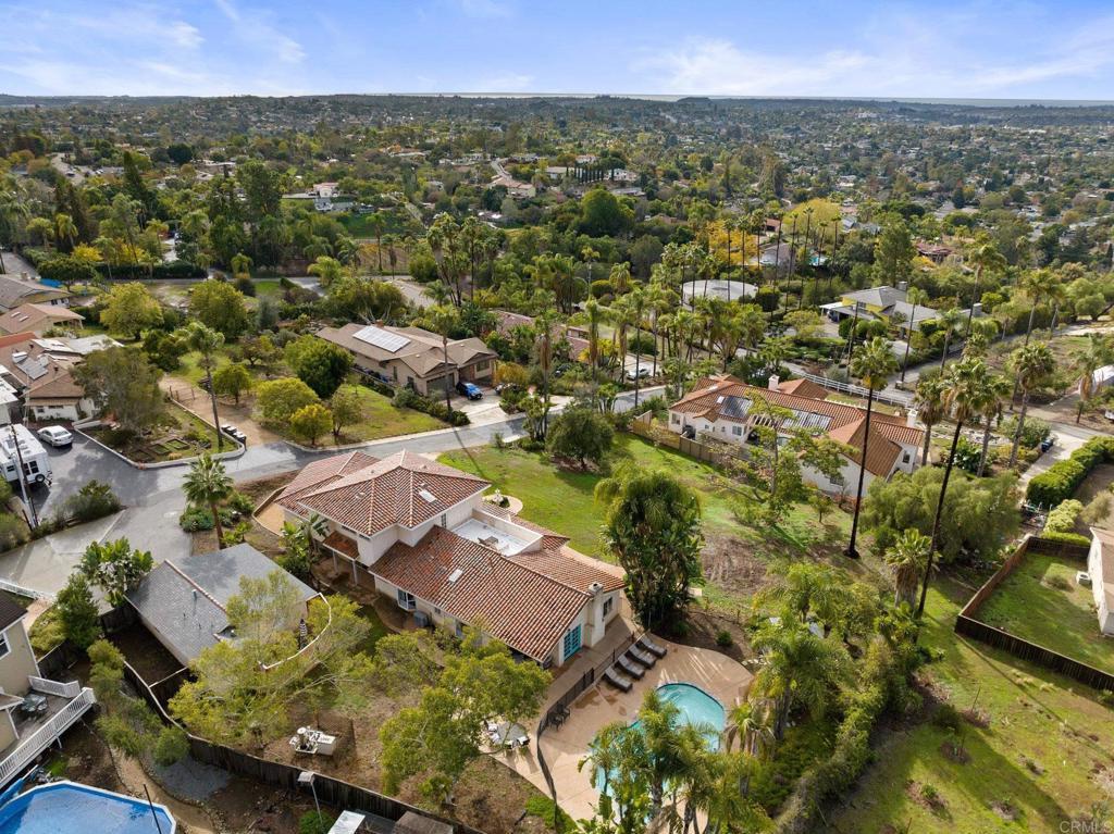 Comfortable, spacious, private ranch home with incredible westerly ocean views. Featuring 4 bedrooms and 4 full baths in the main house. With two full bathrooms and bedrooms on the first floor, this home lives like a single-level. Chef's kitchen opens to the family room with 3 sets of French doors connecting to the spacious pool deck & multiple seating areas. Enjoy the large game room with pool table and roof top deck to watch the sunset and sunrise. Exquisite pool and multiple patio entertaining areas for enjoying San Diego's year round amazing weather. Watch the Oceanview Sunset from your own private jacuzzi! All new pool equipment and recently resurfaced pool and spa. Mostly flat, usable sprawling yard with fruit trees on a private cul-de-sac street. Adorable detached guest house was the original 1940's farmhouse in the neighborhood. It has been beautifully remodeled with a new kitchen, bathroom, A/C added, and has a separate address and parking. Paid off new solar system conveys to buyer. This home is on sewer, not septic allowing for future possibilities. Large front yard has ample space for the family to enjoy. Conveniently, a few doors down is the wonderful Brooking Winery. This tucked away neighborhood feels like the country but is minutes to the coast. Downtown Vista Village is nearby and features annual festivals and excellent dining options. Close to freeways, shops and schools.