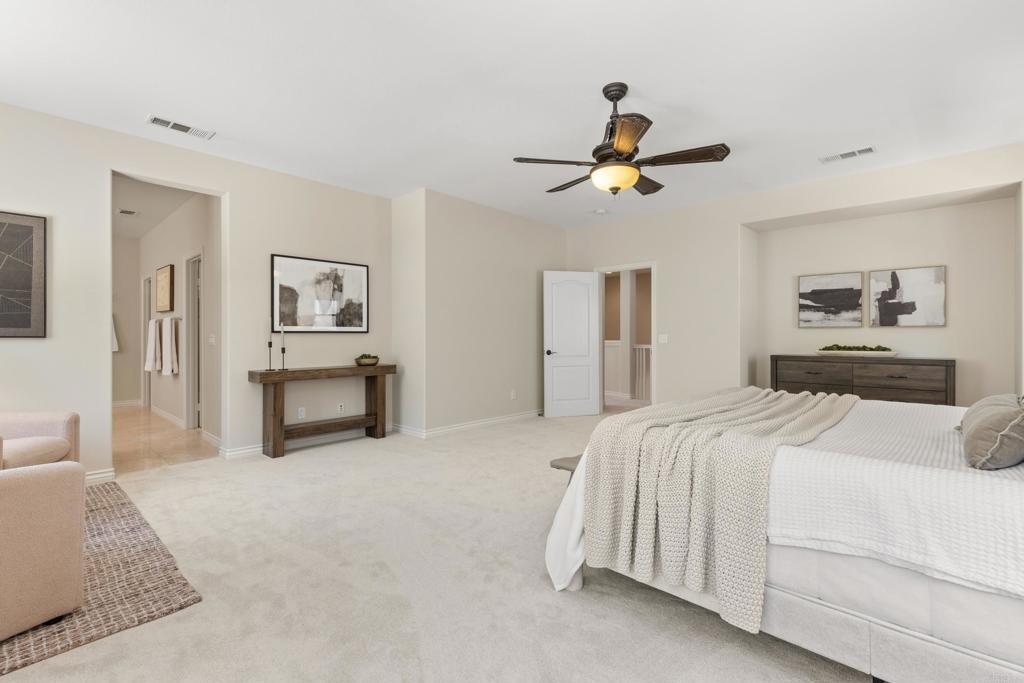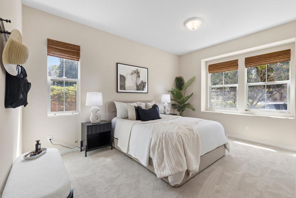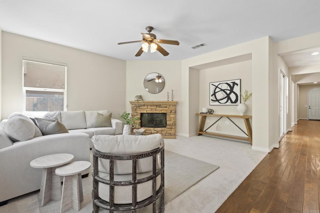 Stunning home on a quiet cul-de-sac in the highly sought-after Venzano community of San Elijo Hills! Offering 3,411 square feet, 5 bedrooms + loft (easily converted to a bedroom) and 4 full bathrooms (including a main-level bedroom and bathroom), this beautiful home features fresh interior paint, hardwood floors in main living areas, and brand-new carpet in bedrooms, living room, family room, and upstairs. The gourmet kitchen showcases granite countertops, a large center island, stainless steel appliances, and a built-in KitchenAid refrigerator, opening to spacious living areas ideal for everyday living and entertaining. The expansive primary suite offers a luxurious bathroom with a relaxing jacuzzi tub and large dual walk-in closets. Upstairs also features a convenient Jack-and-Jill bathroom. Enjoy OWNED, paid-off solar for efficiency and savings. Step outside to a private backyard with no neighbors behind, peaceful greenbelt views, low-maintenance landscaping, a covered patio, built-in BBQ with fridge, and outdoor TV—perfect for year-round gatherings—plus a cozy side courtyard. Additional highlights include dual A/C, a stone fireplace, washer and dryer included, sink in laundry room, and a 3-car tandem garage. Located near 18 acres of scenic trails, top-rated schools, 19 acre park, and the nearby San Elijo Hills Town Center. A true must-see!