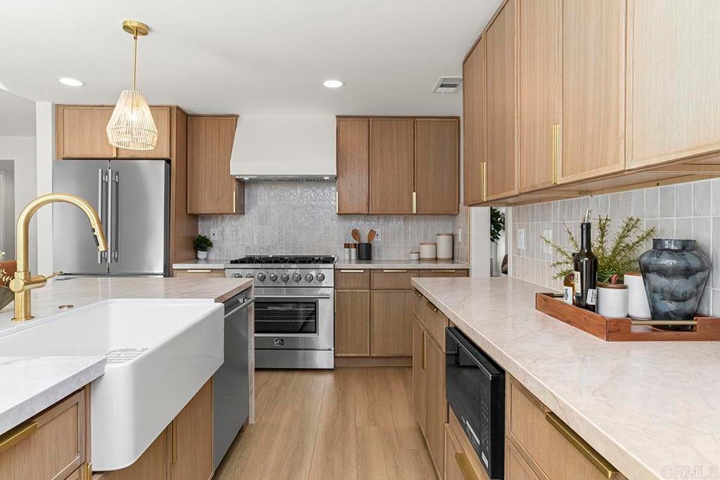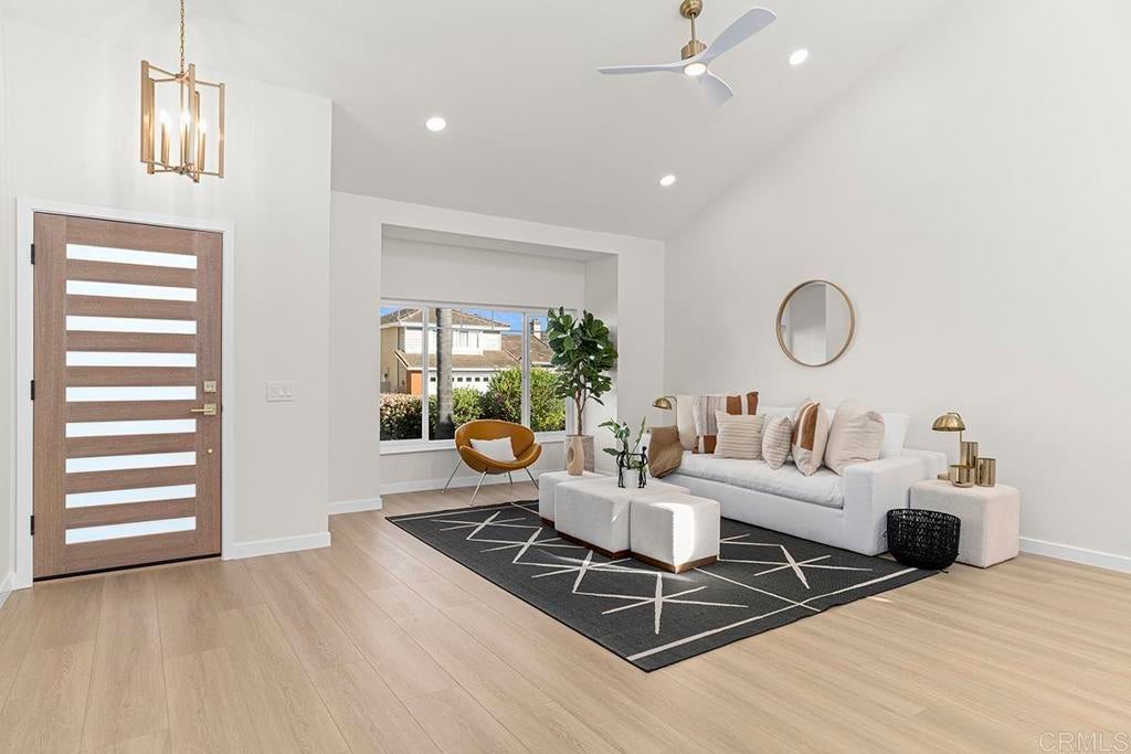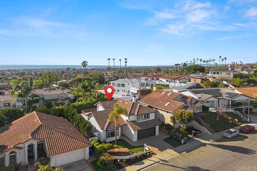 Priced to sell! Welcome to this stunning fully remodeled 4-bedroom, 3-bath two-story home in desirable Telescope Point, where thoughtful design, luxury finishes, and coastal charm come together. Nestled on a beautiful street surrounded by multi-million-dollar estate properties, this exceptional residence offers ocean views from the driveway and from the spacious primary suite. Completely upgraded from top to bottom, the home features beautiful new landscaping and exceptional indoor-outdoor living designed for the Southern California lifestyle. A dramatic living and dining area showcases soaring cathedral ceilings and designer fixtures, filling the home with natural light and creating an impressive sense of space. The chef’s dream kitchen features top-of-the-line appliances, stunning Taj Mahal quartzite countertops, custom white oak cabinetry, and generous prep and gathering space perfect for entertaining family and friends. Seamless indoor-outdoor living is made easy with a 14-foot Cantina-style folding door that opens from the family room to a covered outdoor entertaining area, creating the ideal setting for year-round gatherings. The flexible floor plan includes one full bedroom and bathroom on the main level, with the bedroom offering a separate entrance—perfect for a guest suite, home office, or potential granny suite. Upstairs, the luxurious primary suite is a true retreat featuring vaulted ceilings, ocean views, and a spa-inspired bathroom that rivals a five-star hotel, complete with designer finishes and a serene atmosphere. Located in one of the most sought-after neighborhoods in Olde Carlsbad, this home is close to beaches, dining, and shopping, and is situated within top-rated Carlsbad schools. Perfect for families or those who love to entertain, this exceptional coastal home truly has it all. This is one you won’t want to miss.