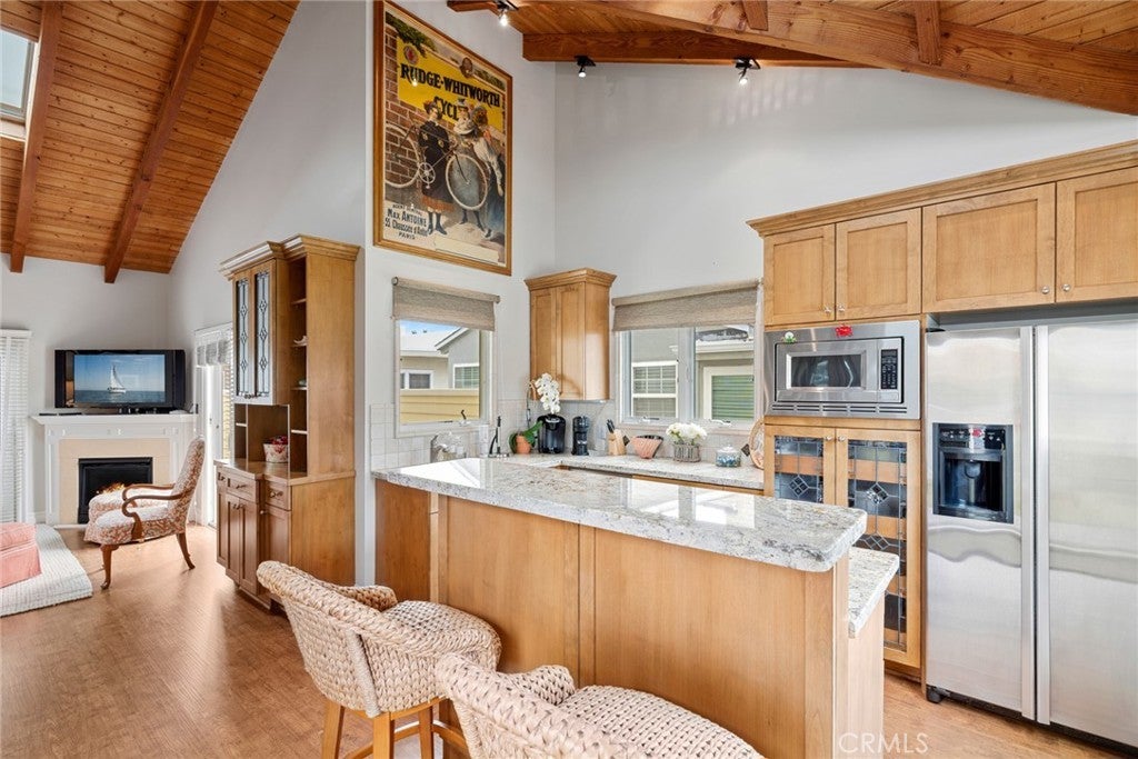 - Interior FeaturesBeamed Ceilings, Breakfast Bar, Multiple Staircases, All Bedrooms Down