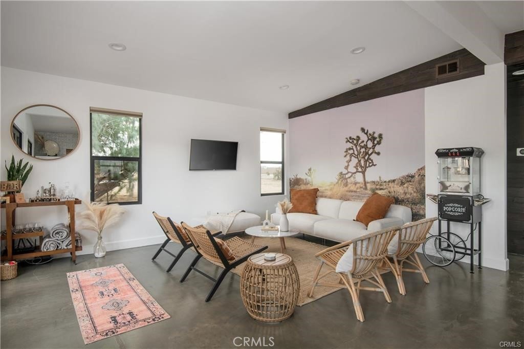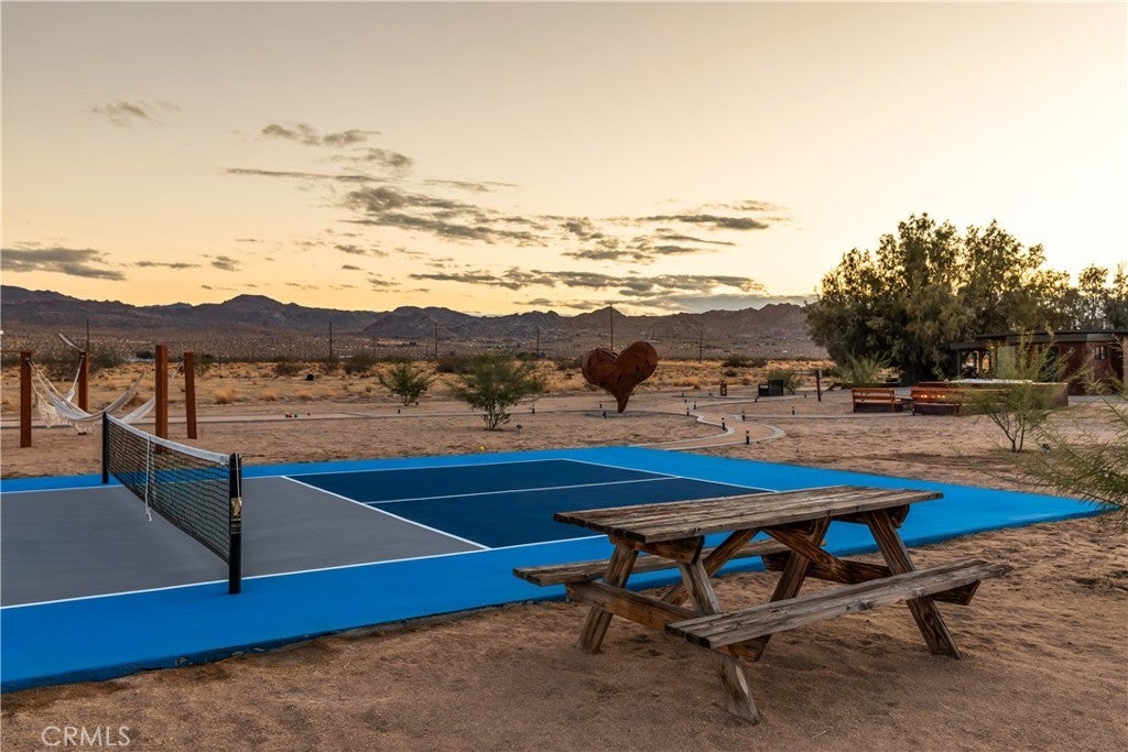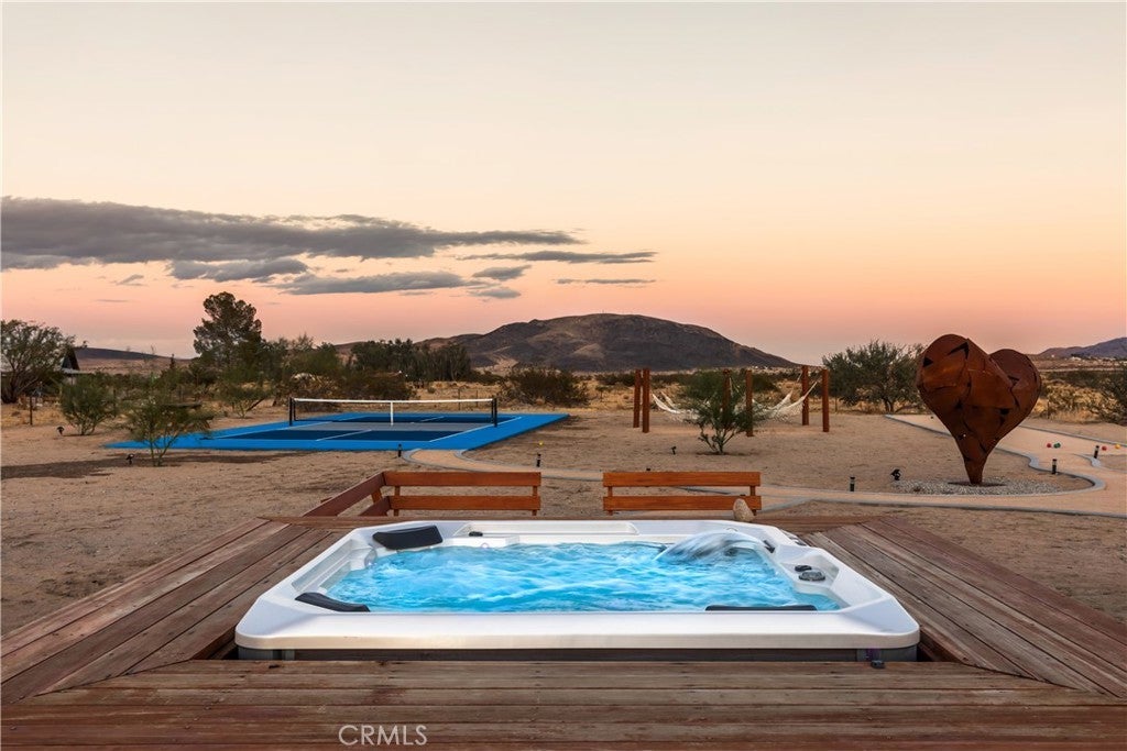 Fully functioning airbnb, private desert compound on two separate parcels totaling approximately 8.5 acres. Remodeled main home and separate free standing guest quarters in today's designer finishes. All furnishings are included right down to the linens. Featured by Architectural Digest. This special property known as the " The Drive In" is unique to the area offering a Drive-In Movie Theater (12'x20' Screen)+ Hot Tub + POOL with custom deck+ Built in BBQ + Outdoor Bar w/swings (amazing views of the mountains in the National Park)+ Fire Pit w/built in seating + Outdoor Table (For Dining Al Fresco) + Closest to the Pin Golf Hole (19th hole, 80 yards)+ 6 Hammock Circle (perfect for stargazing)+PICKLEBALL COURT+ Yoga Deck + Outdoor Stone Bathtub (with hot and cold water)+ Hook & Ring Game on Deck. IG account with almost 40k organic followers is included. Main house is permitted 2 bedrooms and casita is 1 bedroom allowing 2 separate short term rental permits for an occupancy up to ten. Main home is central a/c, casita is mini split. This is an amazing property !!!