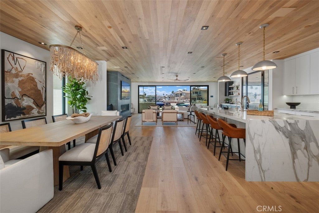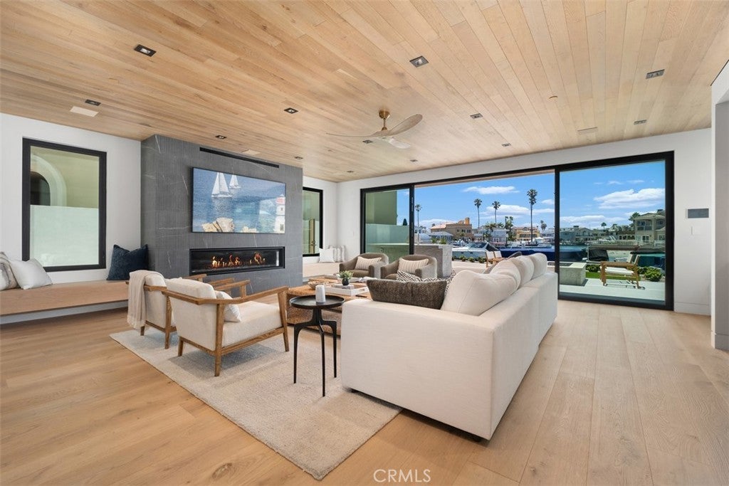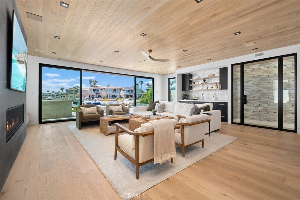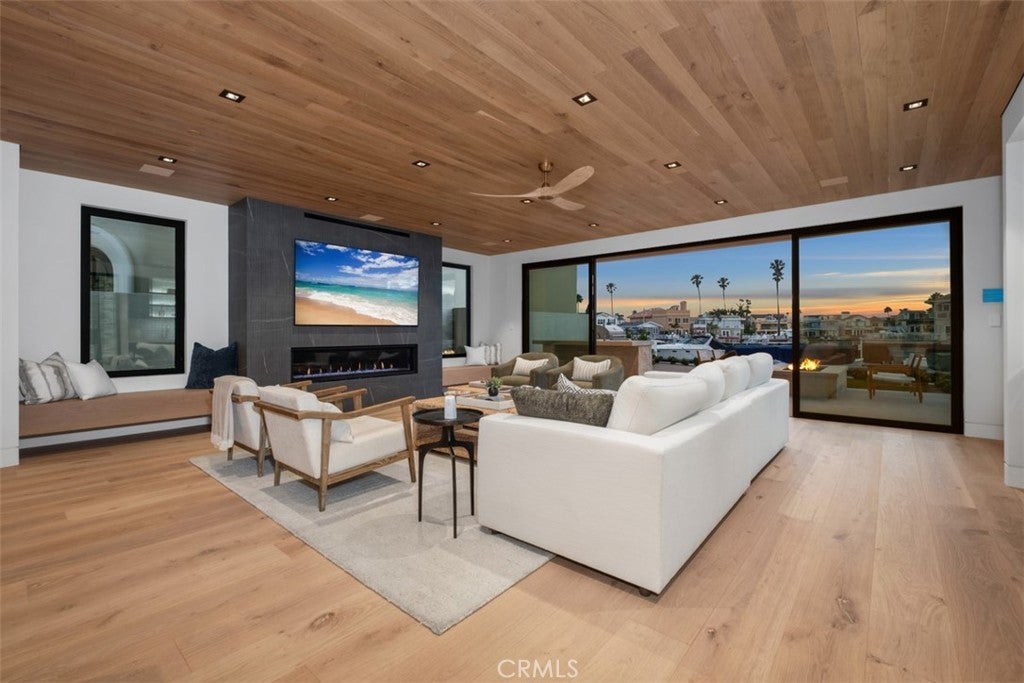 A rare opportunity to own a brand-new, architecturally striking waterfront home in the exclusive gated community of Balboa Coves. Designed by local experts Brian Liberto, architect Craig Hampton, and the renowned teams at MID Design and RDM General Contractors, this modern coastal retreat is a refined example of Newport Beach luxury living. Situated on an oversized 3,888 sq. ft. lot on the water with a private boat dock, this smart, tech-forward home offers approx. 3,753 sq. ft. of interior living space and over 5,000 sq. ft. total, including garage and outdoor areas. The open layout features 4 bedrooms, 4.5 bathrooms, and a private rooftop retreat with an additional bed and bath — ideal for entertaining or enjoying panoramic Catalina Island and ocean views. Inside, the home blends modern elegance with coastal warmth, offering European white oak floors, natural stone and tile finishes, tongue-and-groove ceilings, and custom oak detailing. The chef’s kitchen features top-tier Wolf and Sub-Zero appliances, while a temperature-controlled wine cellar holds up to 100 bottles. Powered by Crestron smart home automation, enjoy fully customizable lighting, climate, audio, and security — luxury at your fingertips. Step outside to experience the ultimate waterfront lifestyle with your own private boat dock — perfect for paddleboards, Duffy boats, or weekend cruises. The property also includes 4-car parking plus ample guest parking — a valuable bonus in this gated enclave. Balboa Coves is one of Newport Beach’s most private and coveted waterfront communities, with amenities including a dog park, playground, and peaceful, secure surroundings. You’re just a 5-minute walk or bike ride to Lido Marina Village, the beach, and The Wedge, with nearby access to Fashion Island, restaurants, shops, and freeways. Whether you're a boater, beach lover, or discerning buyer seeking a coastal dream home, this brand-new construction offers the best in design, lifestyle, and location. Live the Newport dream — schedule your private tour today.