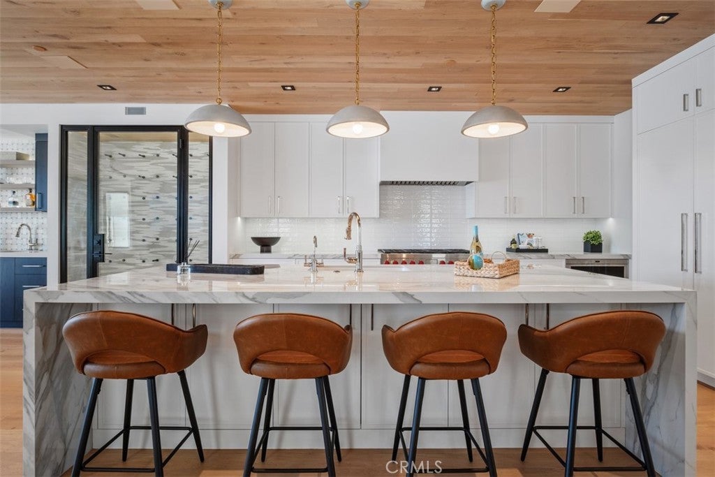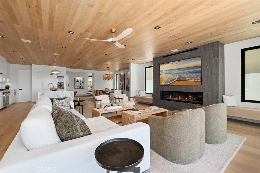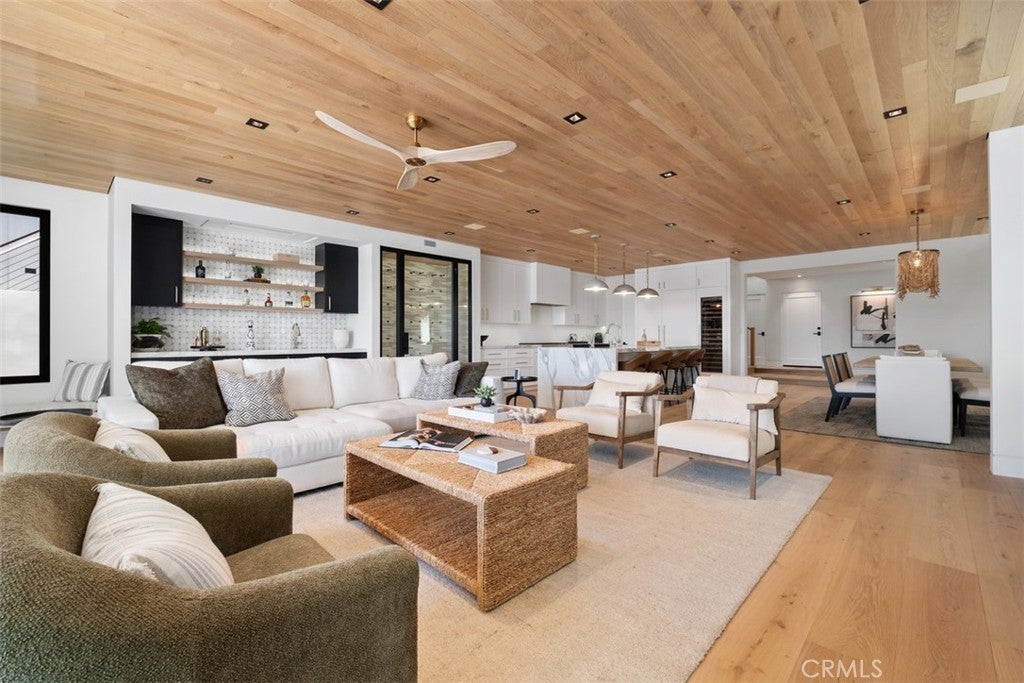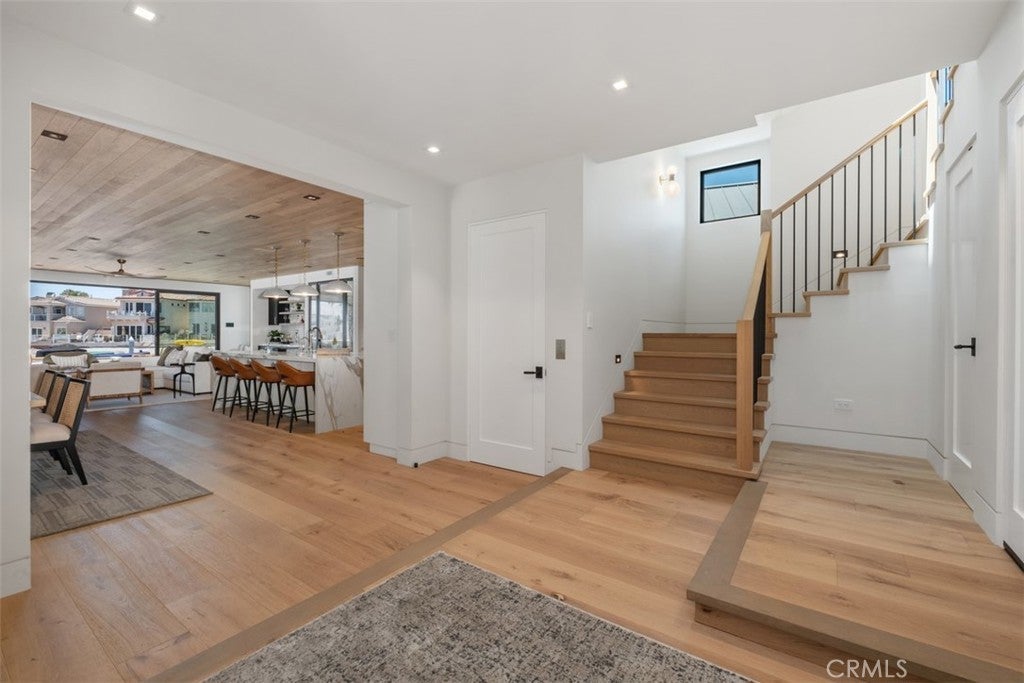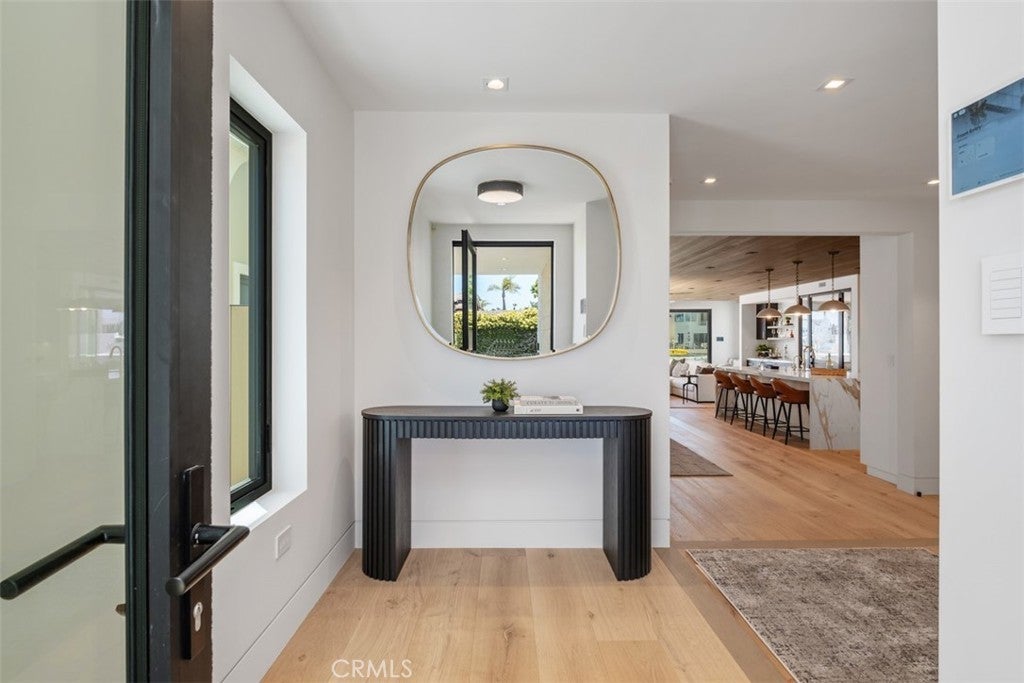 A rare opportunity to own a brand-new, architecturally striking waterfront home in the exclusive gated community of Balboa Coves. Designed by local experts Brian Liberto, architect Craig Hampton, and the renowned teams at MID Design and RDM General Contractors, this modern coastal retreat is a refined example of Newport Beach luxury living. Situated on an oversized 3,888 sq. ft. lot on the water with a private boat dock, this smart, tech-forward home offers approx. 3,753 sq. ft. of interior living space and over 5,000 sq. ft. total, including garage and outdoor areas. The open layout features 4 bedrooms, 4.5 bathrooms, and a private rooftop retreat with an additional bed and bath — ideal for entertaining or enjoying panoramic Catalina Island and ocean views. Inside, the home blends modern elegance with coastal warmth, offering European white oak floors, natural stone and tile finishes, tongue-and-groove ceilings, and custom oak detailing. The chef’s kitchen features top-tier Wolf and Sub-Zero appliances, while a temperature-controlled wine cellar holds up to 100 bottles. Powered by Crestron smart home automation, enjoy fully customizable lighting, climate, audio, and security — luxury at your fingertips. Step outside to experience the ultimate waterfront lifestyle with your own private boat dock — perfect for paddleboards, Duffy boats, or weekend cruises. The property also includes 4-car parking plus ample guest parking — a valuable bonus in this gated enclave. Balboa Coves is one of Newport Beach’s most private and coveted waterfront communities, with amenities including a dog park, playground, and peaceful, secure surroundings. You’re just a 5-minute walk or bike ride to Lido Marina Village, the beach, and The Wedge, with nearby access to Fashion Island, restaurants, shops, and freeways. Whether you're a boater, beach lover, or discerning buyer seeking a coastal dream home, this brand-new construction offers the best in design, lifestyle, and location. Live the Newport dream — schedule your private tour today.
