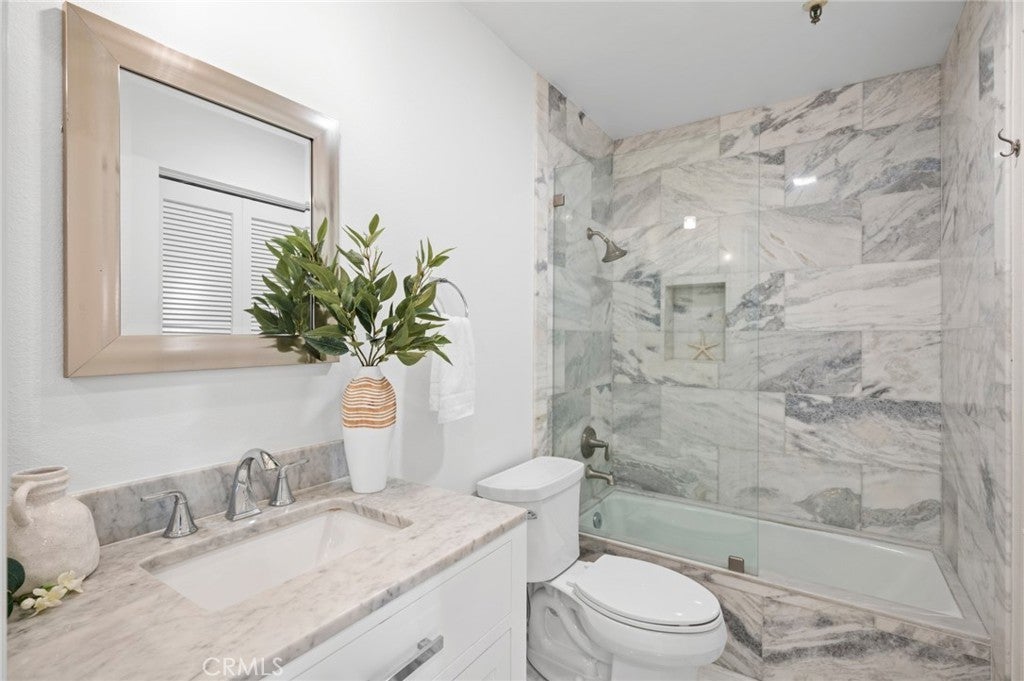 Experience resort-style living in the heart of Newport Beach with this beautifully remodeled residence in this coveted gated community, offered at an incredible value. Blending contemporary design with timeless elegance, this home offers a warm and inviting atmosphere, enhanced by abundant natural light and thoughtful finishes throughout. The open-concept main level welcomes you with a stylish dining area, a spacious living room anchored by a sleek fireplace, and a built-in wet bar with wine refrigerator — perfect for entertaining. Glass doors open to a generous back patio, creating an effortless flow between indoor comfort and outdoor enjoyment. A second, enclosed front patio off the kitchen provides a sunny spot for morning coffee or al fresco dining. The modern kitchen features a center island, ample storage, and a picture window overlooking the private courtyard. This two-bedroom, two-bathroom home includes a main-level guest room and full bath, ideal for visitors or a home office. Upstairs, the serene primary suite boasts a private balcony, a spa-inspired bath with dual sinks, and crisp, modern finishes. Residents enjoy resort-style amenities including a sparkling pool, spa, and tennis courts, all set amid lush, landscaped grounds. Two secure underground parking spaces are included. With world-class beaches, upscale shopping and dining at Fashion Island, John Wayne Airport, and major freeways just minutes away, this property offers an unmatched combination of style, comfort, and convenience in one of Orange County’s most sought-after locations.