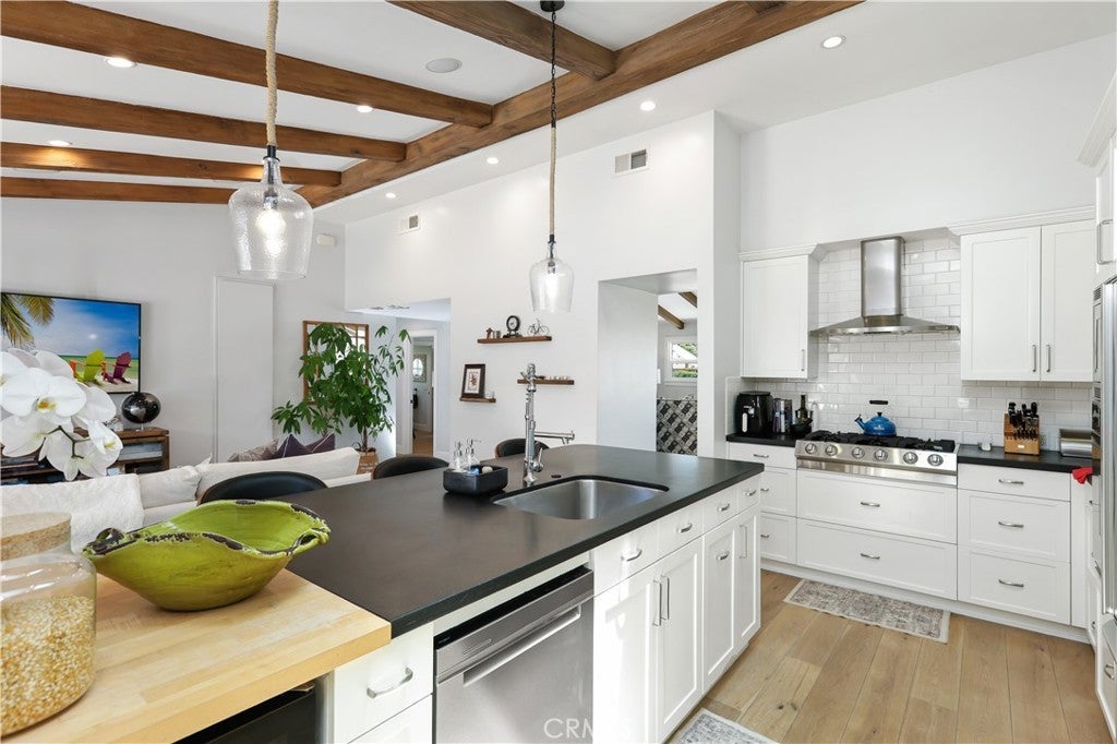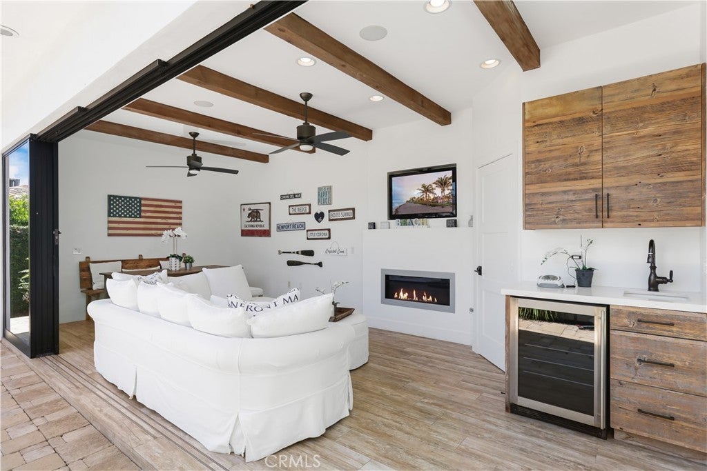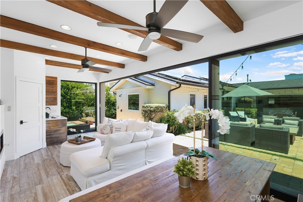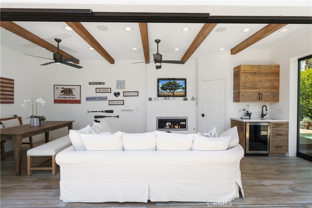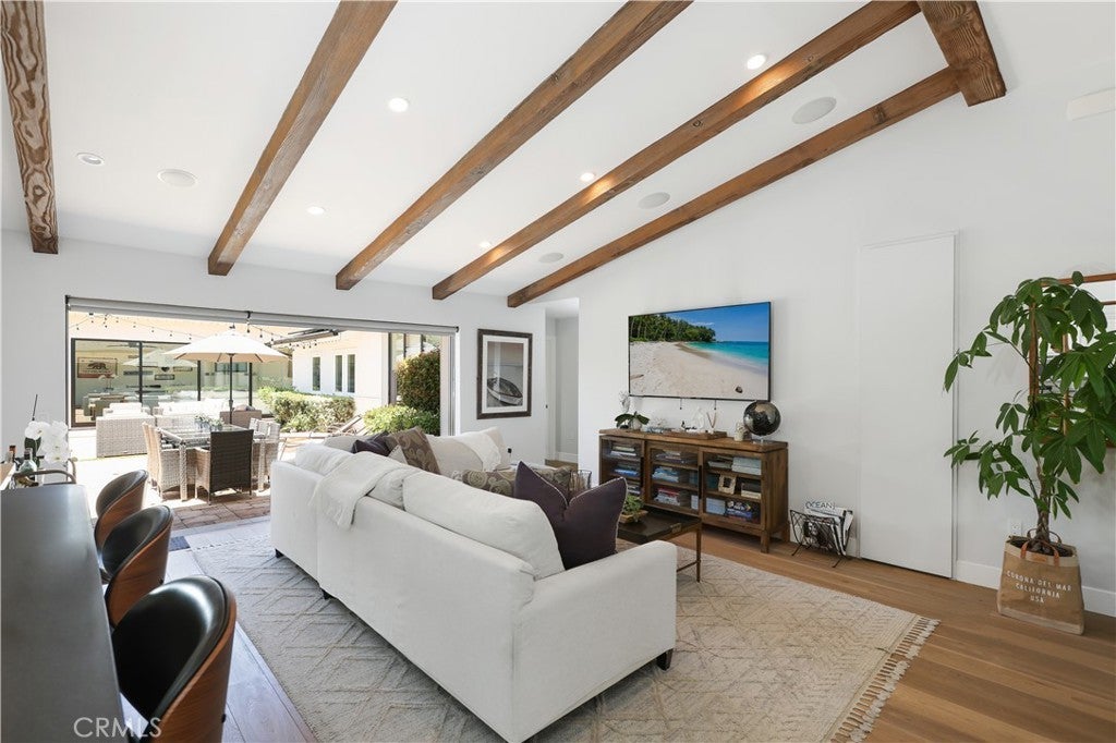 Available furnished for stays of 31 days or more. This exceptional single-level residence, located in the heart of Corona del Mar—the premier coastal destination of Orange County—offers the perfect blend of sophistication, comfort, and resort-style living. Designed for both entertaining and serene everyday enjoyment, the home features four bedrooms and three and a half baths on one level (with steps leading to the entry). The interiors are thoughtfully curated with stylish furnishings and custom finishes, creating an inviting and timeless aesthetic throughout. The home was completely remodeled in 2013 with meticulous attention to detail and an array of high-end upgrades. The gourmet kitchen, flooded with natural light, boasts premium appliances, a walk-in pantry, wine refrigerator, and is fully stocked for every culinary need. Multiple living areas provide abundant space to gather and relax: a formal living and dining room off the entry, a spacious family room seamlessly connected to the kitchen and backyard, and a separate guest house adjacent to the oversized spa. The private backyard retreat is designed for true indoor-outdoor living, featuring a spa, fire pit, comfortable seating and lounge areas, outdoor dining, a built-in BBQ with refrigerator and sink, and plenty of room to bask in the California sun. Additional highlights include central A/C, three televisions, Apple TV, high-speed internet, and a key to the exclusive private Shorecliffs beach access at the end of Morning Canyon. This extraordinary home embodies the very best of Corona del Mar living—ideal for both short- and long-term stays.