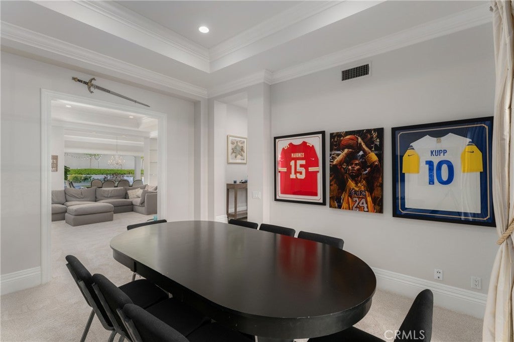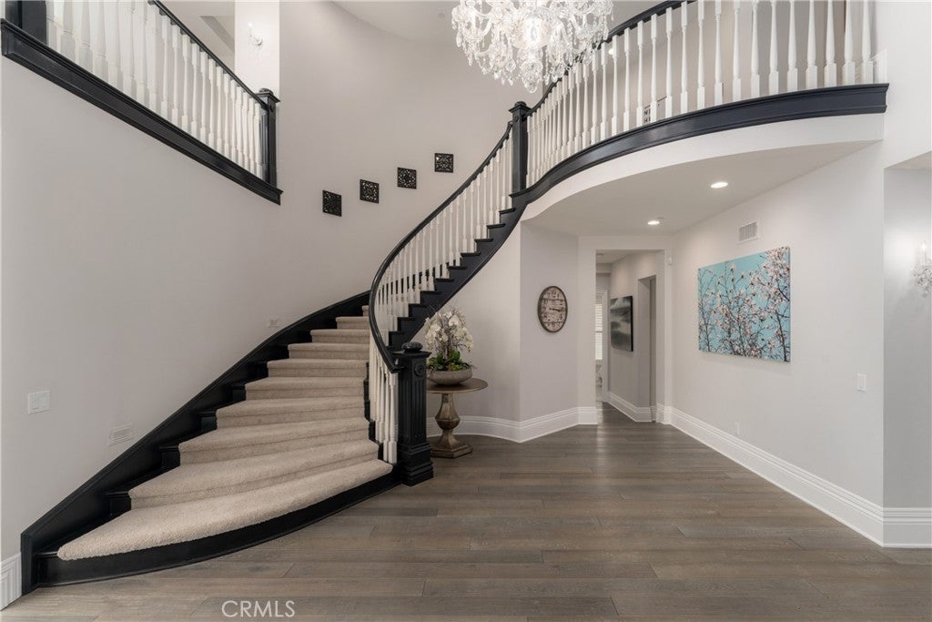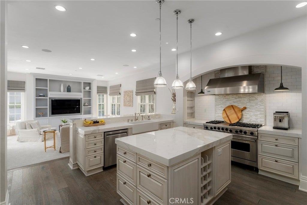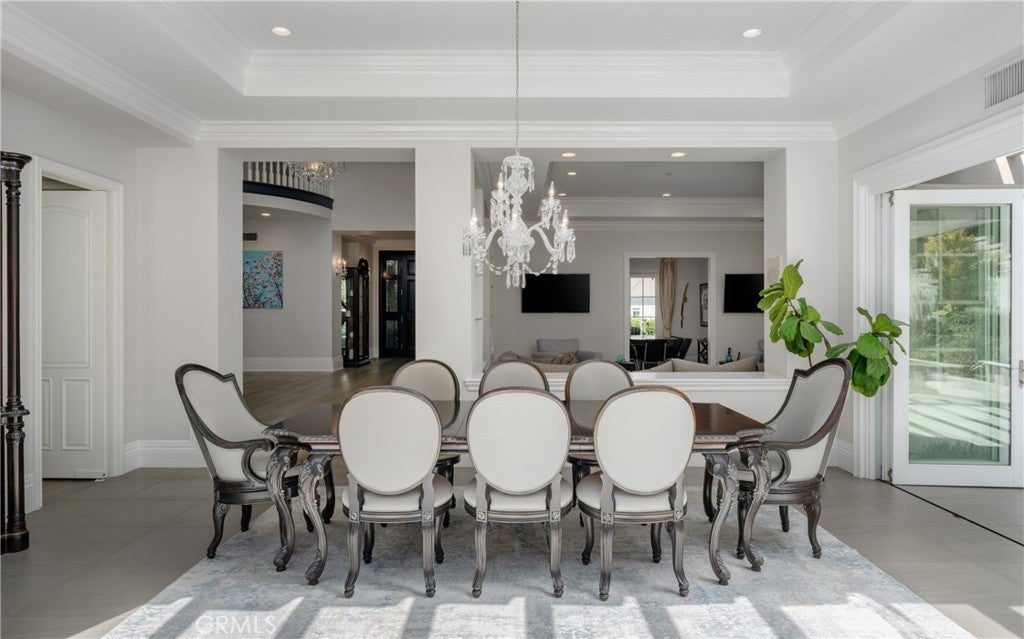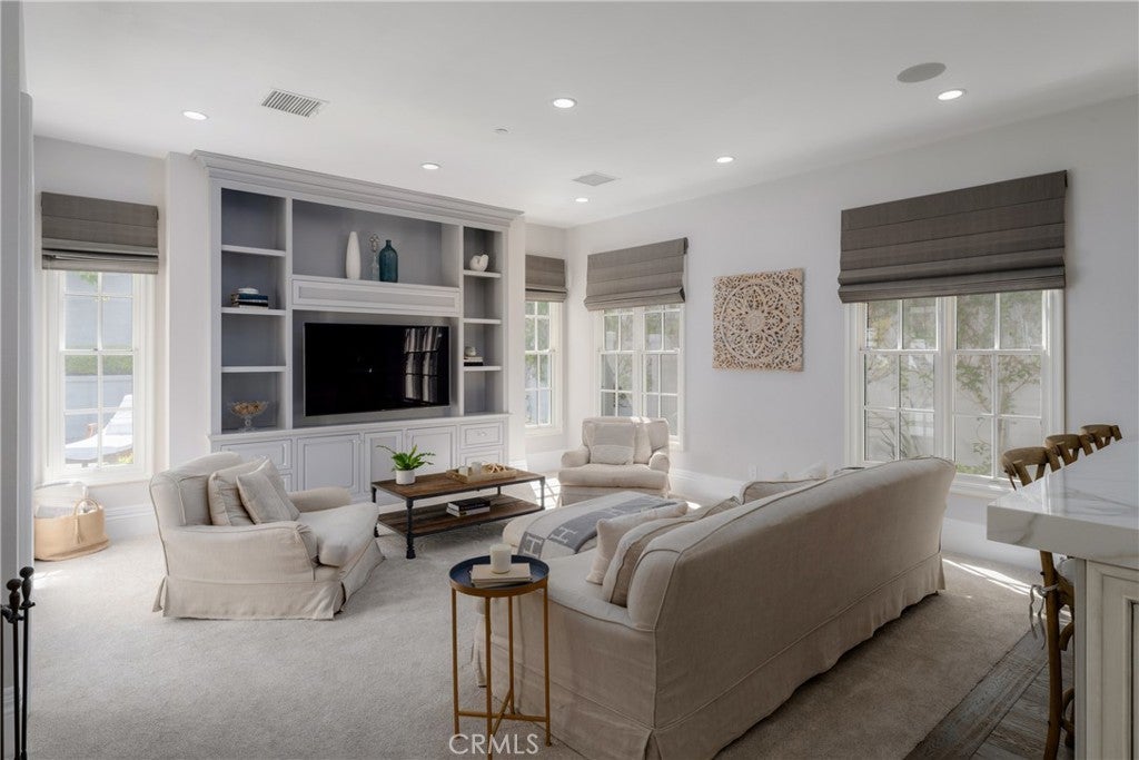 Located in the prestigious, guard-gated community of One Ford Road, this rare Providence Plan 4 offers over 5,100 square feet of refined living space—making it one of the largest homes in the neighborhood. A charming entry welcomes you into a grand foyer with a dramatic winding staircase. The main level boasts a spacious dining room with bifold doors that open seamlessly to the backyard, creating the perfect setting for indoor-outdoor entertaining. The chef’s kitchen features porcelain countertops, a large center island, Viking and Sub-Zero appliances, and custom cabinetry with abundant storage. Adjacent, you’ll find a formal living room and a versatile bonus room—ideal for a library, office, or even a poker room. A full ensuite bedroom completes the first floor, perfect for guests. Upstairs, the expansive primary suite includes a cozy fireplace, reading nook, and luxurious bathroom with dual sinks, marble finishes, soaking tub, and two custom walk-in closets. A private office or exercise room sits just beyond. Two additional guest rooms can be configured as a private wing. The backyard is designed for year-round enjoyment with a newly replastered pool and spa, generous lounge areas, and a built-in barbecue with counter seating. Residents of One Ford Road enjoy exceptional amenities, including two resort-style pools, a 27-hole putting green, clubhouse and fitness center, sport courts, and year-round community events—all in one of Newport Beach’s most desirable locations with top-rated schools and world-class shopping just minutes away.