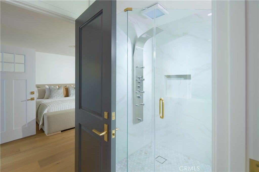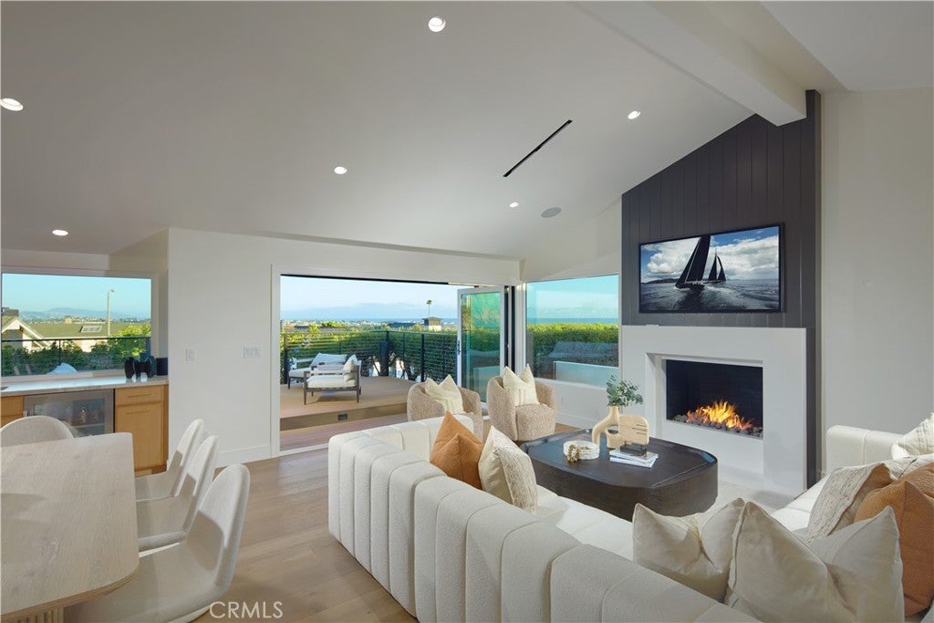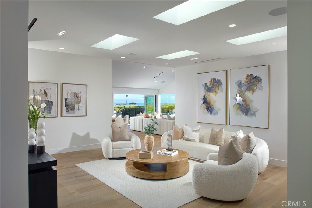 Tucked away on a cul-de-sac in Monarch Bay Terrace, this single-level 4 bed, 3.5 bath, appx. 3005 Sq Ft showpiece with panoramic ocean views has been fully reimagined, expanded, and redesigned. From the moment you arrive at the private extended driveway framed by lush, low maintenance landscaping, the home reveals itself as a rare blend of timeless coastal style and modern innovation. Step inside through a dramatic rift-cut white oak pivot door and discover wide-plank French oak floors, soaring 10-foot ceilings, and gallery-like proportions. Oversized WinDor glass doors frame uninterrupted ocean views, opening to an expansive terrace designed for seamless indoor-outdoor living. At the heart of the home, the kitchen balances form and function with an 8 foot Taj Mahal leathered quartzite island, custom oak rift-cut cabinetry with glass accents, and professional-grade appliances including a Thermador range, True commercial refrigerator, and Miele coffee station. A built-in bar with ice maker, sink, Thor beverage center and storage connects the kitchen, dining, and living spaces for effortless entertaining. The primary suite captures the coastline through picture windows and opens to a private terrace. The spa-inspired bath is finished with backlit Namibia Mystery Blue marble, a sculptural soaking tub, oversized rain shower, and dual vanities—all complemented by a fully customized walk-in closet. Two additional bedrooms share a designer bath, while a fourth bedroom suite offers flexibility as live-in quarters, guest casita or as a multi-generational living space with its own entry, ensuite bath, bar sink and private patio. Multiple lounges, TimberTech decking, stainless cable railings, and a built-in sound system create a resort-like setting with the Pacific Ocean as the backdrop. The three-car garage showcases reflective full-view doors, marble-look epoxy flooring, and EV-readiness, doubling as a stylish showroom. Modern conveniences abound with all-new plumbing and electrical, tankless water heater, high-efficiency HVAC, wired for whole-home automation, Sonos audio zones, and smart security; the residence delivers the peace of mind of new construction with the warmth of thoughtful design. 23262 Ellice Circle is more than a remodel—it’s a complete re-invention of the coastal California lifestyle, where luxury design meets everyday comfort against a backdrop of panoramic ocean views.