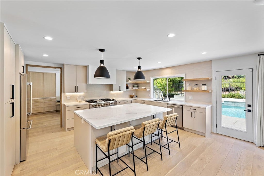 Rebuilt Luxury Pool Home. Nearly 3,500 sq ft of designer living, completely rebuilt from the studs in 2023. This 5 bed, 4 bath luxury pool home offers the best value in Orange County, buying below today’s replacement cost. Just minutes from Doheny Beach and Baby Beach, it sits on a quiet street with ocean views at one end and direct hiking trail access at the other. Highlights include soaring ceilings, hardwood floors, a chef’s kitchen with Thermador appliances and Thor 6 burner range, plus a secondary prep kitchen. The flexible floor plan features a downstairs bedroom and bath, an upstairs ensuite, and a stunning primary retreat with spa bath and walk in closet. Outside, enjoy a private saltwater pool, fire pit, Viking BBQ, and outdoor bar framed by mature olive and magnolia trees. With all new systems, roof, windows, and smart home automation, this home delivers modern efficiency, luxury, and unmatched coastal lifestyle.