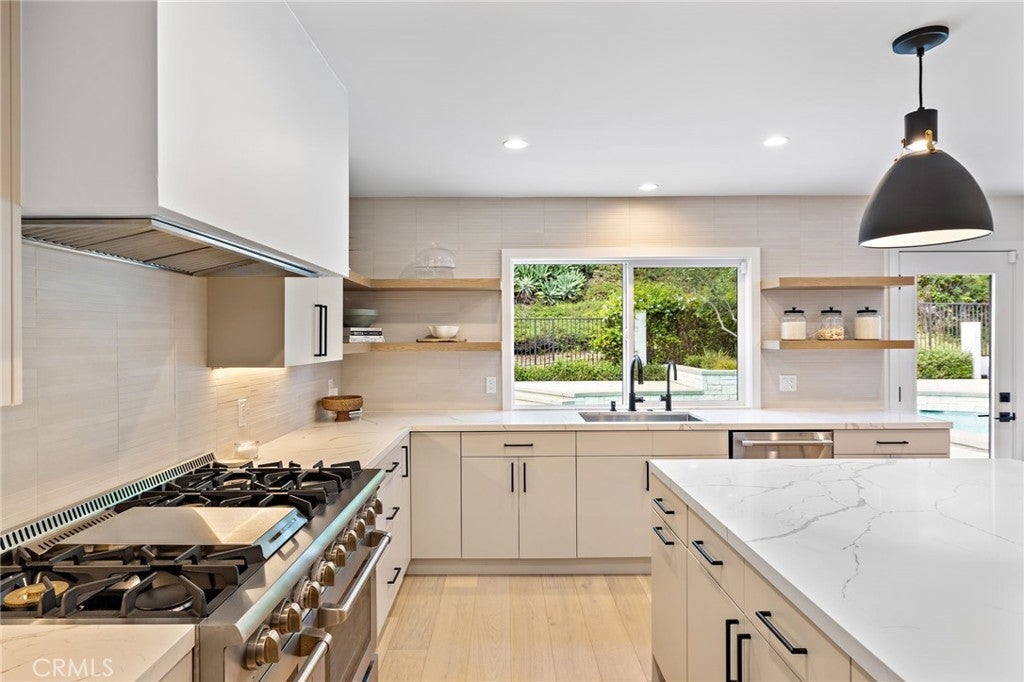 - AppliancesSixBurnerStove, Built-In Range, Barbecue, Dishwasher, Gas Cooktop, Disposal, Microwave, Range Hood, Tankless Water Heater