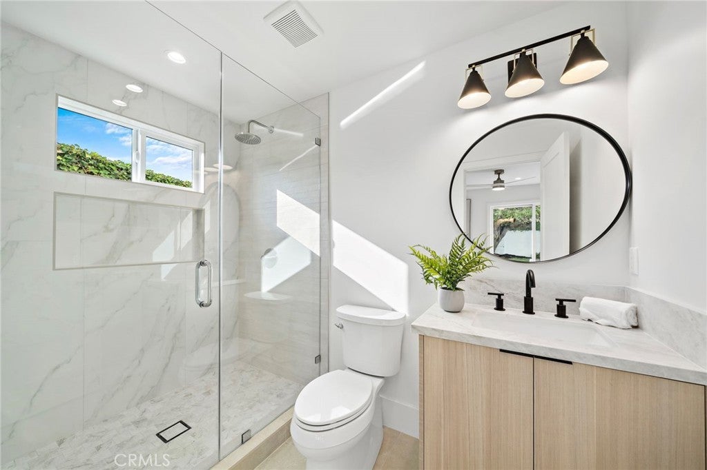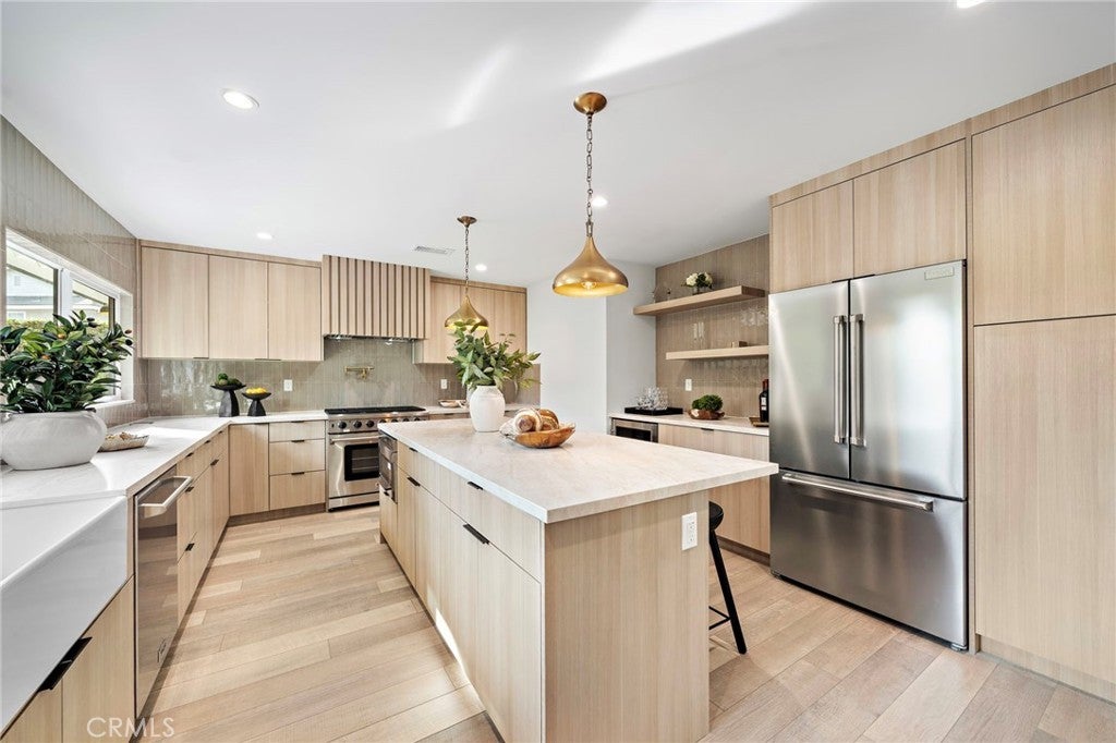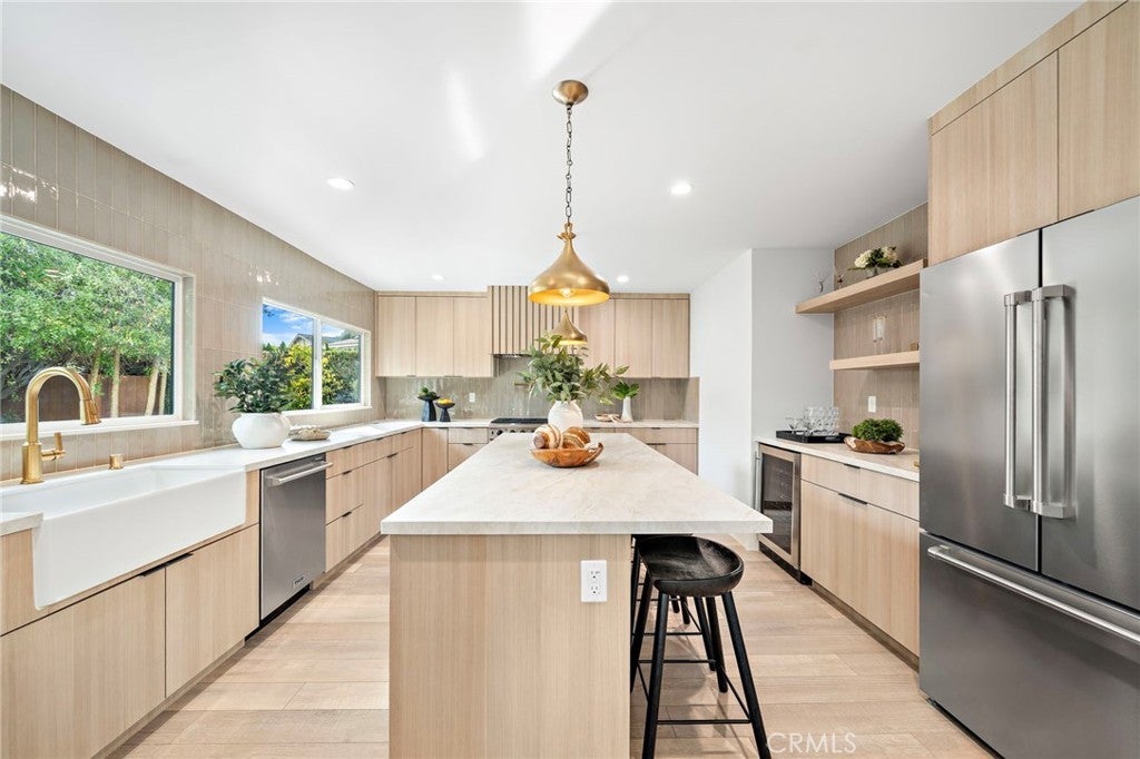 Welcome to a breathtaking modern coastal residence, completely renovated and fully permitted by the City of Huntington Beach. Nestled in a prime location, this home offers breathtaking views of the scenic Bolsa Chica Wetlands, near Meadowlark Golf Club, and just minutes away from the pristine shores of Huntington Harbour. Step into a light-filled great room, where the seamless blend of indoor and outdoor living creates a harmonious atmosphere. The kitchen is a culinary masterpiece, featuring a spacious island with Taj Mahal quartz surfaces, custom oak cabinetry with soft-close hardware, and top-of-the-line Thor appliances. The rich white-oak flow-through flooring extends throughout the main living areas, adding warmth and elegance to the space. Every system in this home has been replaced to ensure optimal performance and code compliance. From new electrical wiring and panel to a fully replaced HVAC system and ducting, every detail has been meticulously crafted to perfection. Retreat to the luxurious primary suite, where a spa-inspired bath awaits. Indulge in the oversized walk-in shower and separate soaking tub, creating a sanctuary of relaxation. Additional baths have been beautifully remodeled, featuring designer fixtures, Taj Mahal quartz vanities, and refined tiling that enhances the overall aesthetic. Outside, the grounds are designed for entertaining and relaxation, offering generous space and seamless indoor-outdoor flow that embodies modern coastal living. This isn’t just a renovation; it’s a complete re-imagining of what home can be in Surf City. Welcome to your masterpiece.