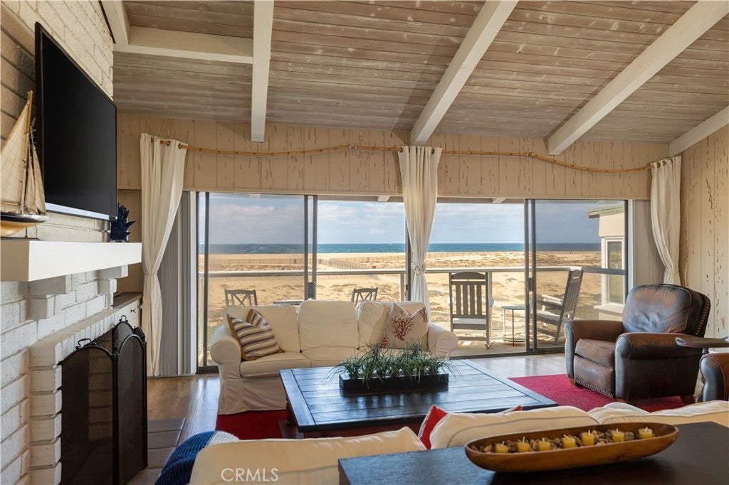 Located past the last turnout on the boardwalk at Peninsula Point, this highly desired location is close enough to walk to many of the area's most desirable amenities yet also private and serene. The oversized lot affords this spacious and meticulously kept home featuring an "upside down" floor plan with living areas on both levels. Perfect for entertaining at the beach, it includes a family room opening to a large terrace on the beach level. Upstairs, there are vaulted ceilings and a fireplace in the very large, open-concept great room overlooking the coastline and ocean. The Catalina and sunset views are not to be missed. The home also includes a spacious master suite upstairs, two additional bedrooms with a bath downstairs, a guest bath, laundry room, and an amazing oversized garage with parking for three cars and over-height ceilings ideal for beach storage. The elevation change on the lot - which is a rarity among oceanfront properties in Newport - affords extra buildability which has been captured in this structure. This home is very well-kept and is ideal for those looking to personalize a home without having to build new. The location is excellent and is close to world-famous Wedge, the Balboa Pier, Balboa Island, and several neighborhood parks. The beach here is very deep and rarely attracts the crowds found elsewhere on the peninsula. This is an extraordinary opportunity for such a location, and priced attractively for the value-conscious buyer.