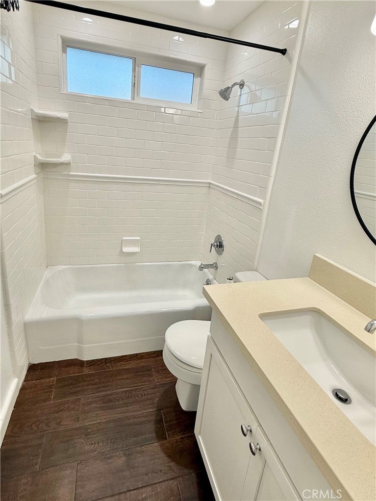 This beautifully updated upstairs apartment offers 2 bedrooms and 2 bathrooms in the highly desirable southwest area of San Clemente. The home features modern amenities including elegant wood tile flooring, newer kitchen cabinets, and updated countertops. The layout includes a spacious living room, one full bathroom with a tub-shower combination, and a second bathroom with a stand-up shower enclosure. Convenience is key with community laundry located downstairs and a dedicated one-car parking garage, plus an additional parking space directly in front of the garage. Situated in the "Heartland of Surf City," this prime location provides easy access to the beach, local shops, and restaurants, offering an ideal Southern California lifestyle.