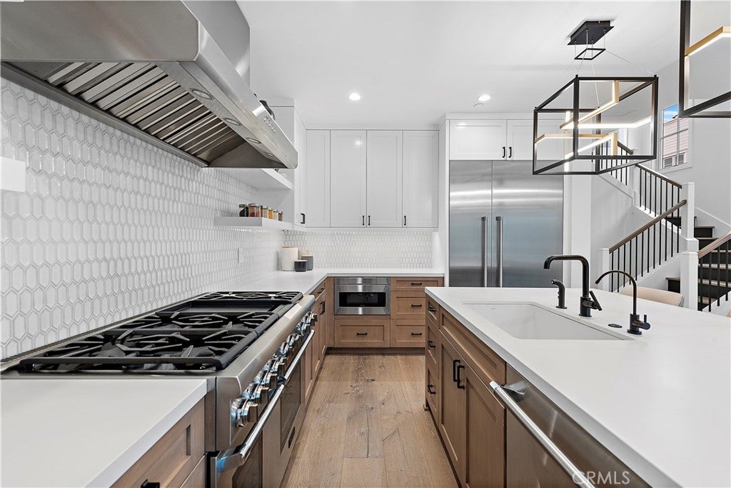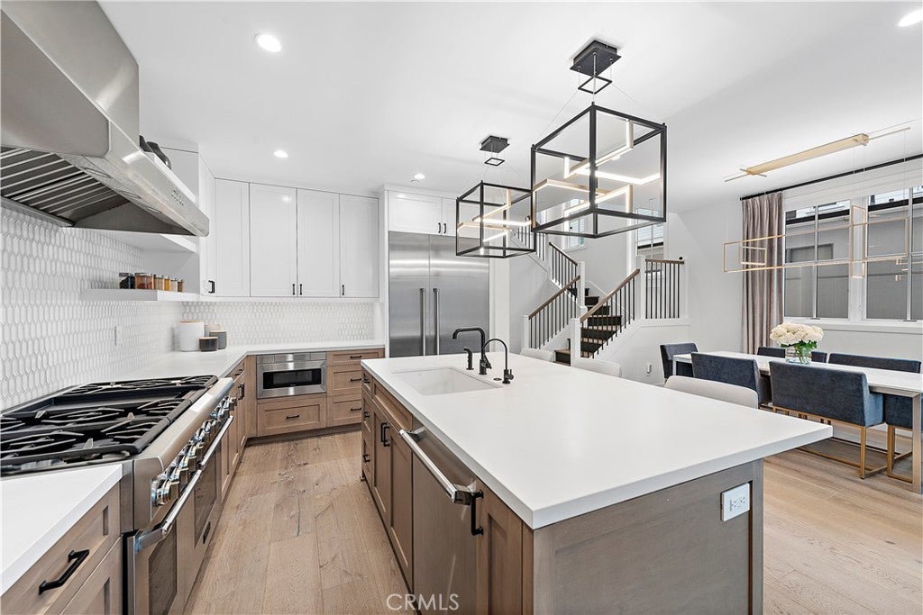 Custom Home Builder Waterpointe presents luxurious living in the heart of Corona Del Mar Village. This coastal modern home with superior design finishes, quality craftsmanship and detail is made to impress the most discerning individual. Open floor concept seamlessly combines indoor/outdoor living. The gourmet kitchen is second to none, with custom raised panel cabinetry, backsplashes, a beautiful White Quartz center island and state of the art appliances take cooking and this kitchen to another level. The living room, dining room and kitchen with direct access to the front courtyard creates one huge open space, ideal for entertaining and family gatherings. European oak wood floors and natural stone finishes makes for an immaculate coastal chic living experience. The Master has a large walk in closet, Balcony, the bath with dual sinks, soaking bath tub, a rain shower gives you a spa like retreat. Other amenities include roof top deck with bar area for endless sunsets, soaking some sun or just lounging around. Don't miss the opportunity to live in the flower streets, walking distance to some of the best beaches in southern California, world class shopping, dining and entertainment. The property is offered unfurnished.