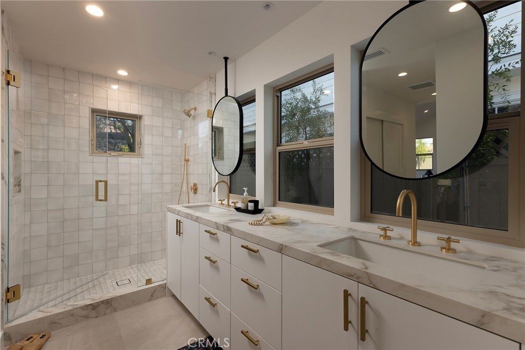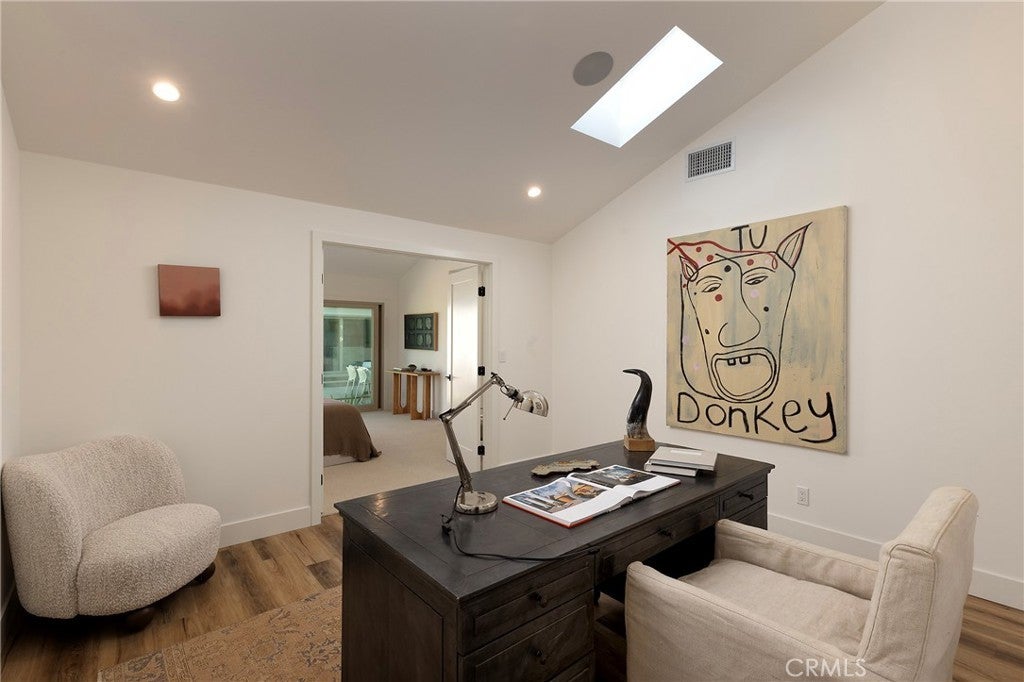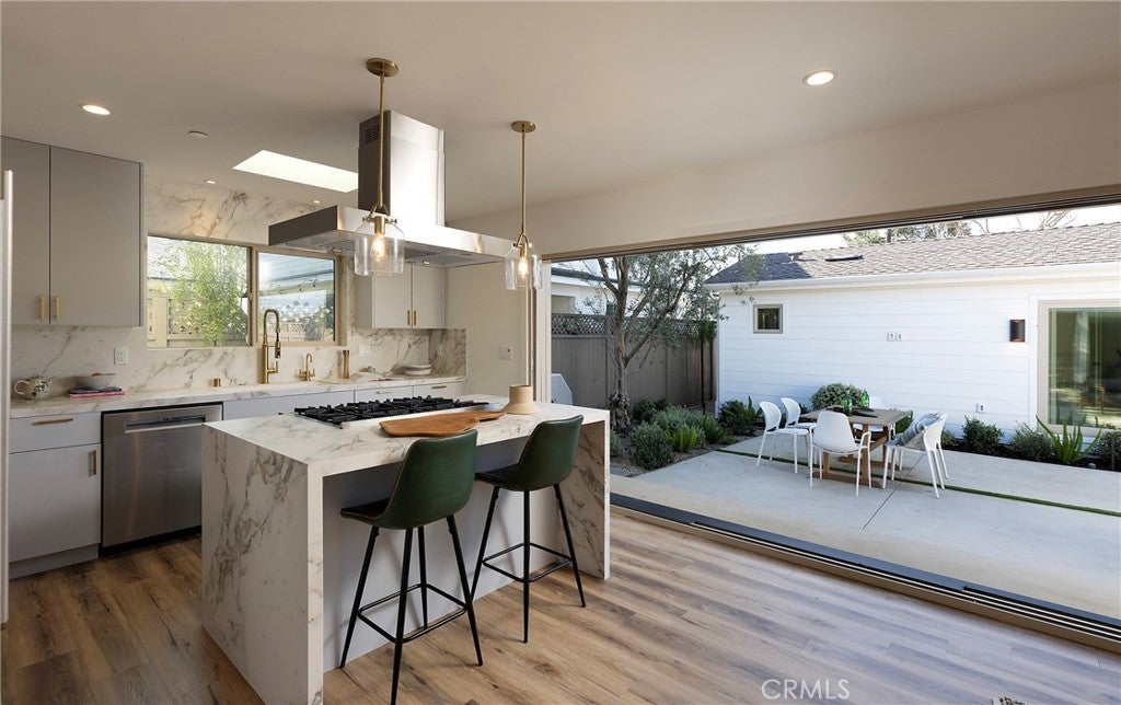 Designed and built by local firm Abode Design + Build, this extensively updated dual-residence property delivers versatility, quality, and a relaxed coastal lifestyle on an expansive 8,000+ square-foot lot in a highly sought-after Eastside Costa Mesa location. Tucked behind a gated entry, the property is surrounded by curated landscaping, newer hardscape, and multiple outdoor spaces created for entertaining, gathering, and everyday enjoyment. The front residence is a reconfigured single-level home offering approximately 1,640 square feet of light-filled living space. Open interiors, high ceilings, skylights, and expansive sliding glass doors create an effortless connection to the outdoors. Wide-plank vinyl flooring runs throughout the main living areas, while the kitchen is finished with Calacatta Venato porcelain countertops, custom cabinetry, and premium appliances. The primary suite features dual closets and a thoughtfully designed bath with elevated tile selections, complemented by well-appointed secondary bathrooms that maintain a consistent design aesthetic. Privately positioned at the rear of the property, the detached appx. 938 sq ft ADU—added in 2025—provides a fully independent living experience with two bedrooms, two baths, a full kitchen, and its own entrance, making it ideal for extended family, guests, or rental income. Abundant natural light, indoor-outdoor flow to a private patio, and finishes that echo the main residence ensure continuity throughout the property. A finished, expanded garage of approximately 520 square feet supports both residences. Additional features include integrated audio, smart-home functionality, and a prime location just minutes from beaches, top schools, dining, and retail. A rare opportunity offering flexibility, thoughtful design, and long-term value in a turnkey coastal setting.