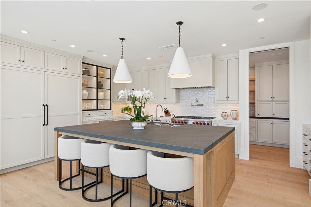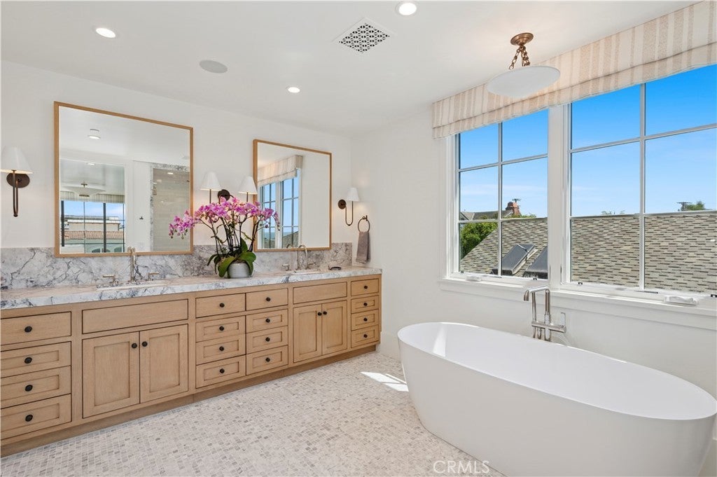 Thoughtfully designed by renowned Brandon Architects and expertly built by Legacy Custom Homes, this brand-new, FULLY FURNISHED, custom masterpiece is just moments from the sand and offers 3 bedrooms and 3.5 bathrooms across a flowing, open-concept floor plan. Wide-plank white oak flooring runs throughout, lending warmth and continuity to every space. Expansive walls of glass flood the interiors with natural light and foster a seamless indoor-outdoor connection, epitomizing refined coastal living. The quintessential Corona del Mar front patio features a built-in fireplace and opens through disappearing doors to a welcoming living room with its own fireplace and custom built-ins. At the heart of the home, the gourmet kitchen is anchored by a dramatic honed granite island with seating, and equipped with an 8-burner range and pot filler, extensive cabinetry, and a walk-in butler’s pantry with prep sink, generous storage, appliance garage, and built-in microwave. Motorized drapery and curated designer finishes enhance both comfort and sophistication. Additional amenities include a mudroom conveniently located off the two-car garage and a spacious laundry room with sink, countertops, and custom cabinetry. The primary suite is a true retreat, complete with sweeping ocean views, a cozy fireplace, custom built-ins, an oversized walk-in closet, and a spa-caliber bathroom with soaking tub, dual-sink vanity, and walk-in shower. The home’s expansive rooftop terrace provides a built-in barbecue and panoramic views that span the ocean, harbor, Catalina Island, and sparkling city lights. Perfectly positioned near Corona del Mar’s iconic beaches, scenic China Cove, and the village’s acclaimed dining and boutiques, this is a rare opportunity to lease a brand-new coastal haven in one of Orange County’s most desirable neighborhoods.