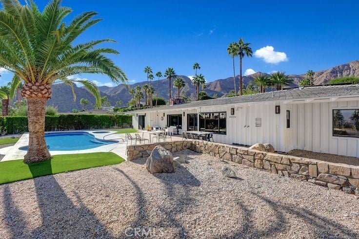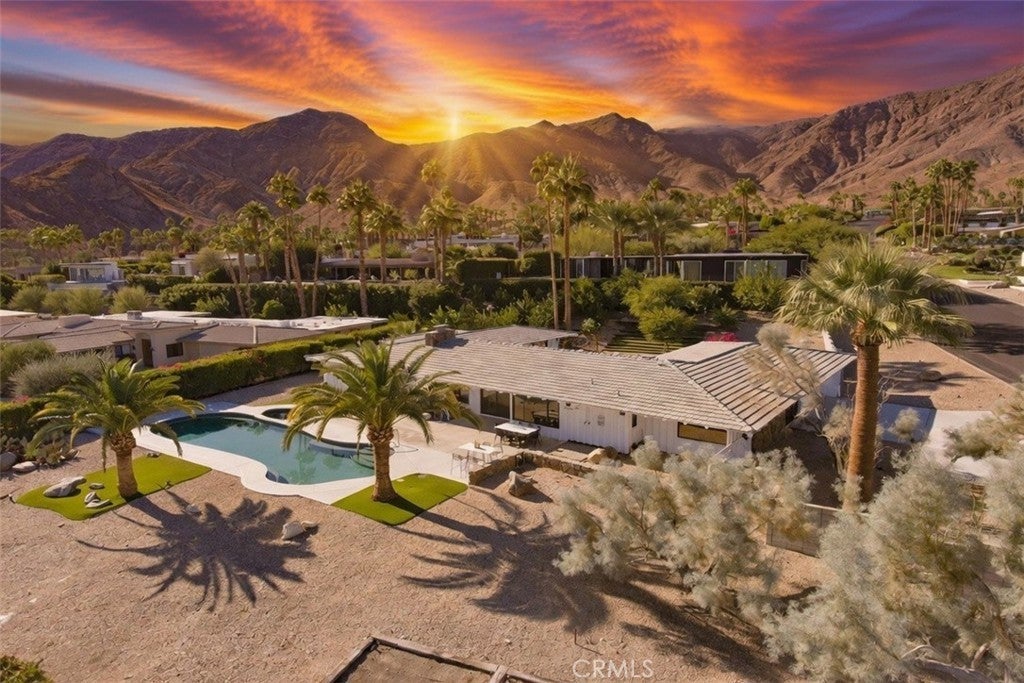 Mid-Century Modern Gem in Thunderbird Heights: Nestled in the prestigious Thunderbird Heights neighborhood of Rancho Mirage, this rare 1959 Howard Lapham original masterpiece has absolutely stunning panoramic down valley views. Perched on a private, walled corner lot spanning over 0.61 acres, this secluded 3-bedroom, 3-bathroom residence offers 2,547 sq ft of sophisticated living space, over 30 mature citrus trees, complete privacy, and the ultimate desert lifestyle.