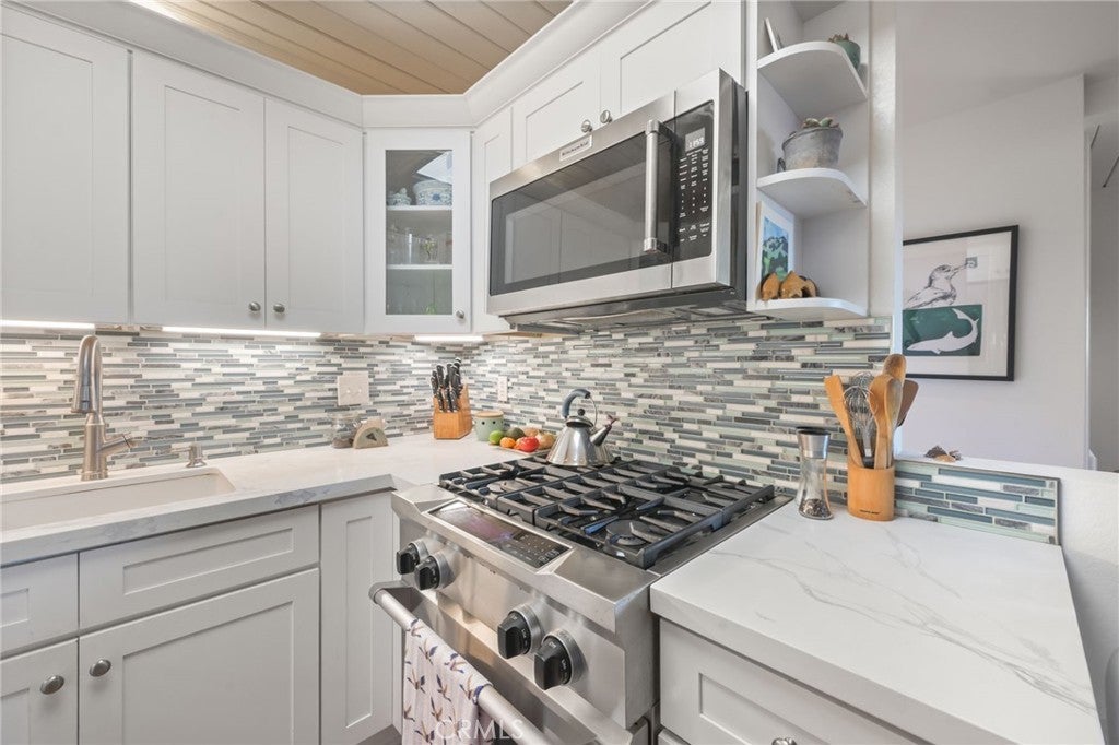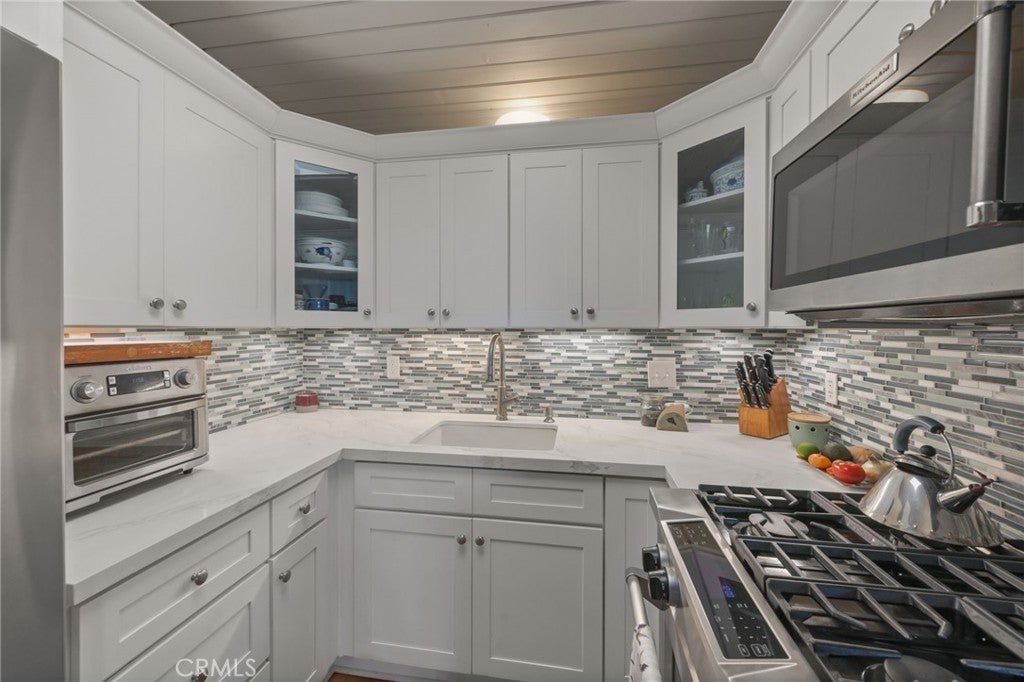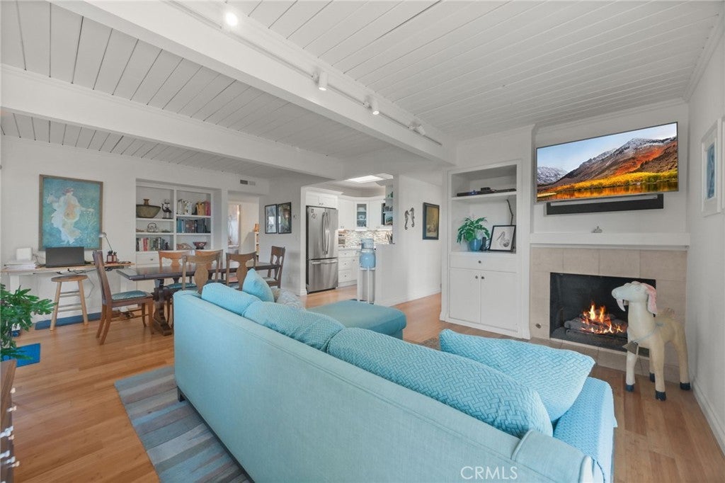 Discover coastal living at its finest in this beautifully updated 2-bedroom, 2-bathroom single-level beach cottage, perfectly positioned in Dana Point's coveted Lantern Village. This delightful home offers the ultimate Southern California lifestyle where ocean breezes, walkability, and modern comfort come together seamlessly. Just a 10-minute stroll to the beach and Dana Point Harbor, you'll enjoy easy access to waterfront dining, shopping, and coastal recreation. The vibrant Lantern Village puts boutique shops, local restaurants, and cafés right at your doorstep, making this the perfect spot for those who love to walk everywhere. The heart of this home shines with a completely renovated kitchen (2021) featuring: Custom cabinetry with ample storage, elegant quartz countertops, stylish modern tile back splash, brand-new stainless steel appliances, contemporary sink and fixtures, and beautiful bamboo flooring throughout. The enclosed front patio offers a private retreat with clever open-air windows that frame peek-a-boo ocean views and invite natural light while maintaining your privacy—perfect for morning coffee or evening relaxation. Located in a family-friendly neighborhood with nearby schools, a convenient dog park for your four-legged companions, and the heart of Dana Point's community just moments away. This rare single-level cottage combines turnkey condition with an unbeatable location. Experience the best of coastal living where every day feels like a vacation!