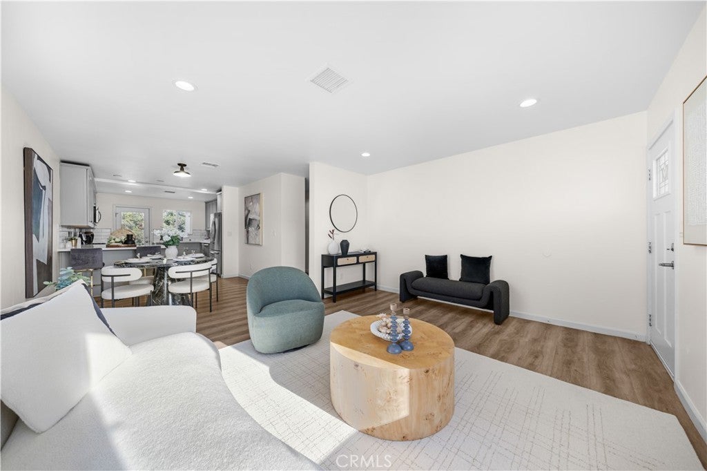 Welcome to 5429 W 76th Street, a single-story residence located on a quiet, tree-lined street in West Los Angeles. This 3-bedroom, 2-bath home offers approximately 1,311 square feet of living space with a functional and well-balanced layout. The property features a front yard, Craftsman-style exterior elements, and a long driveway leading to a detached garage. Inside, the home opens to a living room with plank flooring, recessed lighting, and multiple windows providing natural light. The living area connects directly to the kitchen, creating a practical main living space. The kitchen includes cabinetry, countertops, a tile backsplash, appliances, and a center island providing additional workspace and seating. A rear door from the kitchen offers direct access to the backyard. The backyard includes a grassy area and raised patio deck, suitable for outdoor use. Bedrooms are well proportioned and positioned to allow flexibility for personal or professional use. Bathrooms are functional and reflect finishes consistent with the home. A detached garage provides off-street parking and additional storage options. The property is conveniently located near local schools, shopping, dining, beaches, LAX, and major freeway access. Suitable for owner-occupants or investors seeking a property in a Westside location.