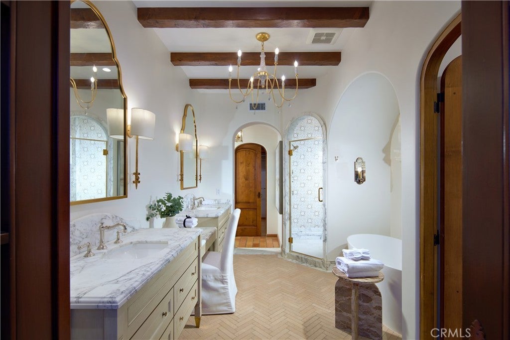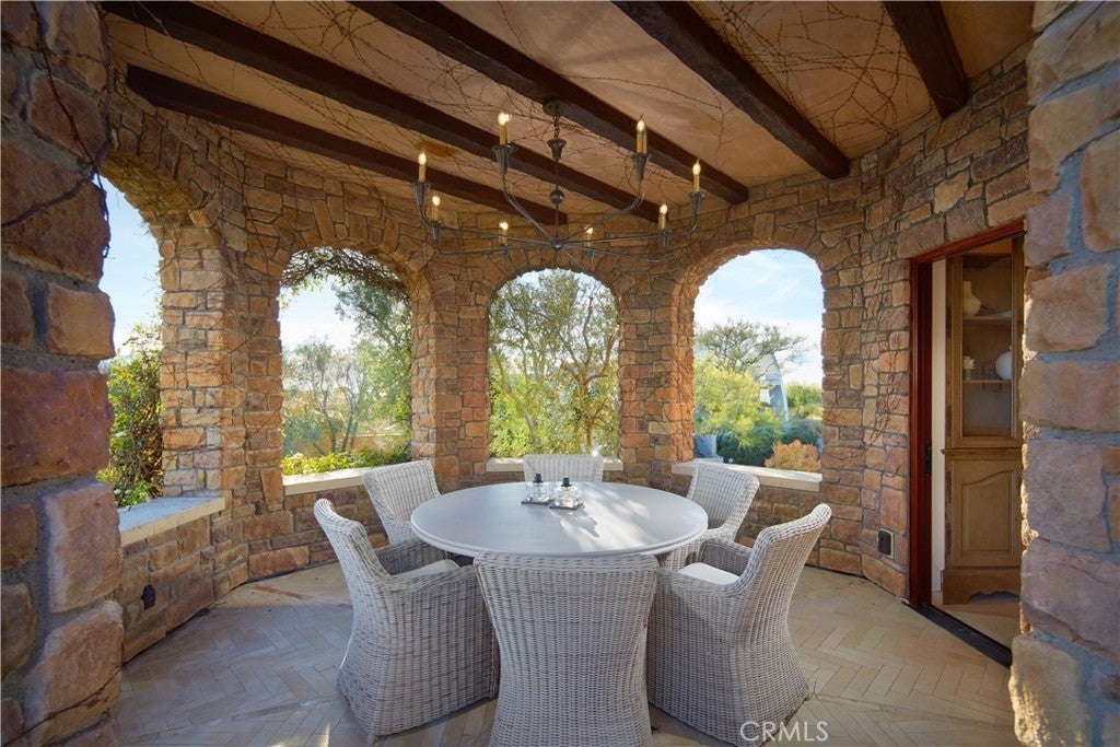 - Interior FeaturesBeamed Ceilings, Balcony, Separate/Formal Dining Room, Eat-in Kitchen, Pantry, Stone Counters, Recessed Lighting, Wine Cellar, Walk-In Closet(s), Living Room Deck Attached, Walk-In Pantry