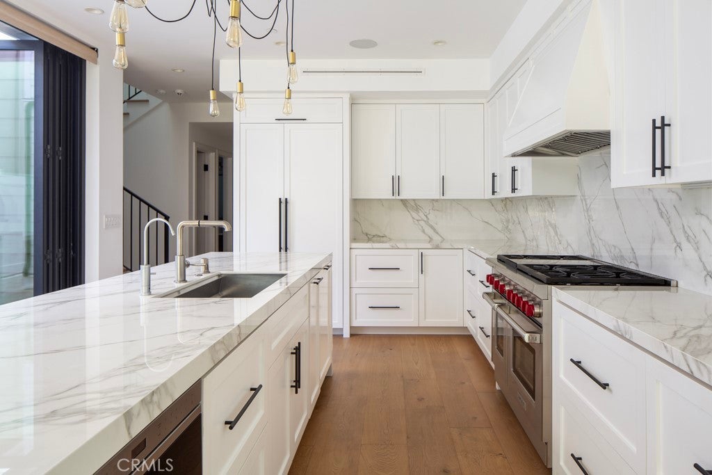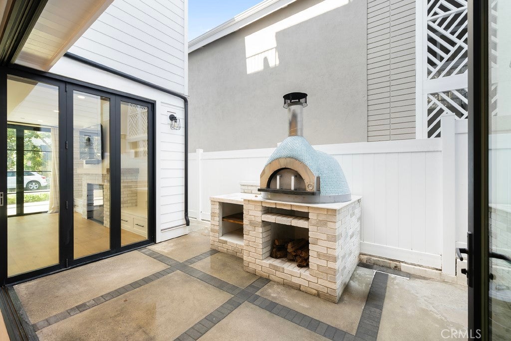 Perfectly positioned south of PCH on one of The Village’s most coveted streets, 616 Acacia presents an expression of coastal living infused with thoughtful design and timeless craftsmanship. This front-unit residence seamlessly blends modern architecture with natural warmth, offering effortless livability in a setting that feels both refined and unmistakably CdM. A crisp white brick façade and verdant front patio create an inviting experience, emblematic of the neighborhood’s coastal charm. Inside, an open-concept living space is bathed in natural light, anchored by a statement fireplace and wide-plank hardwood floors that set a tone of understated elegance. The kitchen features a generous center island and Wolf and Sub-Zero appliances, including a six-burner range and integrated microwave/warming drawer. Folding glass doors blur the line between indoors and out, opening to both the front patio and a private side courtyard and creating a seamless sense of flow throughout the main living area. Designed for gathering and entertaining, the outdoor spaces offer lush landscaping, ample seating areas, and a built-in pizza oven. Experience custom built-ins and discreet under-stair storage to a full laundry/mudroom and televisions thoughtfully integrated throughout the home. Upstairs, the primary suite serves as a private retreat with its own balcony and a spa-inspired bath featuring dual shower heads, a soaking tub, double vanity, and walk-in closet. A secondary ensuite bedroom completes the second level, while the third floor unveils an additional ensuite retreat and a rooftop deck with views of the Village, Fashion Island, and the ocean beyond.