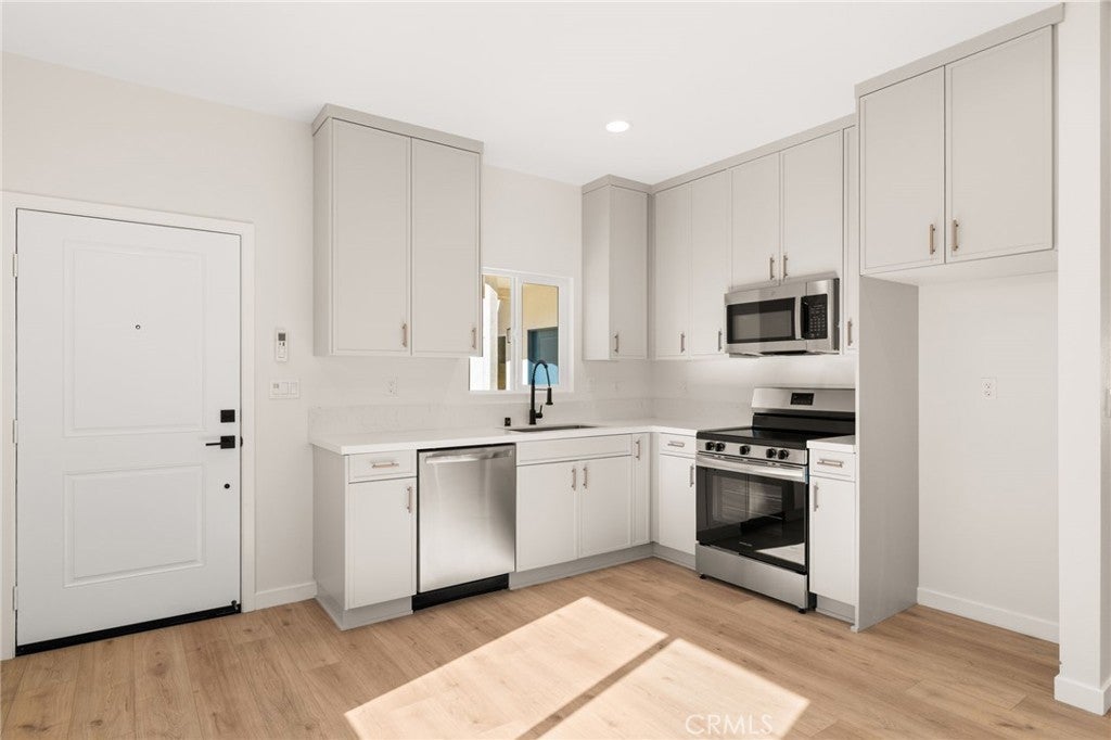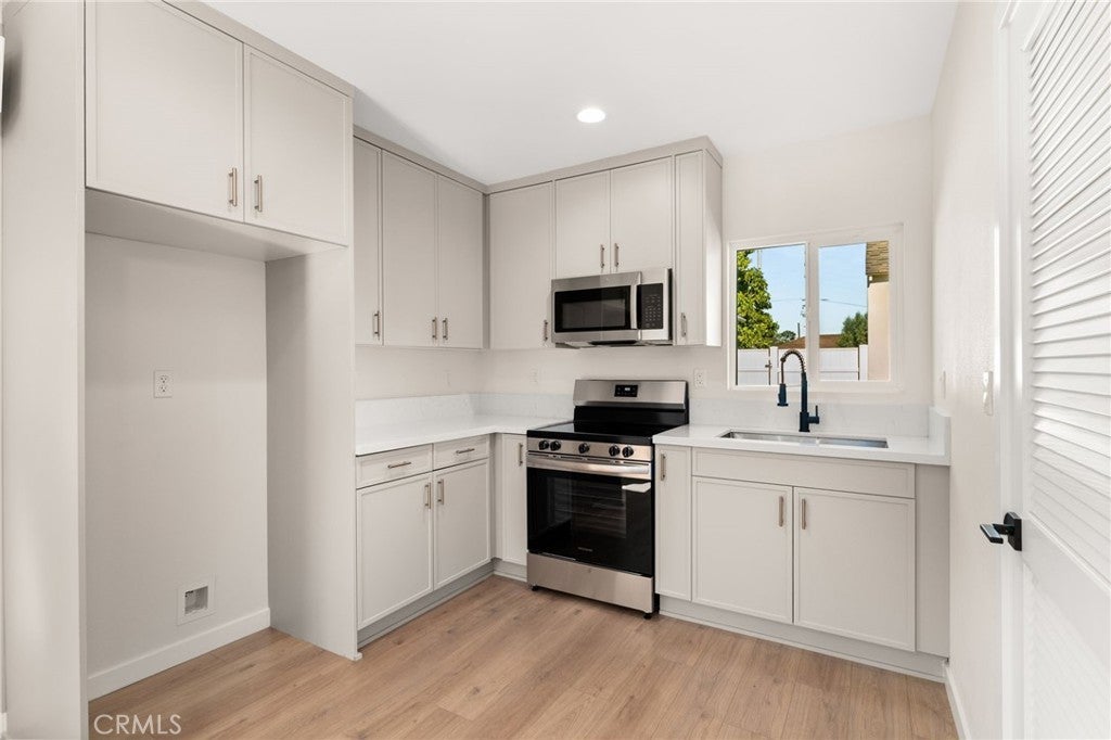 Look at this fantastic turnkey, rent-ready three unit property consisting of a beautiful and completely remodeled 3 bed 2 bath single-family main home (2151 Euclid), with a TWO UNIT Guest House/ADU built new construction in 2026 (2155 Euclid A & 2155 Euclid B)! The fully renovated 3-bedroom, 2-bath main residence offers approximately 1,272 sqft of modern living on a 6,000 sqft lot. The open-concept layout showcases high-end finishes, including a chef-inspired kitchen with slim shaker cabinetry, quartz countertops, stainless steel appliances, and stylish wood-look flooring throughout. The spacious primary suite features a luxurious walk-in shower, while the indoor laundry adds everyday convenience. A shared backyard completes the main home. In addition to the front house, this property offers a brand new construction detached Guest House containing two ADU’s; a 1 bed 1 bath (463sqft) and a 2 bed 2 bath (713sqft), for a total of three rental units on site—ideal for income-producing rental opportunities, first time investors, and multi-generational living. All three have brand new mini-split AC/Heat systems. This is a rare opportunity for both owner-occupants and investors—live in the front home while renting out the rear units, or add three desirable rental units to your portfolio. With premium upgrades, efficient layouts, and strong rental demand in the area, this property stands out as a high-performing asset in an attractive location.