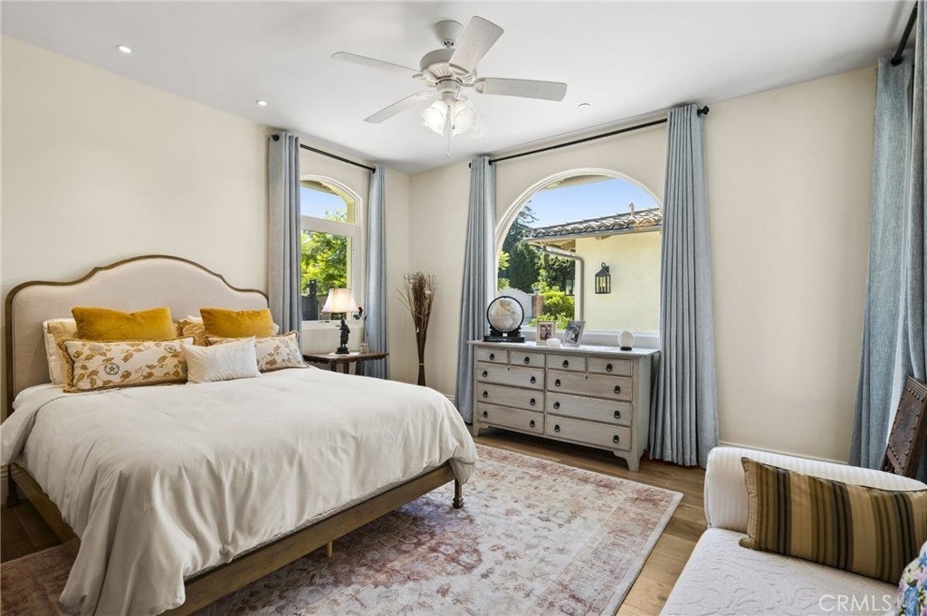 Exceptional single-level home on a sprawling 17,850 sq ft lot with sweeping views of historic San Juan Capistrano and spectacular mountain vistas. This 3-bedroom + bonus room residence that can easily be converted to a 4th bedroom offers lofty ceilings, rich French oak floors, crown molding, and abundant natural light through expansive windows and cantina doors that open to the outdoors. The gourmet kitchen features a massive island with seating, Sub-Zero fridge, Miele 8-burner cooktop, dual sinks, double ovens, a walk-in pantry, and opens to the spacious family room with floor-to-ceiling brick fireplace and seamless indoor/outdoor flow. The primary suite includes a large walk-in closet, direct patio access, soaking tub, dual sink vanity, and an oversized shower with multiple heads. Each ensuite bedroom enjoys private outdoor access. The backyard is designed for both relaxation and entertaining, with patios, garden paths, fire pit, and panoramic views. Additional highlights: large laundry room, 3-car epoxy garage with 220V, dual-zone HVAC, tankless water heaters, whole-house vacuum and filtration, and solid-core doors with designer hardware, gated entry, interlocking paver motor court, and zoning for equestrian use with room for a barn or pool. Just minutes from downtown, train station, beaches, trails, golf, top schools, and dining.