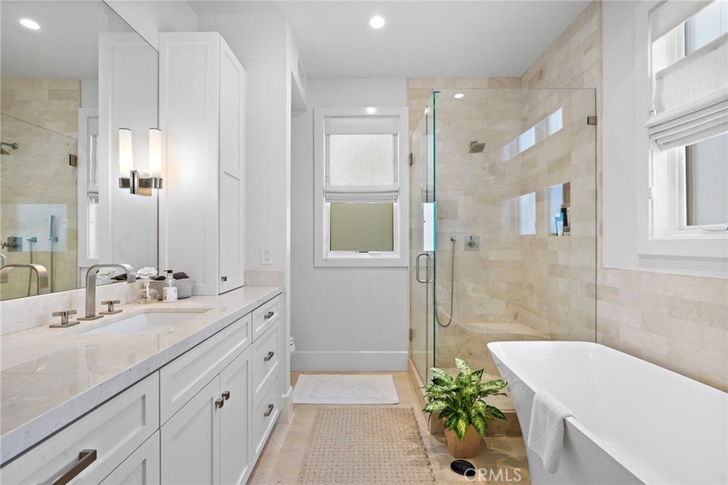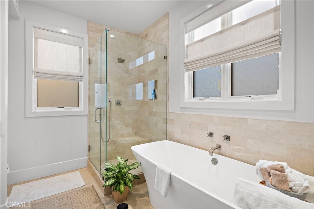 Located in the heart of the coveted Flower Streets of Corona del Mar, this rare offering combines prime walkability with effortless coastal living. Just steps from pristine beaches, luxury boutiques, and acclaimed dining—and moments from Fashion Island and John Wayne Airport—this recently built residence delivers the very best of the CdM lifestyle. The bright and airy two-bedroom, two-and-a-half-bath condominium is thoughtfully designed with high ceilings, skylights, and an abundance of natural light throughout. An ELEVATOR services the first two floors with easy access from the downstairs to the main living space. The well-appointed kitchen is equipped for both everyday comfort and entertaining, seamlessly connecting to the living area, which opens to an oversized, covered loggia. With ample space for dining, lounging, and enjoying the outdoor fireplace, this loggia serves as a true extension of the living space. Upstairs, the secondary bedroom has been configured as a functional and stylish office with its own en-suite bathroom, offering flexibility for work or guests. The primary suite provides a private retreat, complete with a walk-in closet and a spa-like bathroom featuring a separate shower and soaking tub. Crowning the home is a rooftop deck ideal for barbecuing and entertaining, showcasing charming neighborhood views and peekaboo ocean vistas. Designed by Brandon Architects, the property features neutral tones, quality materials, and a timeless coastal aesthetic. Bright, refined, and impeccably located, this exceptional residence is perfect as a full-time home or an easy lock-and-go beach retreat.