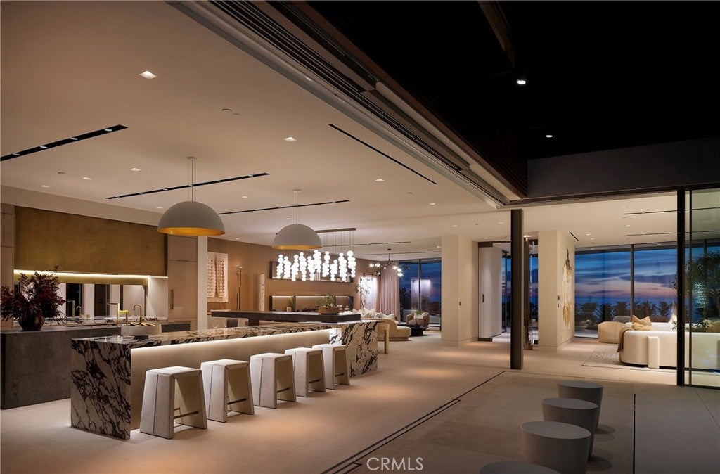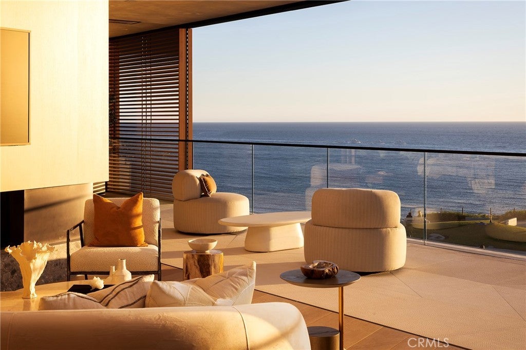 Set along one of the most coveted stretches of Ocean Boulevard, this rare architectural sanctuary is conceived as a place of quiet retreat—where land, light, and sea exist in effortless balance. Sculpted in sun-warmed stone, whispering glass, and open air, the residence unfolds with a calm confidence, its form shaped not to dominate the horizon, but to draw the horizon inward. From the moment of arrival, the home reveals itself gradually. Planes of stone and softened edges create a sense of enclosure and privacy, while carefully framed views pull the eye outward toward the Pacific. Every line is intentional; every transition between spaces is unhurried. The architecture invites pause—allowing light, shadow, and coastal air to become active elements of daily life. The main level is conceived as a continuous, flowing environment where living, dining, and kitchen spaces merge seamlessly. Here, expansive walls of glass dissolve boundaries, opening the home to ocean light and sky while preserving an intimate sense of shelter. The kitchen is both functional and sculptural, anchoring the space as a place of gathering and quiet ritual rather than display. Above, the private quarters offer a deeply restorative atmosphere. The primary suite is designed as a retreat within a retreat, complete with a dedicated sitting area where mornings begin with filtered coastal light and evenings settle into stillness. Secondary spaces are equally considered, each offering privacy, softness, and a connection to the natural rhythms outside. A media room on the second level provides a more inward-focused experience—an enclave for reflection, conversation, or retreat from the day—while the lower level opens into a more relaxed living environment, suited for extended stays, hosting, or multigenerational living. Throughout the home, materials are consistent and restrained, allowing texture, proportion, and light to carry the narrative. What distinguishes this residence is not scale alone, but depth—emotional, architectural, and experiential. There has never been a home on Ocean Boulevard that so fully captures the quiet power of its setting, where architecture breathes in rhythm with the sea and each space offers restoration rather than spectacle. This is not a home designed to impress at first glance. It is a place to be discovered slowly, lived in fully, and returned to—again and again—as a personal refuge overlooking the ever-changing horizon.