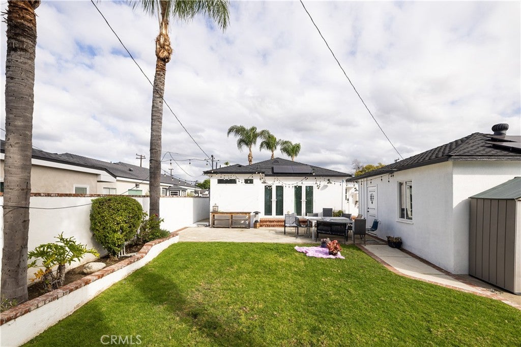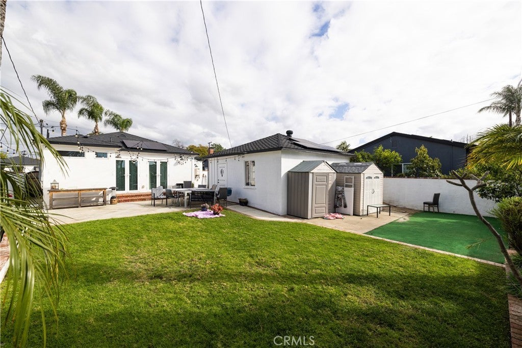 Tucked along a palm-lined street in one of Orange’s most established neighborhoods, 860 N Grand Street offers effortless single-level living with modern upgrades and timeless charm. Featuring four bedrooms, two full bathrooms, and approximately 1,890 square feet, this home blends comfort, functionality, and style. Open-concept living spaces are filled with natural light from expansive front windows and anchored by a classic fireplace that creates a warm focal point. Recessed lighting throughout enhances the clean, modern aesthetic while maintaining a welcoming feel. Remodeled kitchen showcases quartz countertops, stainless steel appliances, white cabinetry, subway tile backsplash, and a generous island with bar seating and built-in gas cooktop—ideal for entertaining or everyday living. Seamless flow between kitchen, dining, and living areas maximizes usability and connection. Primary suite serves as a private retreat with dual sinks and a walk-in shower. Three additional bedrooms provide flexibility for guests, home office, or growing households. Private backyard is designed for gatherings and relaxation, complete with a covered patio, café string lighting, lush lawn, mature palm trees, and ample space to host. Detached one-car garage and extended driveway provide additional parking and storage. EV charging and owned solar enhances efficiency and long-term savings. Moments from the historic Orange Plaza, Chapman University, local dining, parks, and convenient freeway access, this home delivers both lifestyle and location in one of Orange’s most desirable communities.