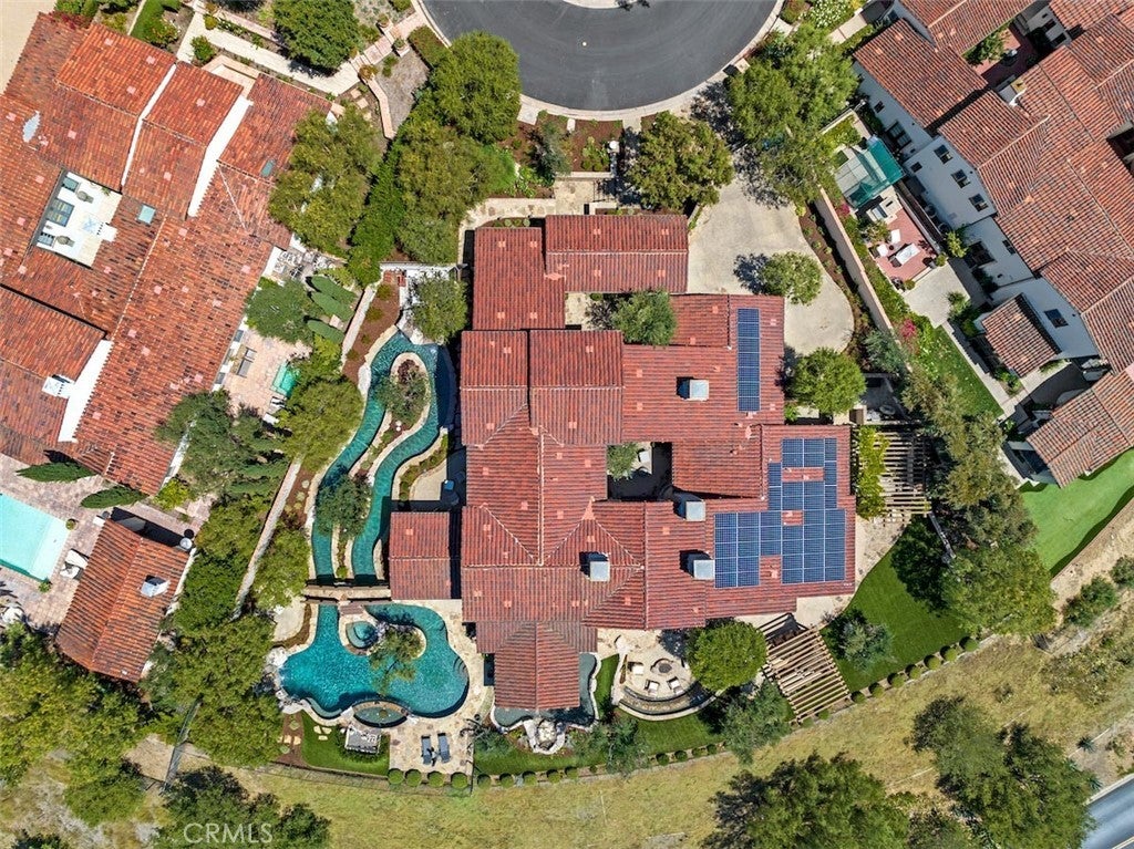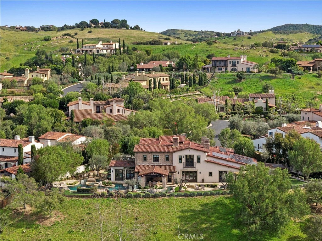 EXCEPTIONAL GOLF COURSE & CITY LIGHT VIEWS Reminiscent of new construction, this exquisitely renovated Master’s Collection residence is ideally positioned at the end of a short cul-de-sac on an over half-acre lot, capturing breathtaking golf course, rolling hill, and sparkling city light views. The five-bedroom, five-and-one-half-bath home has been thoughtfully transformed with refined finishes throughout, including warm hardwood flooring, curated designer lighting, elegant tile work, and detailed millwork that elevate every space. Resort-inspired grounds create a private oasis designed for both grand-scale entertaining and everyday indulgence. The extraordinary pool experience rivals a luxury retreat, featuring an elevated spa, lazy river, grotto, and tranquil waterfall - offering moments of play, relaxation, or both. The chef’s kitchen is a true centerpiece, appointed with top-tier appliances, bespoke cabinetry, and intentional design for both function and beauty. Adjacent living spaces provide seamless versatility: formal living and dining rooms open to a charming central courtyard through French doors; the family room and sunlit morning room frame the kitchen for effortless gatherings; and a custom-finished media lounge serves as a dramatic showpiece for elevated entertaining. The primary suite occupies its own expansive private wing on the second level. A spa-inspired bath anchors the retreat, complemented by dual walk-in closets - one currently configured as a private office. Additional highlights include a secondary bedroom wing with all ensuite accommodations, an attached guest casita with its own living room, and owned solar panels. Residents of Shady Canyon enjoy world-class amenities including two 24-hour guard gates, scenic walking and cycling trails, pickleball and tennis courts, a sports court, swim facilities, playground, and more - all moments from award-winning schools, UCI, and premier shopping and dining destinations.