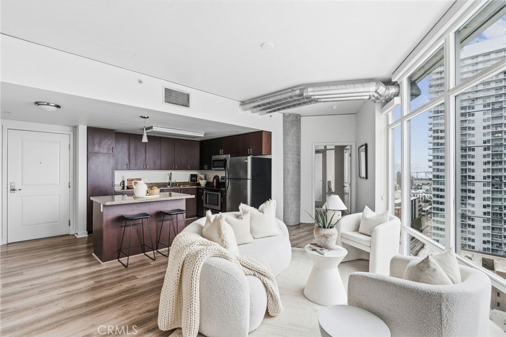 Live at the center of it all at Smart Corner in downtown San Diego. Step outside and instantly connect to the city’s best — incredible dining, buzzing nightlife in the Gaslamp Quarter, Padres games at Petco Park, and scenic waterfront views along the Bay. Unit 1416 blends comfort and convenience with a full kitchen featuring granite countertops, ample storage, and in-unit stackable laundry. Enjoy beautiful ocean views right from your home — ideal for relaxing mornings and peaceful evenings above the city. The building offers resort-style amenities including a fully equipped gym, heated spa, and a stunning rooftop deck with BBQ areas and panoramic views of downtown and Coronado. With a trolley station at your doorstep and everything walkable, this home delivers the ultimate urban lifestyle. Downtown living doesn’t get better than this.