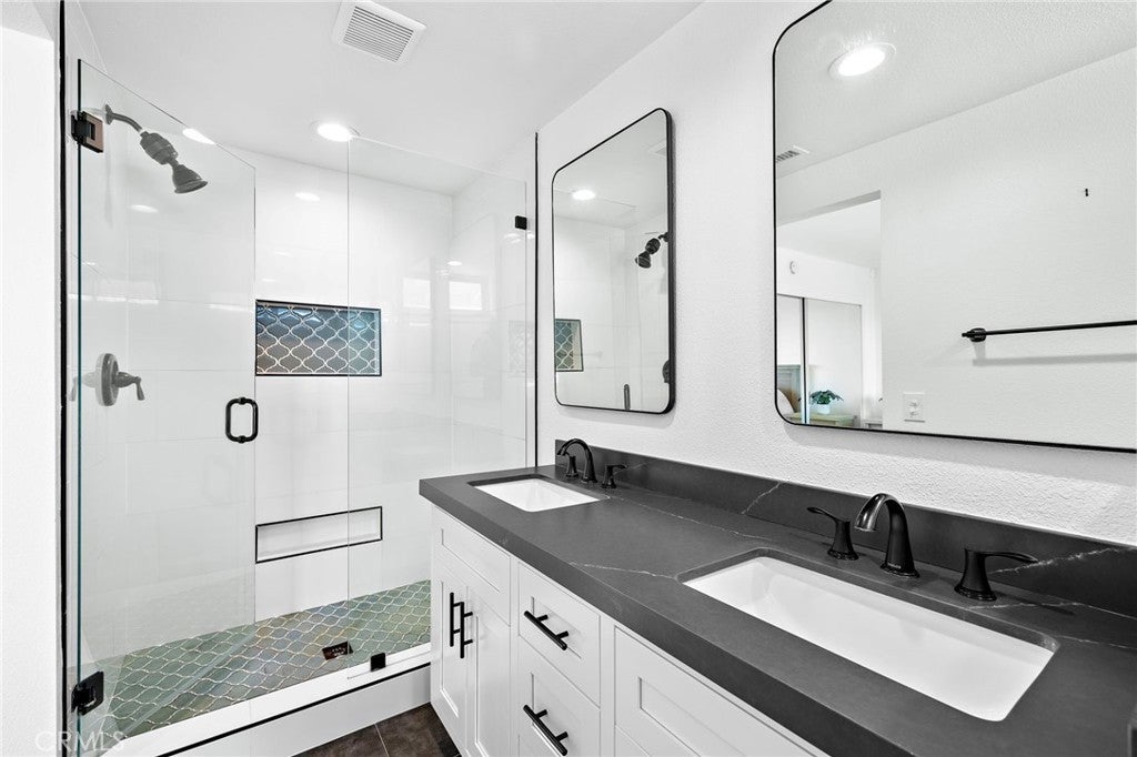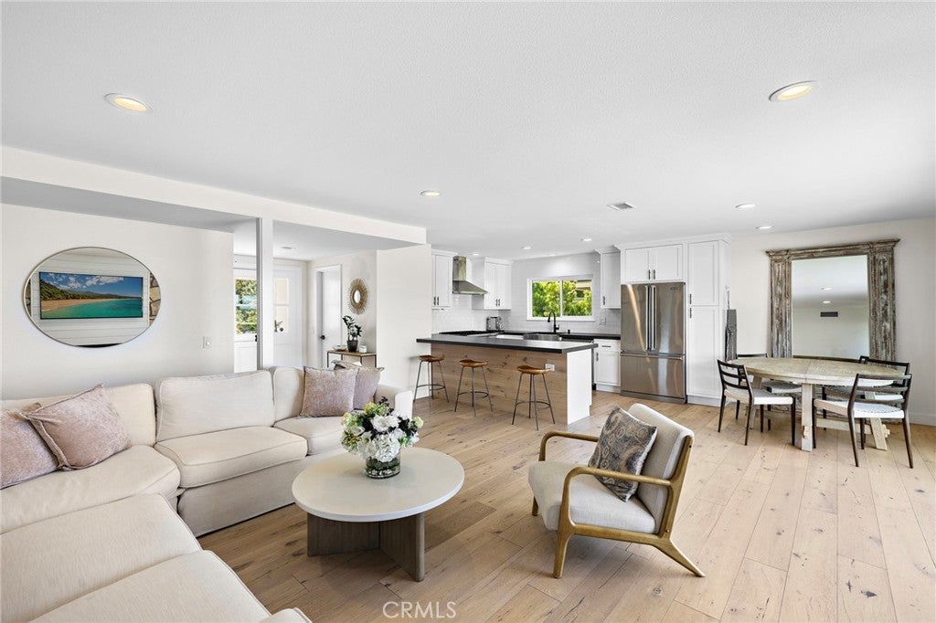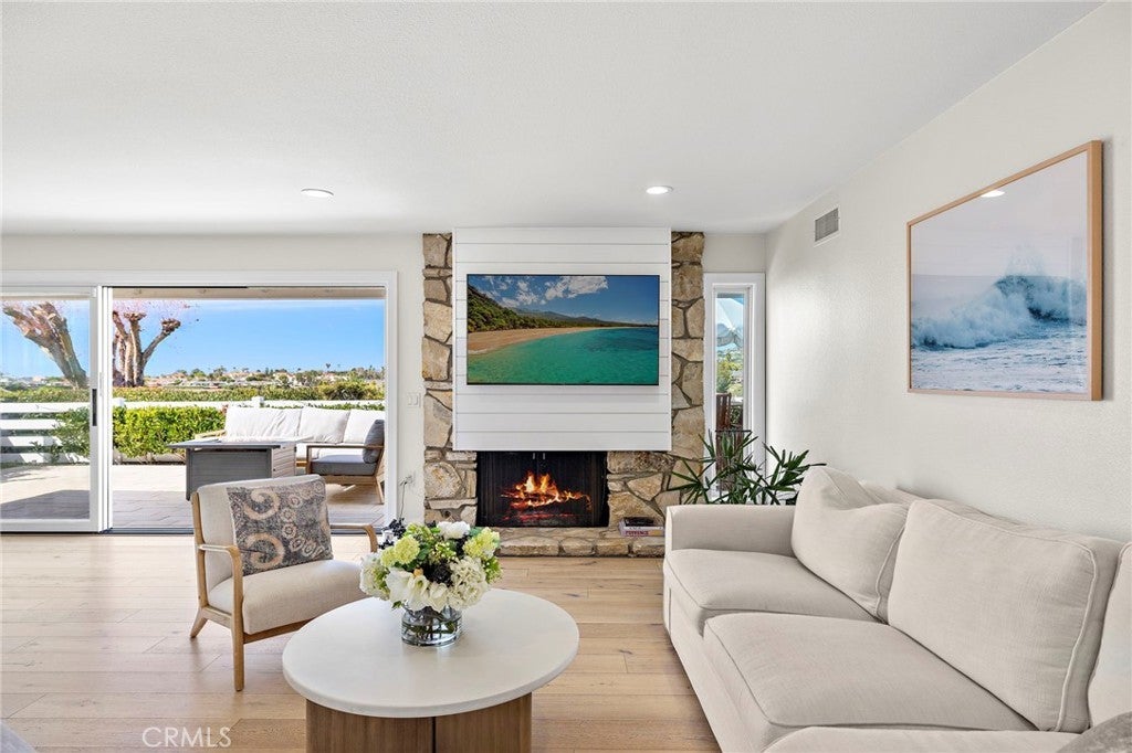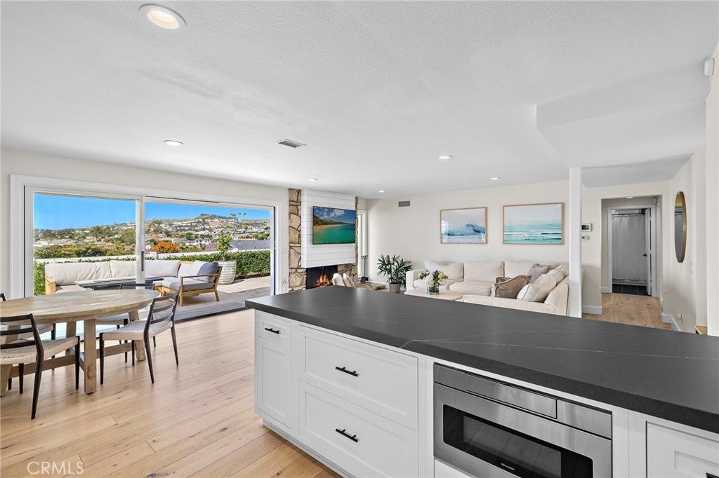 Situated on a quiet single-loaded street in the highly sought-after Shorecliffs community, this recently remodeled single-level coastal residence showcases sweeping hill and ocean views. Thoughtfully reimagined with meticulous attention to detail, this 3-bedroom home plus dedicated office offers 2 beautifully appointed bathrooms within a bright, open-concept floor plan. Wide-plank white oak hardwood flooring flows seamlessly throughout, creating a cohesive and refined aesthetic. The expansive main living area is anchored by a gas fireplace and transitions effortlessly into the eat-in chef’s kitchen. Designed for both style and function, the kitchen features premium Viking appliances, soapstone countertops, a microwave drawer, and white soft-close shaker cabinetry. Synchro sliding doors invite seamless indoor-outdoor living, opening to a private backyard retreat. Enjoy breathtaking ocean and Catalina sunsets from the newly constructed view deck, complete with a fire pit—an ideal setting for entertaining or quiet evenings at home. Additional enhancements include recessed lighting throughout, fresh interior paint, fully remodeled bathrooms, new dual-pane windows, new closet doors, a custom front entry door, new garage door, and a new furnace. Residents of Shorecliffs enjoy exclusive access to the private Beach Club, offering direct beach access, recreational equipment, WiFi, barbecues, and two sport courts. Move-in ready and ideally located just moments from the sand, this exceptional coastal Craftsman embodies effortless Southern California living.