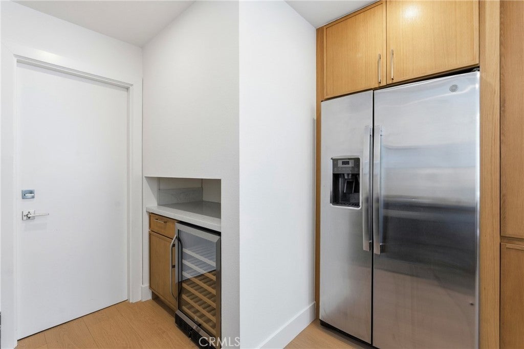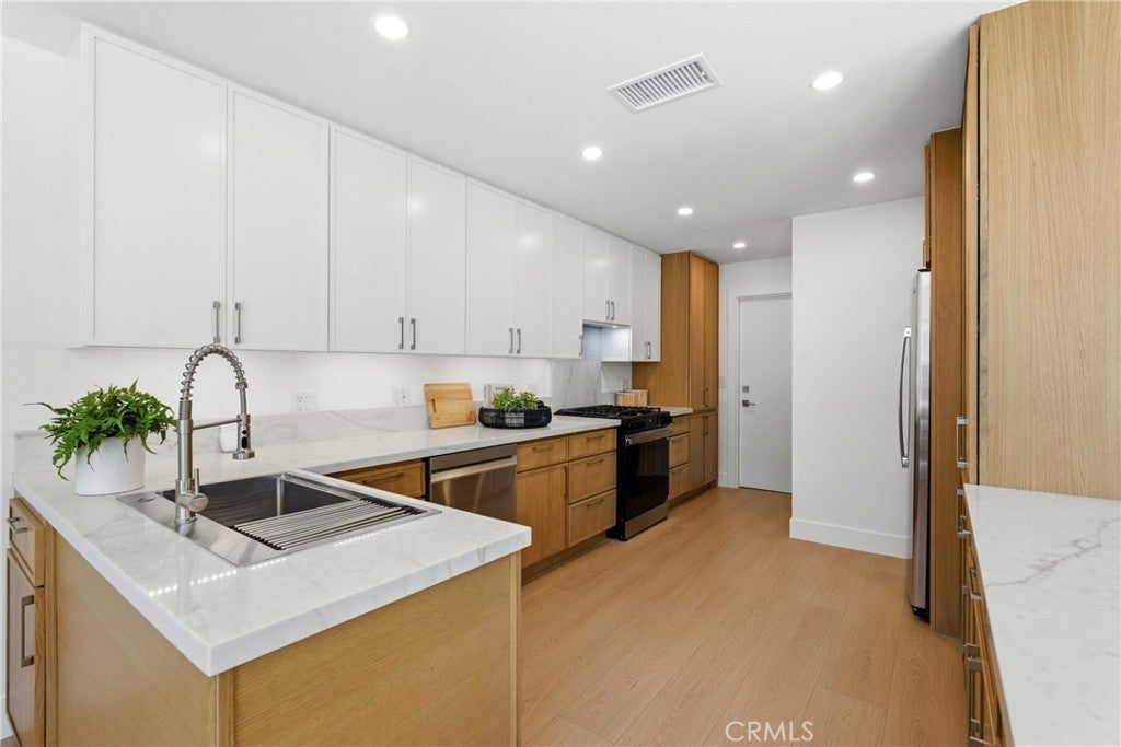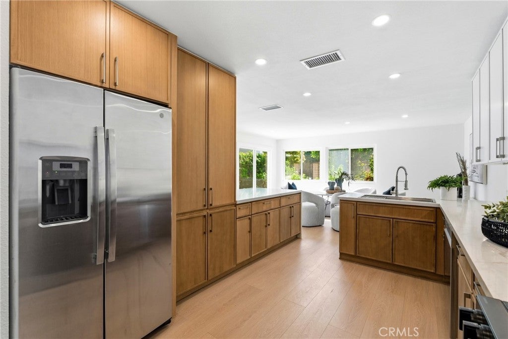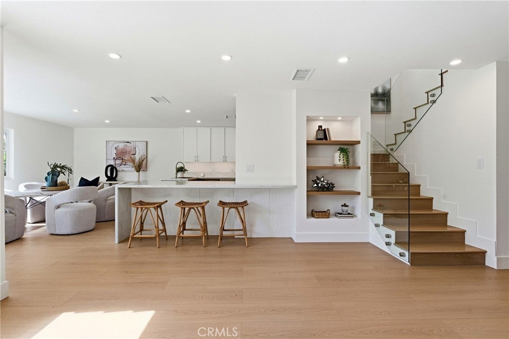 Luxury Fully Renovated Modern Residence | Designer Finishes | Smart Home Upgrades Completely reimagined and fully renovated, this stunning home offers modern design, high-end finishes, and a bright open-concept layout perfect for today’s lifestyle. The redesigned floor plan features an expanded foyer with a new 42-inch front door, new laminate flooring throughout, fresh interior paint, and recessed lighting that fills the home with natural warmth. The designer kitchen is the centerpiece of the home, showcasing brand-new custom cabinetry, elegant quartz countertops, a statement waterfall island, integrated wine fridge, high-performance insert range hood, and Samsung Smart appliances including a 5-burner gas range and dishwasher. The kitchen flows seamlessly into the living area featuring built-in display shelving and a beautifully remodeled fireplace, ideal for entertaining. A modern glass staircase railing adds a striking architectural touch, while the upstairs features fully renovated bathrooms with new windows, custom glass shower doors, LED anti-fog mirrors, and designer finishes. The primary suite is enhanced with a new sliding door for added light and comfort. Additional upgrades include new interior doors, glass closet doors, brand-new high-efficiency AC, and a smart garage door opener. Outside, enjoy enhanced curb appeal with fresh exterior paint, modern lighting, a tiled entry pathway, contemporary aluminum slatted gate, updated balcony rails, refreshed landscaping with smart irrigation, and professionally power-washed roof, driveway, and backyard. The garage has also been upgraded with new drywall and paint. A rare turnkey opportunity offering luxury, style, and modern convenience — move-in ready with no detail overlooked.