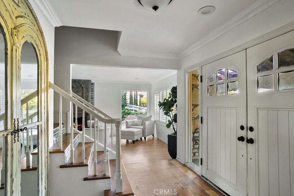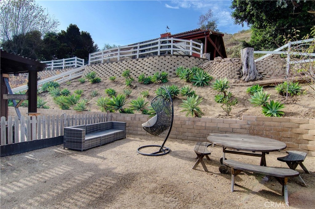 Welcome to your dream equestrian estate in Orange Park Acres! This beautifully remodeled 5-bedroom, 2.5-bath home sits at the end of a private road, offering peace, privacy, and breathtaking views. A spacious gated driveway leads you to the inviting covered front porch, expansive back patio, and the incredible equestrian grounds. Inside, the first floor showcases refinished hardwood floors and a layout designed for entertaining. The formal living room with fireplace, elegant dining room, and large family room with a second fireplace open seamlessly to the gourmet kitchen, featuring espresso shaker cabinetry, quartz countertops, and top-of-the-line stainless steel appliances. A versatile bedroom (perfect as an office) and a powder room complete the main level. Upstairs, the luxurious primary suite invites relaxation with its oversized spa-like bath, dual vanities, jetted tub, and walk-in shower. Three additional bedrooms and an upgraded bathroom provide comfort and space for family or guests. Outdoors, enjoy multiple areas to relax and entertain, including a gazebo perched high above the property with sweeping city light views. For the equestrian enthusiast, the estate is unmatched: a barn with three in/out stalls, breezeway, tack room, wash rack, stable quarters, and a lighted arena—all with direct access to miles of riding trails. Centrally located, you’ll have quick access to the 261, 55, 5, 91, and 405 freeways, just 15–20 minutes from Newport Beach, 10 minutes from John Wayne Airport, and under an hour to Los Angeles. All within a highly desirable community known for its excellent schools and safety. This one-of-a-kind property blends luxury living with equestrian excellence—truly a horse lover’s dream.