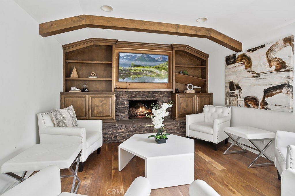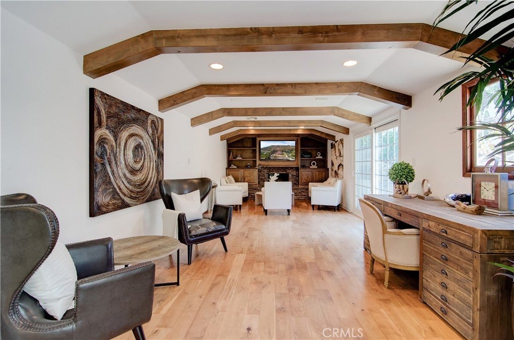 - Interior FeaturesBeamed Ceilings, Breakfast Bar, Built-in Features, Separate/Formal Dining Room, Open Floorplan, Quartz Counters, Recessed Lighting, Bedroom on Main Level