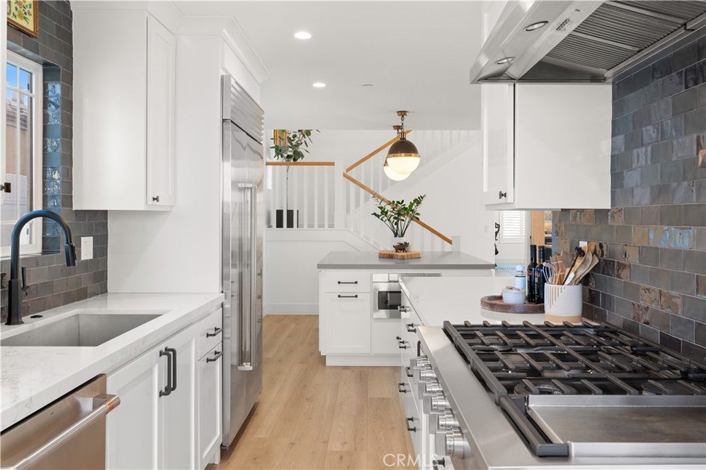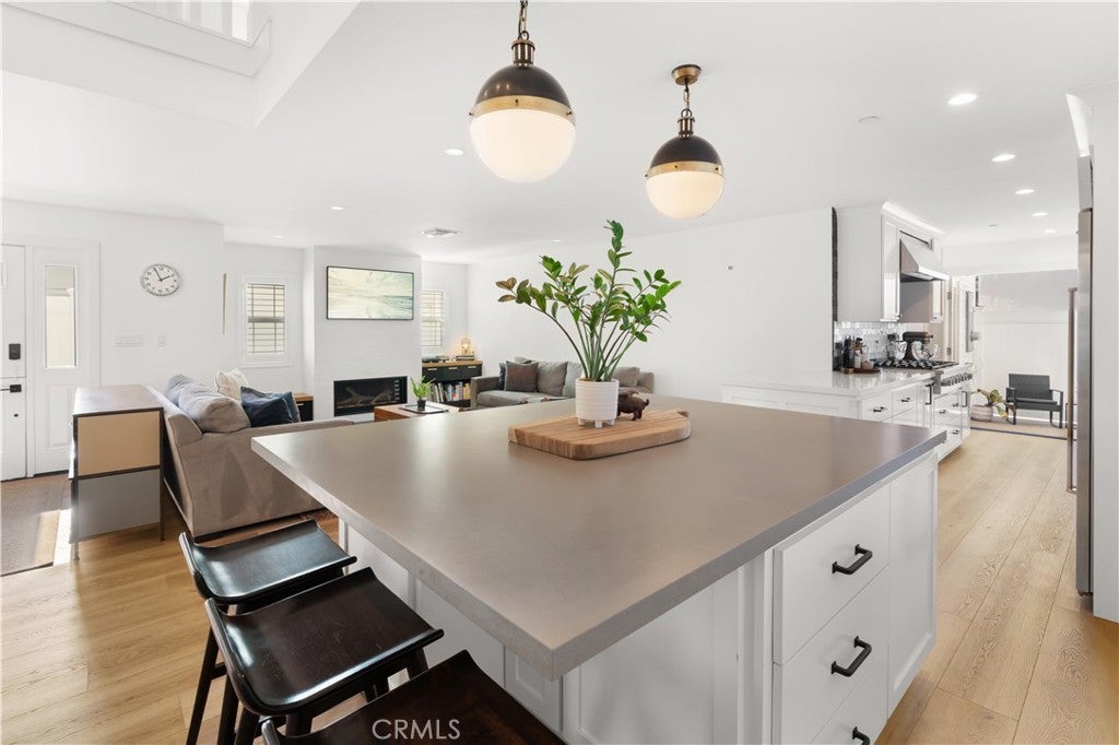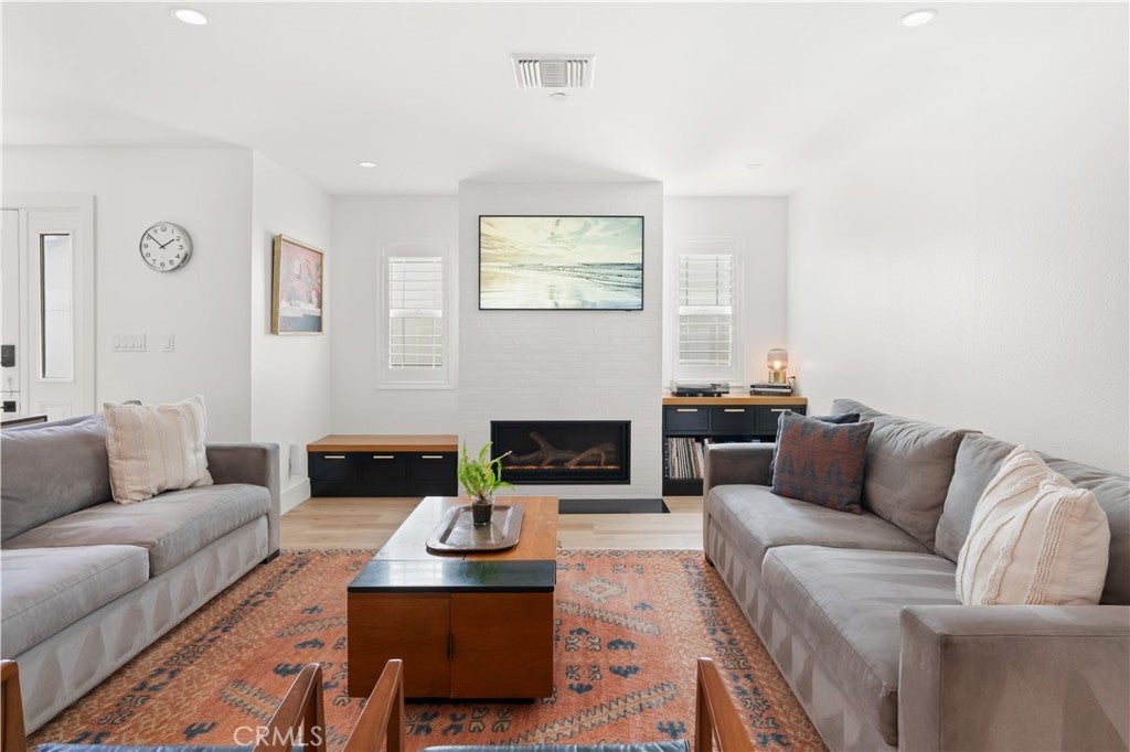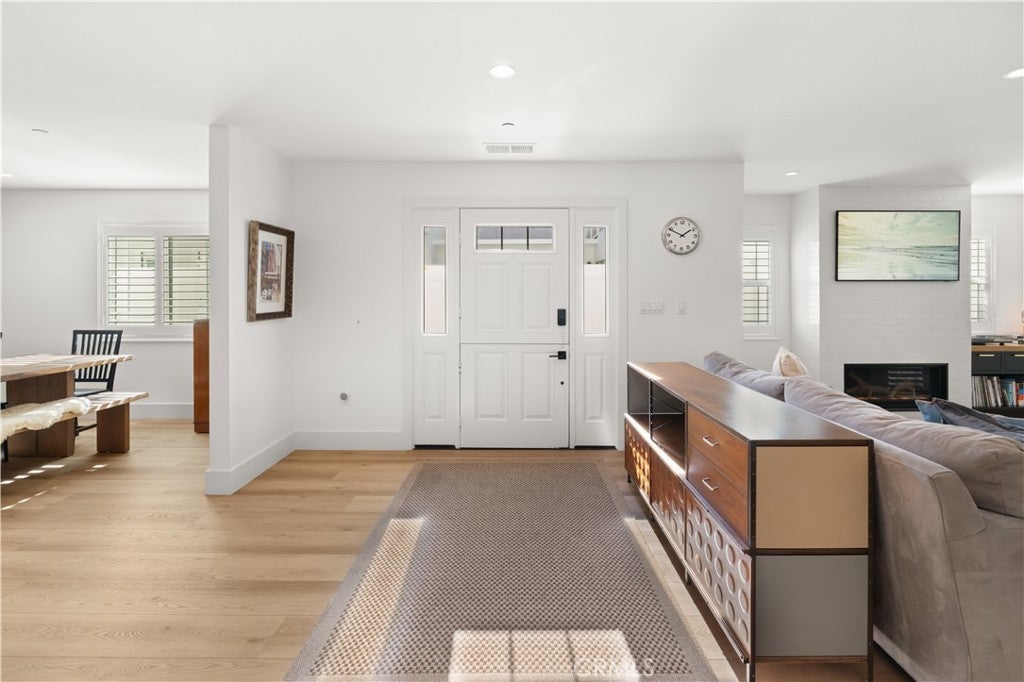 Thoughtfully reimagined with refined coastal living in mind, every inch of this expansive beachside retreat exudes quality, comfort, and sophistication. This stunning four-bedroom, four-bath renovated and expanded residence is located just two blocks from one of Newport Beach’s most sought-after stretches of sand, and moments from acclaimed restaurants, boutique shops, and award-winning schools. The main level welcomes you with wide-plank flooring, dramatic soaring ceilings, and an airy open-concept layout. Elevated by high-end hardware and designer finishes throughout, the home reflects a commitment to craftsmanship at every turn. At the heart of the home lies a remarkable chef’s kitchen, featuring custom cabinetry, sleek quartz countertops, premium high-end appliances, and professional-grade stainless steel appliances—seamlessly flowing into the generous living and dining areas, complete with built-ins, designer lighting, and a cozy fireplace. Also on the main level is a spacious bedroom with a tastefully remodeled en-suite bath, a versatile bonus room ideal for a home office or gym, a second updated full bath, and abundant storage throughout. Upstairs, the primary suite is a true sanctuary with its own private deck, a spa-inspired en-suite bath with jetted tub and dual vanities, and a large walk-in closet. Step out to the rooftop deck for panoramic coastal views and refreshing ocean breezes. Two additional upstairs bedrooms feature custom closets, vaulted ceilings, and upscale lighting, accompanied by a flexible bonus space perfect for a media room, teen lounge, or secondary office, with direct access to another spacious outdoor deck. Beyond its aesthetic appeal, the home is equipped with advanced infrastructure for modern living, including an enterprise-level WiFi system with integrated security, an active water monitoring system with leak detection, a tankless water heater, and fully upgraded plumbing and electrical systems. Additional highlights include a dedicated upstairs laundry room, central air conditioning, an outdoor shower, and a finished two-car garage with added storage. As a resident of the highly desirable Newport Shores community, you’ll enjoy resort-style amenities including a community pool, tennis and pickleball courts, volleyball, basketball, playground, and BBQ area—all just moments from the beach. This is coastal California living at its finest.