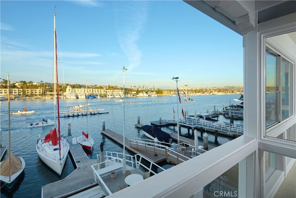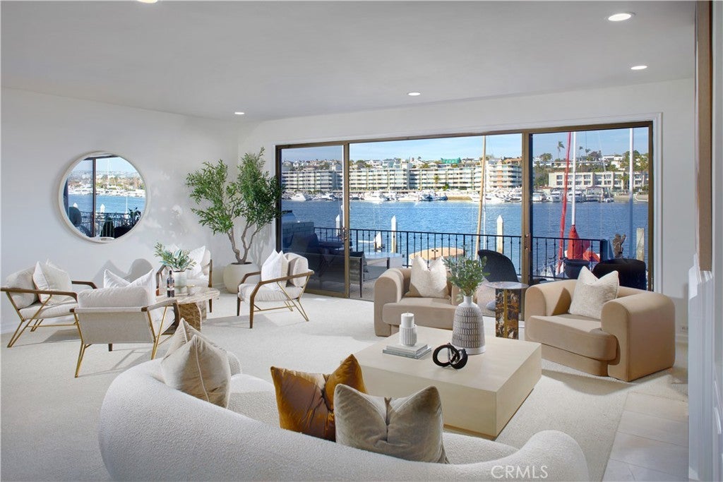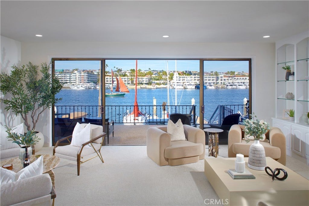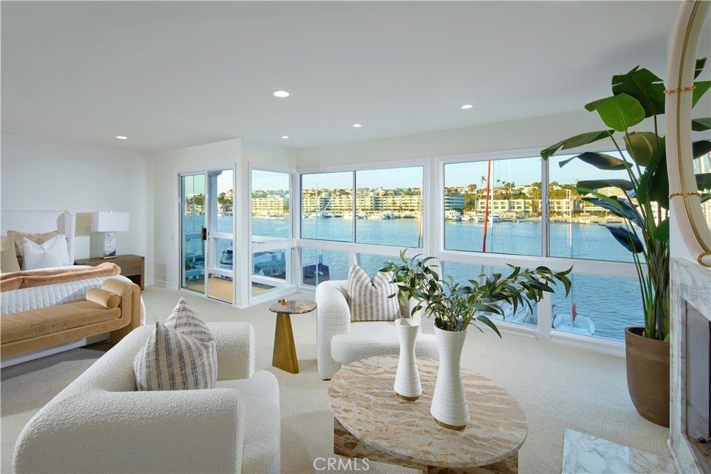 Panoramic views across the sparkling Lido Channel set the tone for this pristine waterfront residence, encompassing approximately 2,956 square feet and presenting a chic, transitional aesthetic suited for relaxed bayfront living. Light-filled interiors unfold across four bedrooms and three-and-one-half bathrooms, highlighted by a main level featuring a fireplace, sweeping staircase with wrought-iron railing, custom built-in shelving flanking the fireplace, and sliding glass doors that frame the ever-changing water views beyond. Stretching across the full 30-foot width of the property, an expansive deck invites effortless indoor–outdoor living and lively waterfront gatherings, flowing seamlessly to a private dock with additional seating space and room for your boat. White cabinetry, a built-in cooktop with range hood, quartz countertops, and top-of-the-line appliances define the well-appointed kitchen, complemented by a tray ceiling with recessed lighting and an inviting breakfast nook. A main-level bedroom with en-suite bath provides convenience and flexibility for guests or multi-generational living. Three bedrooms occupy the second level, including one currently configured as a bonus room with French doors opening to a private balcony. Retreat-like comfort defines the primary suite, where a fireplace, oversized windows, and sliding glass doors lead to a private balcony with far-reaching channel views. Spa-inspired design continues in the primary bath with dual sinks, built-in seating, a soaking tub, and a walk-in shower. Additional highlights include a dedicated upstairs laundry room, fresh interior paint, new carpet, and a two-car attached garage. Located on beloved Lido Isle, residents enjoy access to the community clubhouse, tennis courts, dog park, and exclusive yacht club opportunities—creating a truly special coastal lifestyle.