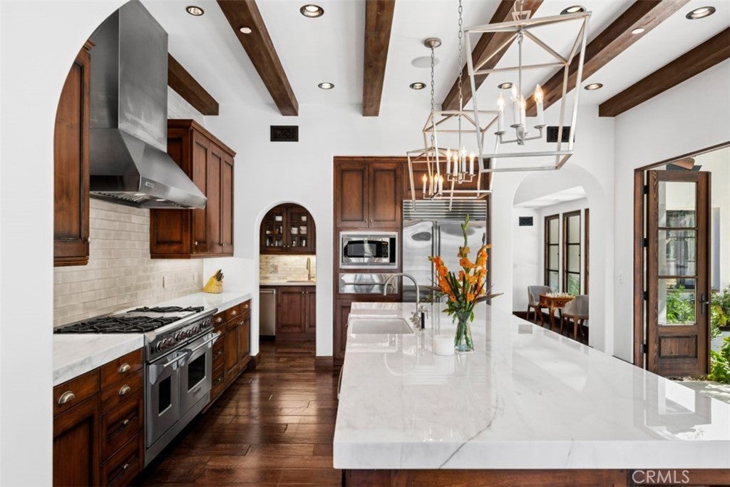 - AppliancesSixBurnerStove, Barbecue, Double Oven, Dishwasher, Freezer, Gas Oven, Gas Range, Microwave, Refrigerator, Warming Drawer