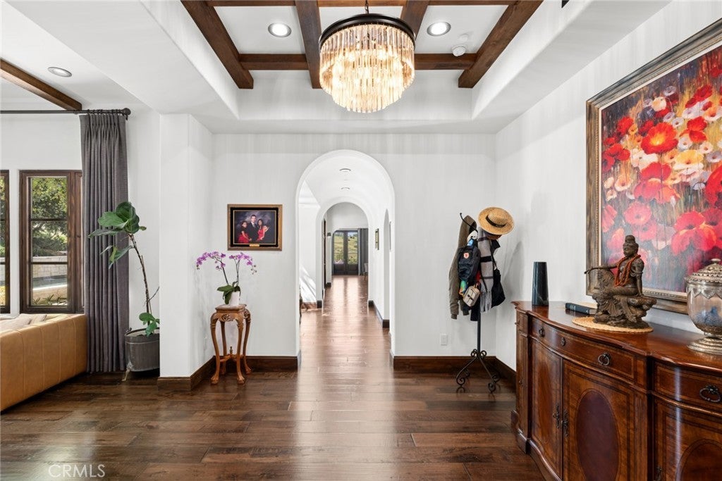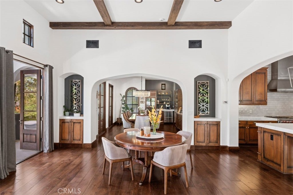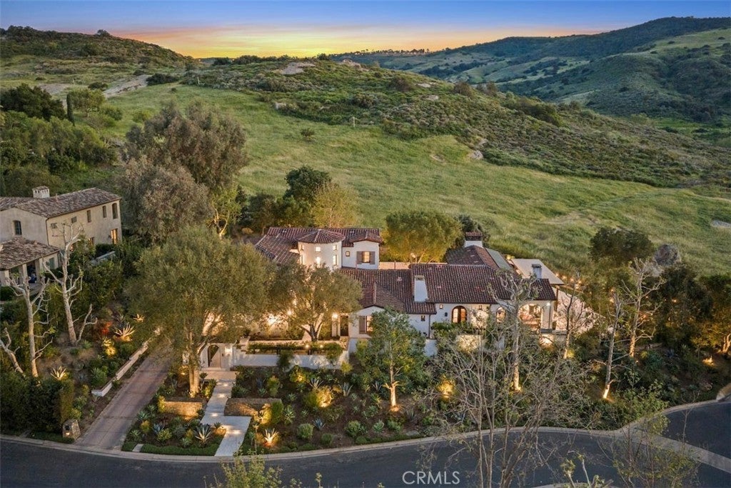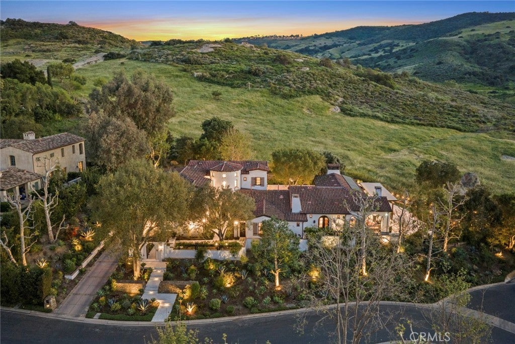 This remarkable custom residence occupies a rare location within the acclaimed guard-gated Shady Canyon enclave where the setting shifts- and architecture gives way to pristine land and uninterrupted views that invoke Tuscany. Here, the boundary between home and landscape softens entirely, and the rear grounds seem to extend indefinitely into rolling hills, with native grasses and canyon vistas creating a sense of space. Reimagined with a second level addition adding a new suite of bedrooms including a luxurious primary suite, this classical Santa Barbara style home is both warm and deliberate in its simplicity. White stucco walls, exposed wood beams, and beautiful finishes establish a quiet palette, while a series of openings via French doors dissolve the line between indoors and out. The kitchen and family room unfold as one continuous space, oriented entirely toward the rear terrace and views beyond, and the modern pool and spa, allowing daily life to move fluidly between interiors and the outdoors. A private entry courtyard introduces the home with a sense of intimacy as the layout unfolds offering six bedrooms and six-and-two-half baths. On the main level, two bedroom en suites and a detached casita offer quiet refuge- and an additional flex space is perfect for a dedicated gym. Upstairs offers an ideal configuration with a primary bedroom suite with office space and two additional secondary bedroom en suites. Outdoors, the design embraces the atmosphere. A large pool and spa sit low against the horizon, while barbecue, dining, fire pit and lounge areas offer resort style living, set beneath a pergola and open sky showcasing the breathtaking views reminiscent of Tuscany. As the light shifts, the property takes on a cinematic quality, with colorful sunsets setting the surrounding hillsides aglow at dusk. Shady Canyon, known for its world-class amenities, including swimming, pickleball, tennis, playground, clubhouse, hiking and biking trails, and 24/7 guard-gated access, is in close proximity to excellent schools, UCI, John Wayne Airport, and famed shopping and dining experiences.