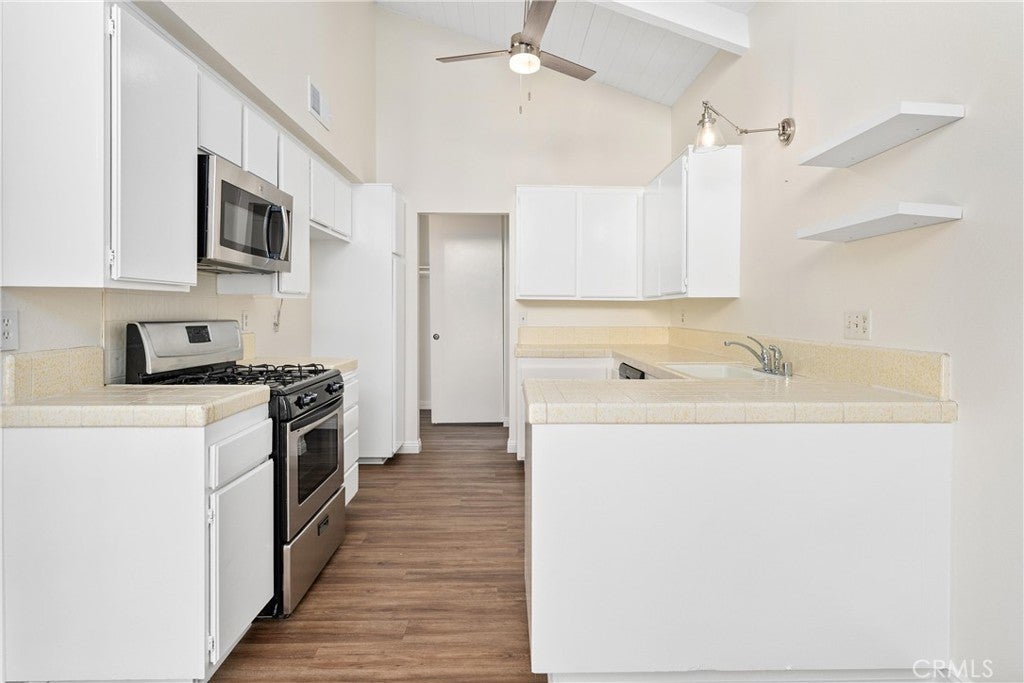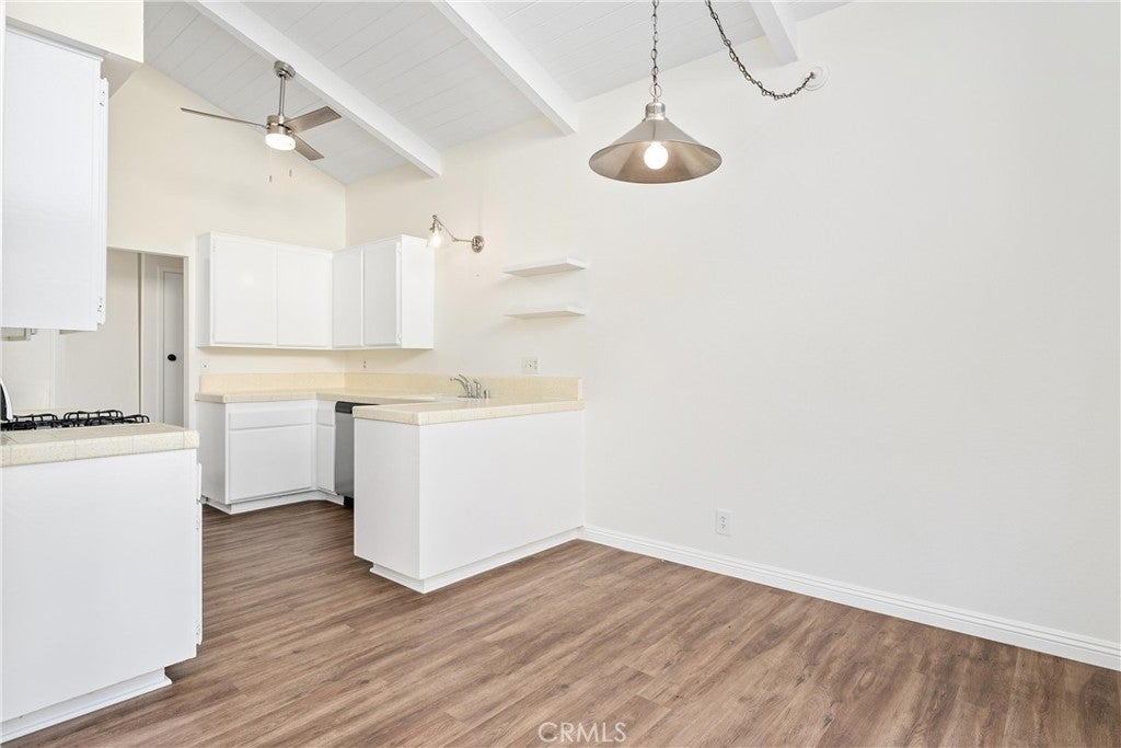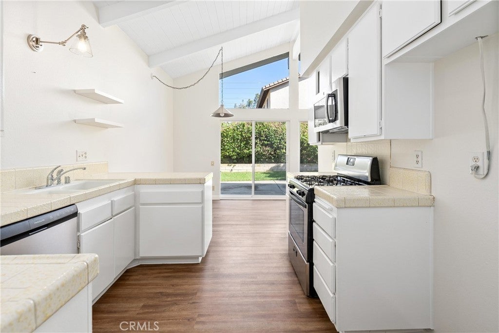 Nestled on a serene cul-de-sac in the highly sought after community of Deerfield, 14 Rock Springs, Irvine is a single-level Mid Century Modern gem just waiting for its next lucky resident. Featuring 3 bedrooms and 2 bathrooms across 1,350 square feet, this home offers a perfect blend of features, architectural character, and location. After meandering through the charming front courtyard, an open-concept floor plan welcomes all who enter with soaring vaulted ceilings in the Great Room that feature beams and tongue-and-groove ceilings, enhancing the Mid Century Modern aesthetic. The Family Room boasts a cozy fireplace, an open concept floor plan that opens to the Dining Room and Kitchen, and three sliders that lead to the backyard, seamlessly connecting indoor and outdoor living spaces. The home is bathed in natural light and exudes a modern aesthetic with newer LVP flooring and fresh crisp white paint throughout. The entertainer's backyard is spacious and private, featuring a grassy area, large patio, and mature fruit trees. The Kitchen is truly the heart of the home and features the same soaring ceilings, as well as stylish open shelving, plenty of cabinet and counter space, and stainless steel appliances. The primary suite is a true retreat with a large ensuite bath and a walk-in closet, providing a private haven within the home. Two additional bedrooms, including one that can conveniently be used as an office, a hall bathroom, and a 2 car garage with attic storage + private driveway complete the home. Located within the award-winning Irvine school district, this home is within walking distance to neighborhood amenities, including a junior olympic-sized pool, spa, playground, walking paths, and greenbelts that lead to Deerfield Elementary, Venado Middle School, and Deerfield Park, which includes tennis courts, volleyball courts, and a large lawn. The home is also conveniently located adjacent to Culver Plaza and Crossroads Shopping Center, providing easy access to shopping and dining options. With quick access to freeways, The Great Park, and Irvine Spectrum, this home offers easy living with refined style and convenience. Call to book a tour today!