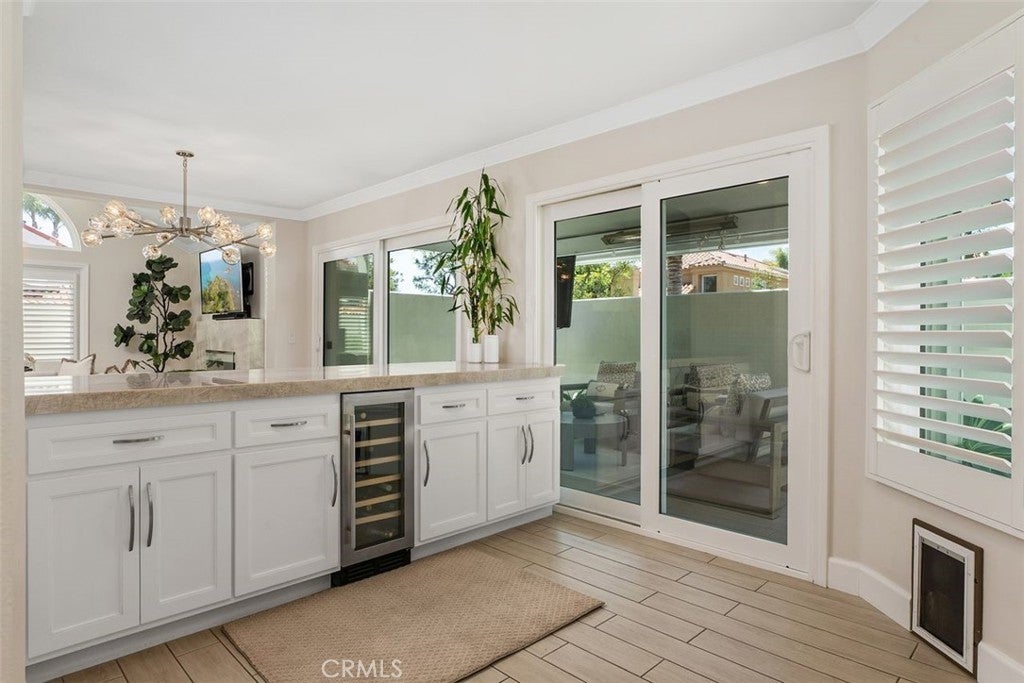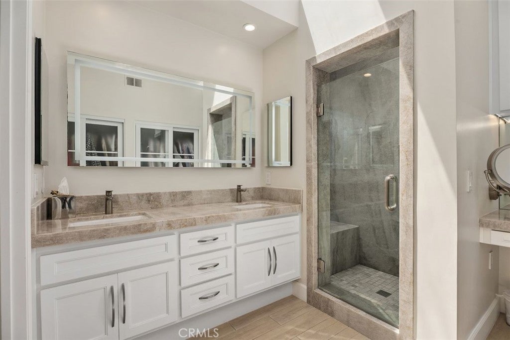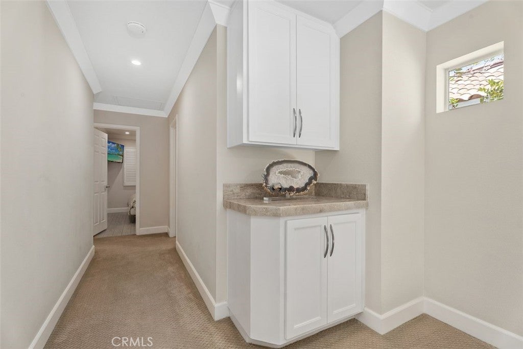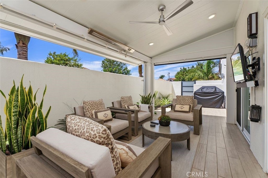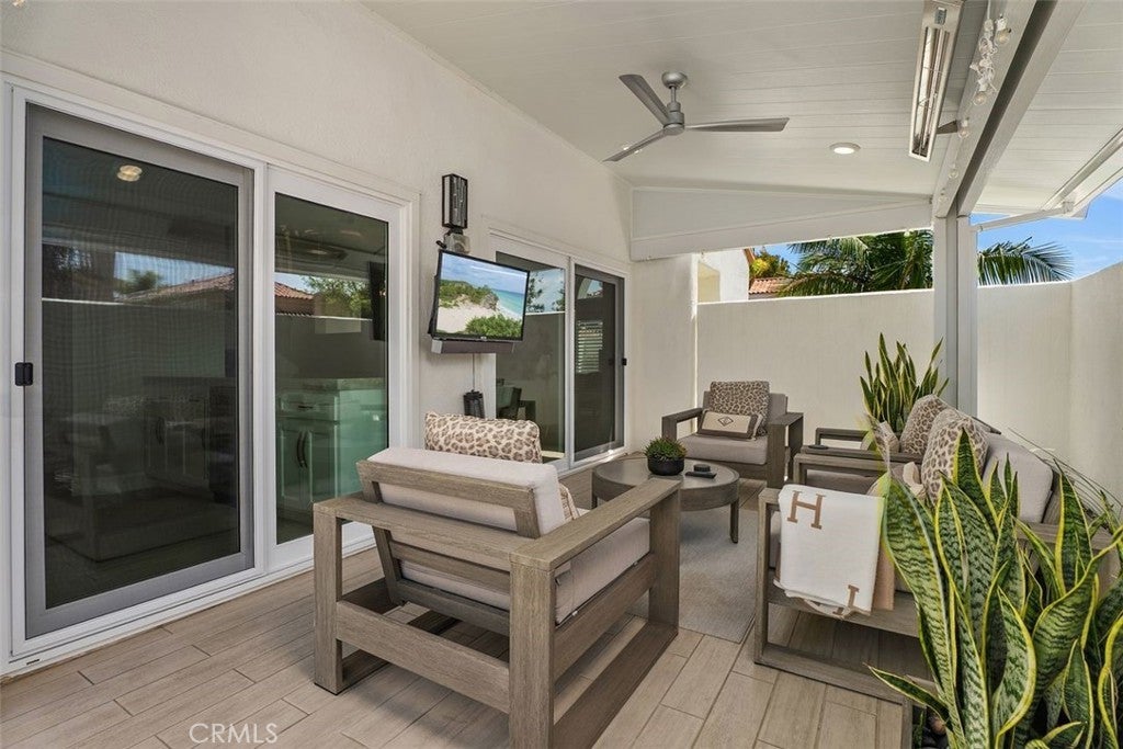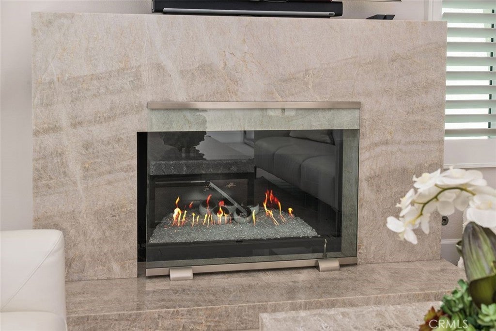 Completely remodeled and turnkey, this 3-bedroom, 2.5-bathroom, 1,601 sq. ft. home is located in the private gated community of Bayview Terrace. Set within a private compound, the residence features custom paint, molding, floorboards, triple-pane windows, wood shutters, LED lighting, porcelain tile flooring throughout, and a Quartzite stone fireplace. The gourmet kitchen includes stainless steel appliances, premium finishes, and a layout suitable for entertaining. The primary suite features new window shutters and LED lighting. The spa-inspired primary bath includes Quartzite counters, a full Quartzite slab shower with bench, Toto toilet, porcelain tile, built-in vanity with lighting, custom closet doors, and a cabinet above the vanity. Secondary bedrooms include new windows, wood shutters, mirrored closet doors, and porcelain tile flooring. One bedroom has a chandelier and custom closet drawer setup; the other offers updated finishes and natural light. Additional features include hidden under-stair storage, internet readiness, newer water heater, custom landscaping, and an outdoor area with porcelain hardscaping that matches the interior and an outdoor TV. The two-car garage features epoxy floors, cabinets, and a new garage door opener. Community amenities include a pool, spa, and tennis courts. The home is located near Fashion Island, beaches, scenic trails, and top-rated schools.