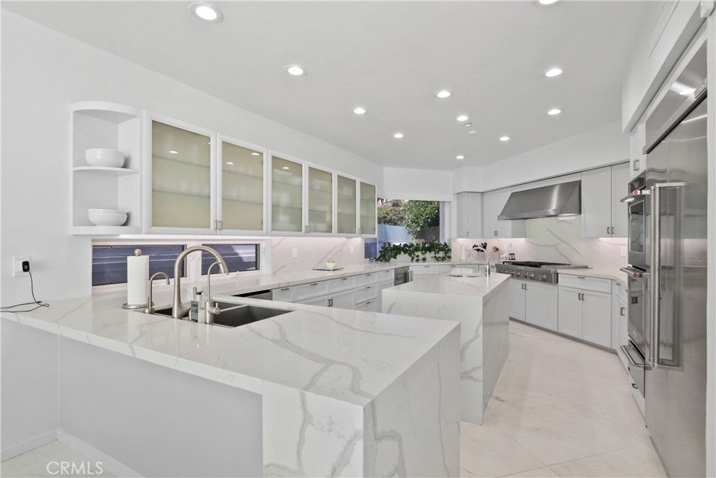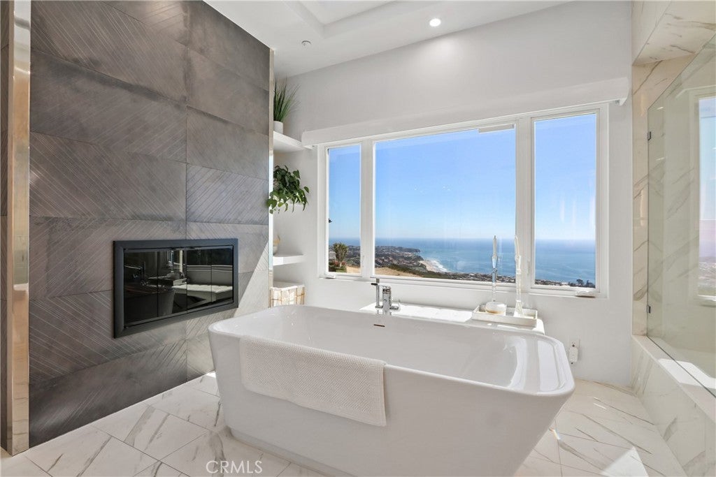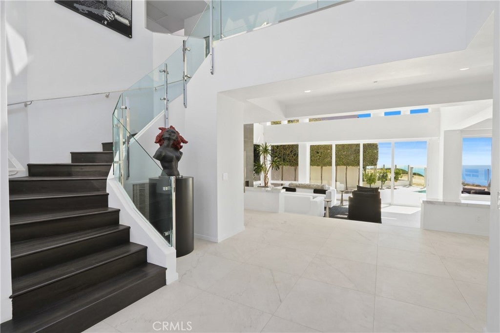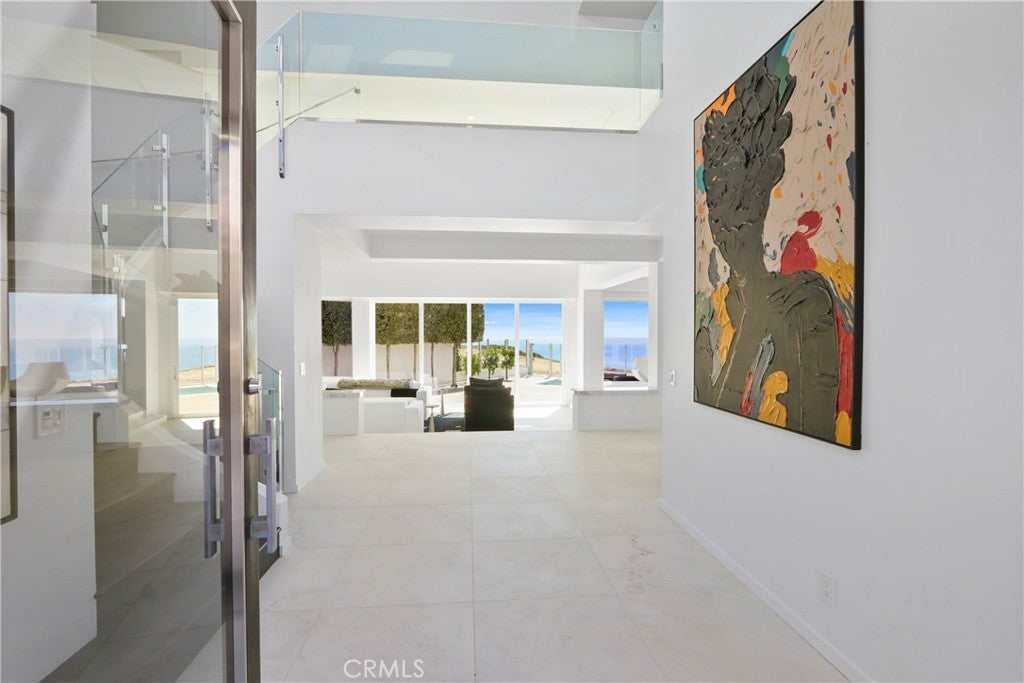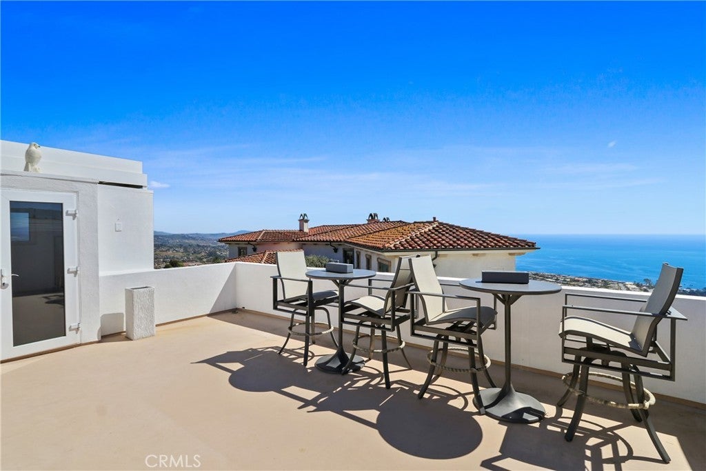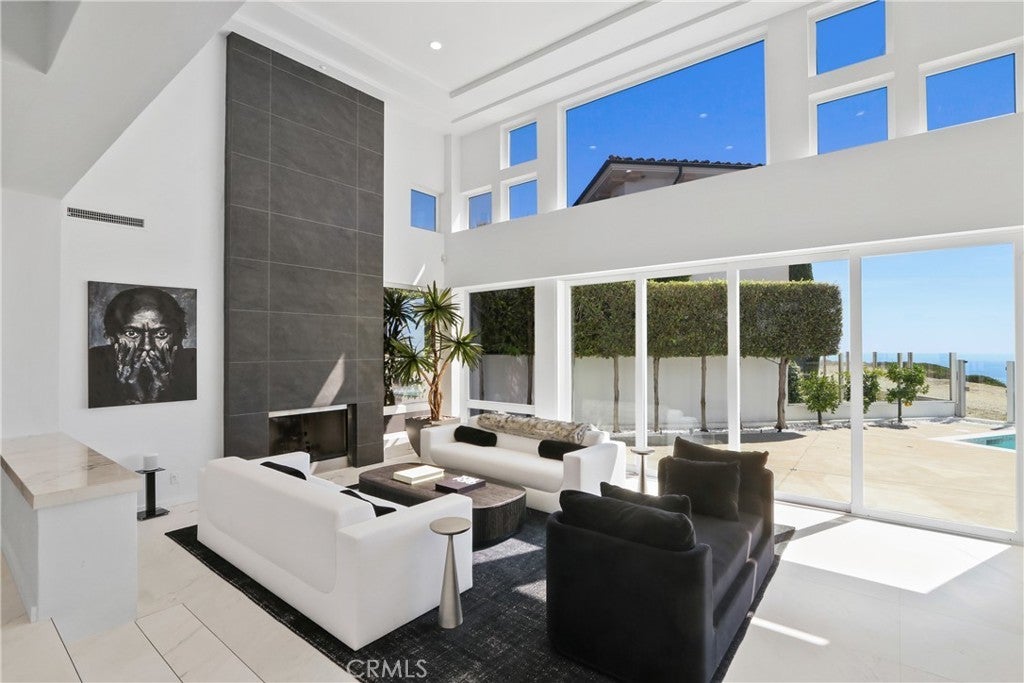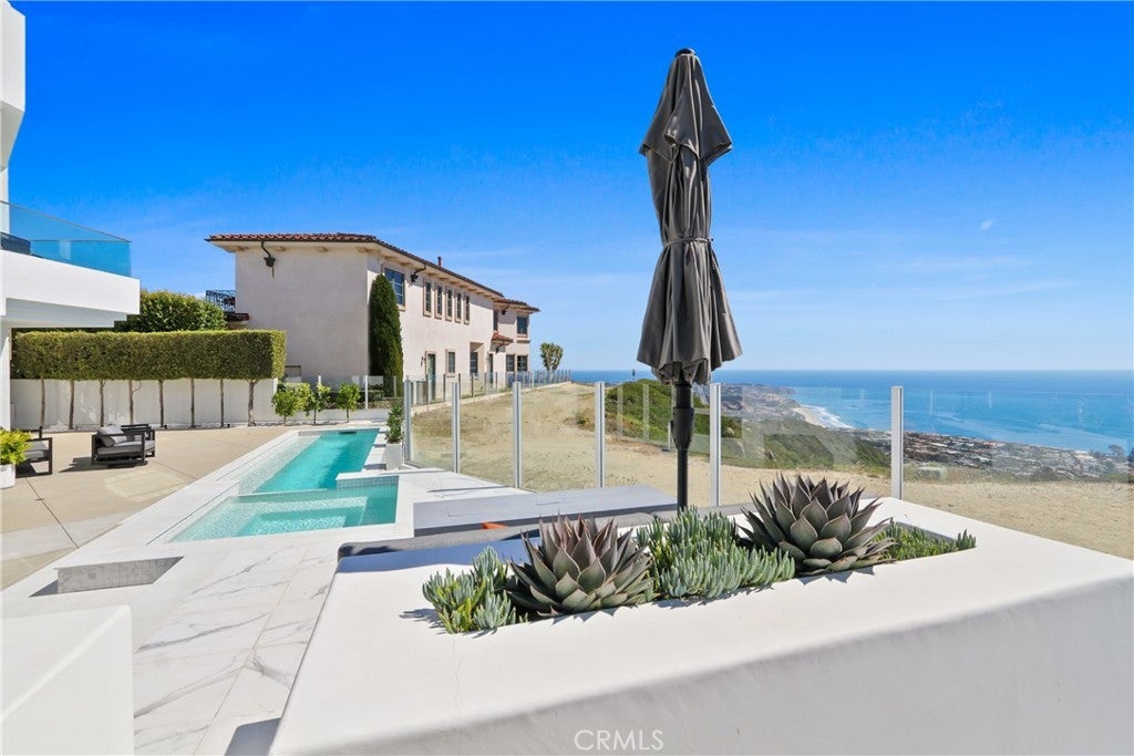 Monarch Point's exclusive guard gated community with amazing ocean views. Premier bluff top location on this custom contemporary estate located at end of cud de sac, custom gated driveway, beautiful glass entry door leads to foyer with incredible retractable skylight. Cathedral two-story ceiling living room with custom stone fireplace, floor to ceiling windows, custom sliding doors that open to amazing views. Custom finishes including granite and marble providing pure luxury to the sweeping panoramic ocean views. Features five suites and five bathrooms, spacious family room, custom piano room, gourmet kitchen with stone counters and custom cabinets, guest room located on main floor, primary suite with fireplace and lay down ocean views, along with custom sliding doors, primary bathroom is amazing with double custom spacious walk-in closets, private roof top deck located on third floor with jaw dropping views. Incredible backyard with inviting pool and spa, built-in BBQ and more, absolute luxurious yard with panoramic ocean and city views of the Dana Point coastline and beaches.