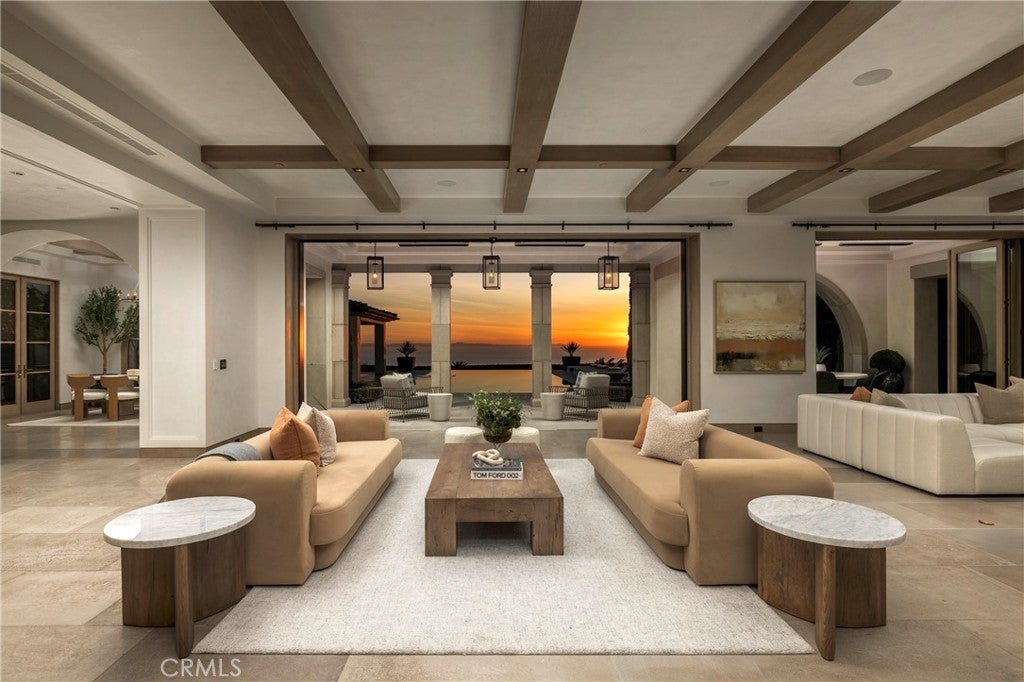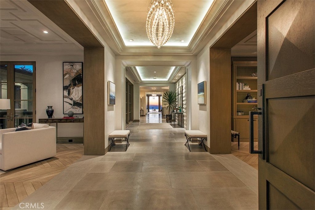 Spectacular sweeping coastal vistas from San Clemente Island to the Palos Verdes Peninsula are featured throughout this impeccable Crystal Cove custom residence, creating a constantly evolving backdrop that elevates every space within the home. Blending Northern Italian architecture with a refined transitional interior style, this estate spans approximately 12,500 square feet of inviting indoor living space on a generous and flat parcel of nearly one half acre, with an additional 1,300 sf of covered outdoor living space. Thoughtfully designed for both grand-scale entertaining and intimate everyday living, in addition to an oversized great room adjacent to the open-concept chef's kitchen and sequestered "dirty kitchen", the residence offers a formal living room, dining room, office/library, six luxurious bedroom suites, seven full baths, two powder rooms, a full-service bar and lounge with temperature-controlled wine cellar and dramatic glass wall display, private theater, game room, two laundry rooms, open-air atrium, subterranean garage for 8 vehicles, and an elevator servicing all three levels. Stepping outside, the experience rivals that of a five-star resort, with a custom 360-degree infinity-edge pool and spa just steps away from a cabana with fireplace, a large grassy yard, and a bluff-side fire pit -- all set against the endless Pacific.