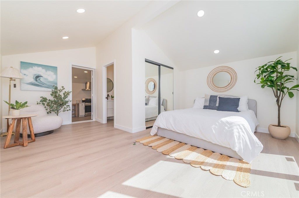 - Interior FeaturesBeamed Ceilings, Living Room Deck Attached, Open Floorplan, Recessed Lighting, Bedroom on Main Level, Main Level Primary, Multiple Primary Suites