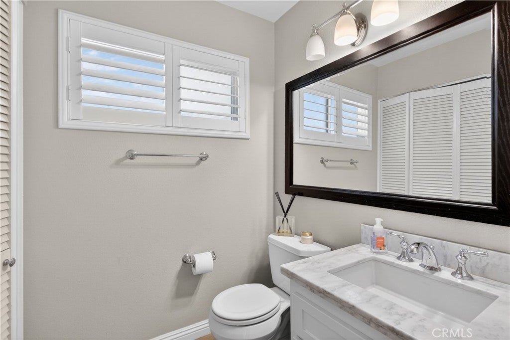 Welcome to this sophisticated 3-bedroom, 2.5-bathroom home which seamlessly blends timeless design with modern comfort, offering an elevated living experience in one of the area’s most desirable communities. The open-concept floor plan showcases thoughtfully curated finishes and effortless flow. The kitchen is appointed with crisp white cabinetry, stone countertops, premium stainless steel appliances, and a breakfast bar—perfect for both casual mornings and refined entertaining. The adjoining dining area transitions gracefully into the inviting living room, where a gas fireplace creates a warm and intimate ambiance. Ascend the staircase to discover a serene upper level featuring three well-appointed bedrooms, including two with soaring vaulted ceilings. The primary suite offers a spa-inspired bath complete with dual vanities, a dedicated vanity station, a soaking tub and an expansive walk-in shower designed for relaxation and indulgence. The private outdoor patio is ideal for quiet mornings or evening gatherings. Perfectly positioned just moments from the OC Fair & Event Center, as well as vibrant dining, shopping, and entertainment. This residence offers both privacy and unparalleled convenience.