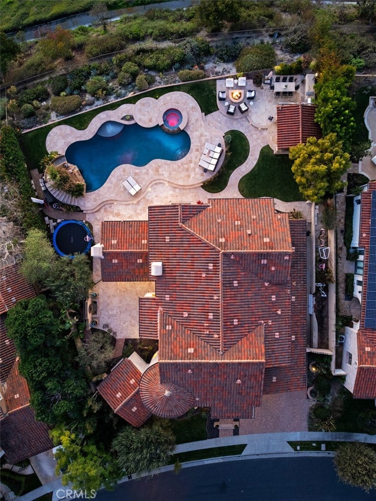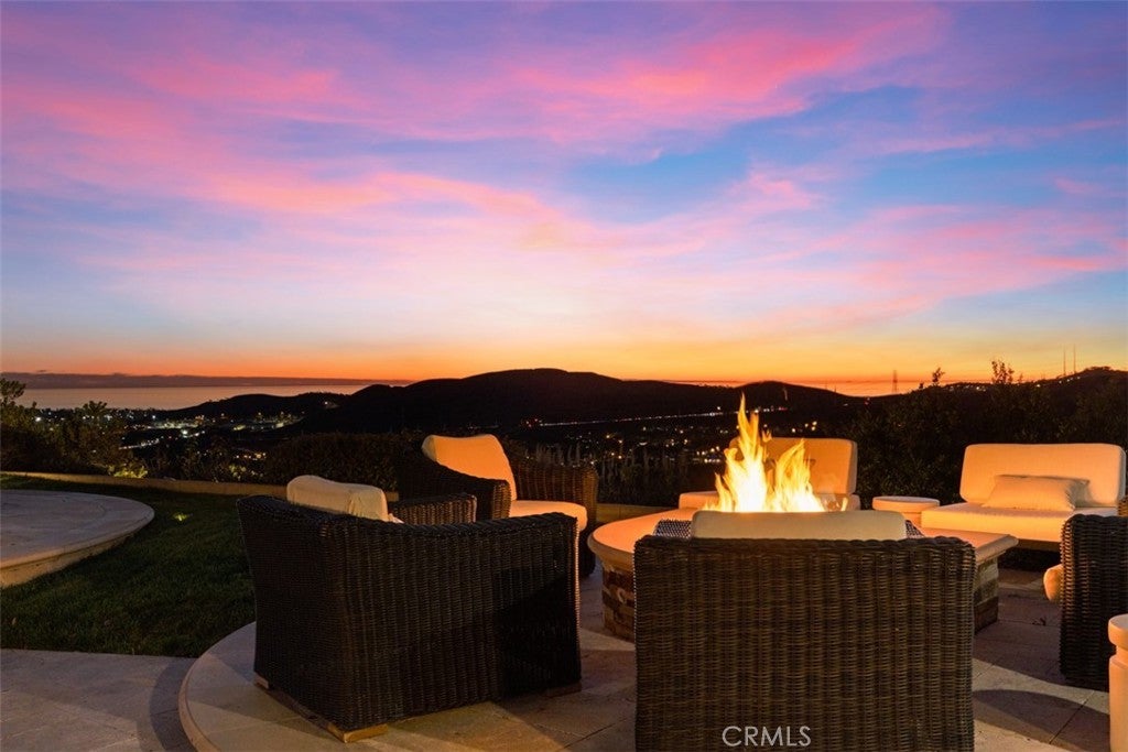 A rare masterpiece perched above the Pacific, this extraordinary estate commands unparalleled panoramic ocean, coastline, and canyon views from one of the most coveted addresses in San Clemente. Set on a private, pie-shaped lot along a premier cul-de-sac within Talega's exclusive gated Lucia enclave, with private park access and beaches just minutes away, this is a once-in-a-generation opportunity to own over 6,000 square feet of architectural grandeur where every room is a celebration of light, space, and vista. A soaring, circular foyer sets the tone, with Brazilian marble floors flowing through gracious entertaining spaces. The formal dining room is served by a temperature-controlled 1,000-bottle wine cellar and a bespoke speakeasy bar. In the great room, vaulted open-beamed ceilings and fireplace open to a reimagined gourmet kitchen featuring a dramatic 17-foot quartz island, Sub-Zero and Thermador appliances, and eat-in dining space. Expansive 15-foot LaCantina doors dissolve the boundary between indoors and out, drawing the eye across endless ocean views and a beautifully remodeled courtyard. A main-level suite with private exterior access is the perfect option for multi-generational living, a second primary suite, or luxurious guest quarters. Dual laundry rooms bring convenience to every floor. Upstairs, four bedroom suites offer private baths and custom closets. The primary suite is a sanctuary, featuring an exclusive view deck, fireplace retreat, dual walk-in closets, and a spa-like bath with floor-to-ceiling quartz rainfall shower. An office with loggia and bonus room with deck complete the upper level, accented by custom window treatments and Juliet balconies. Outside, the grounds rival a private resort. An elevated saltwater pool and spa with rock waterslide are surrounded by an expansive travertine sundeck, a fire pit with built-in dining, full outdoor kitchen, shaded cabana with smart TV, and a fenced dog run, all framed by signature panoramic views. Notable upgrades include a Ring security and alarm system, reverse osmosis kitchen filtration, and whole-home water softener. Talega's resort-caliber amenities are moments away, including 19+ miles of trails, the Swim and Athletic Club, pools, tennis, parks, and the Fred Couples-designed Talega Golf Course, with top-rated Capistrano Unified schools, beaches, and shopping all within easy reach. A true estate property where world-class views, masterful design, and an unmatched location converge.