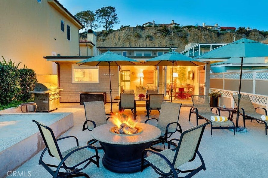 Rare oceanfront home with private beach access in the guard gated community of Beach Road in Dana Point. Panoramic ocean views from this 2,354 sq.ft. 6 bed, 4 bath home on one of the larger lots (7,841 sq.ft.) in the Beach Rd. community. Property has 39' of beachfront and over 200' of depth. Home is split into two private entrance units consisting of a 4 bed 2 bath lower with kitchen, laundry, living and bedrooms and an upper 2 bed 2 bath unit with patio that provides never-ending white water views, private kitchen, laundry, living and bedrooms. In 2007 the owners took this home down to the studs and starting over from the copper plumbing all the way to a new roof and everything in between. Just down the beach from Dana Point Harbor which is going through a grand revitalization project. Panoramic ocean views, currently holds short-term rental permits from the City of Dana Point. Live in one unit and rent the other or continue to enjoy the great rental income this property generates. Great redevelopment potential.
