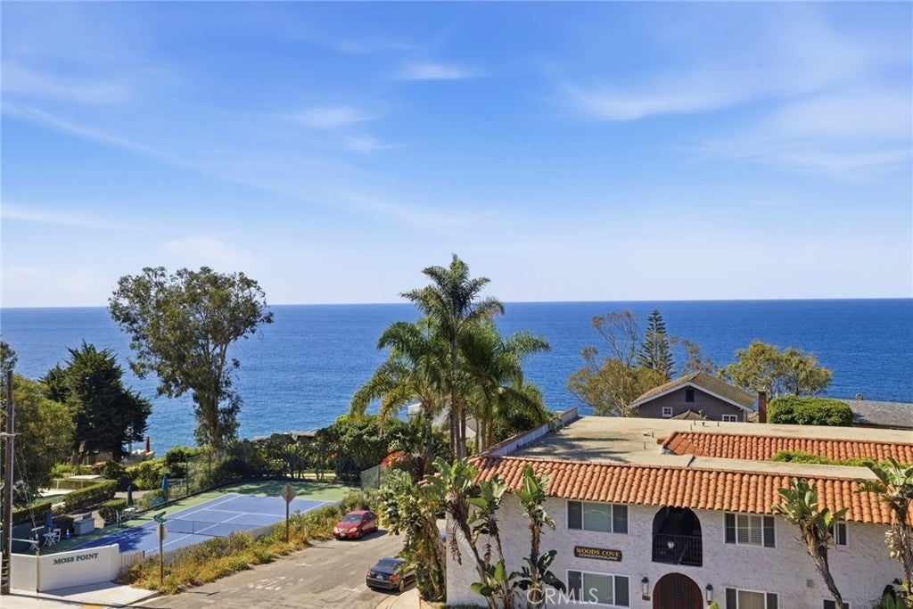 If you’re looking for views, this is it!! Ocean views from every room! From the covered front balcony, enjoy sweeping views of the Pacific, white water rolling over rocks, Catalina Island, PCH, city lights, surrounding hills and Palos Verdes on clear days, all coming together with incredible daily sunsets. Sit back, take it all in, watch the deep blues, waves moving through the shoreline, boats pass by, and feel the tranquility. This is the top-floor, center penthouse unit in the building closest to the ocean, with no one above and showcasing one of the widest vantage points in the community. A single-level 2-bedroom, 2-bath condo featuring an open floorplan and a spacious covered balcony that expands the flow. The positioning creates an elevated feel, opening up the surrounding coastline and horizon. The primary bedroom includes a slider to the balcony, two closets, and an attached ensuite bathroom. Dutch front door. New carpet in the bedrooms, tile flooring throughout the main areas, plus a newer dishwasher, garbage disposal, and water heater. Assigned carport with storage. Just across PCH from Moss Cove, one of Laguna Beach’s most scenic coves. Ideally located near downtown, art galleries, restaurants, shops, and world-class beaches. Moments from the Sawdust Art Festival and summer art shows, with the free Laguna Beach trolley close by, making it easy to experience everything the area has to offer. (Enclosed balcony not included in the sqft)
